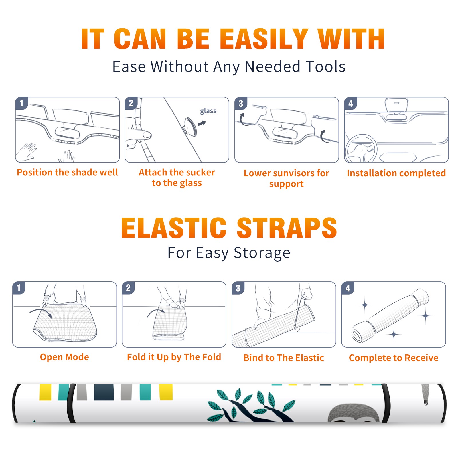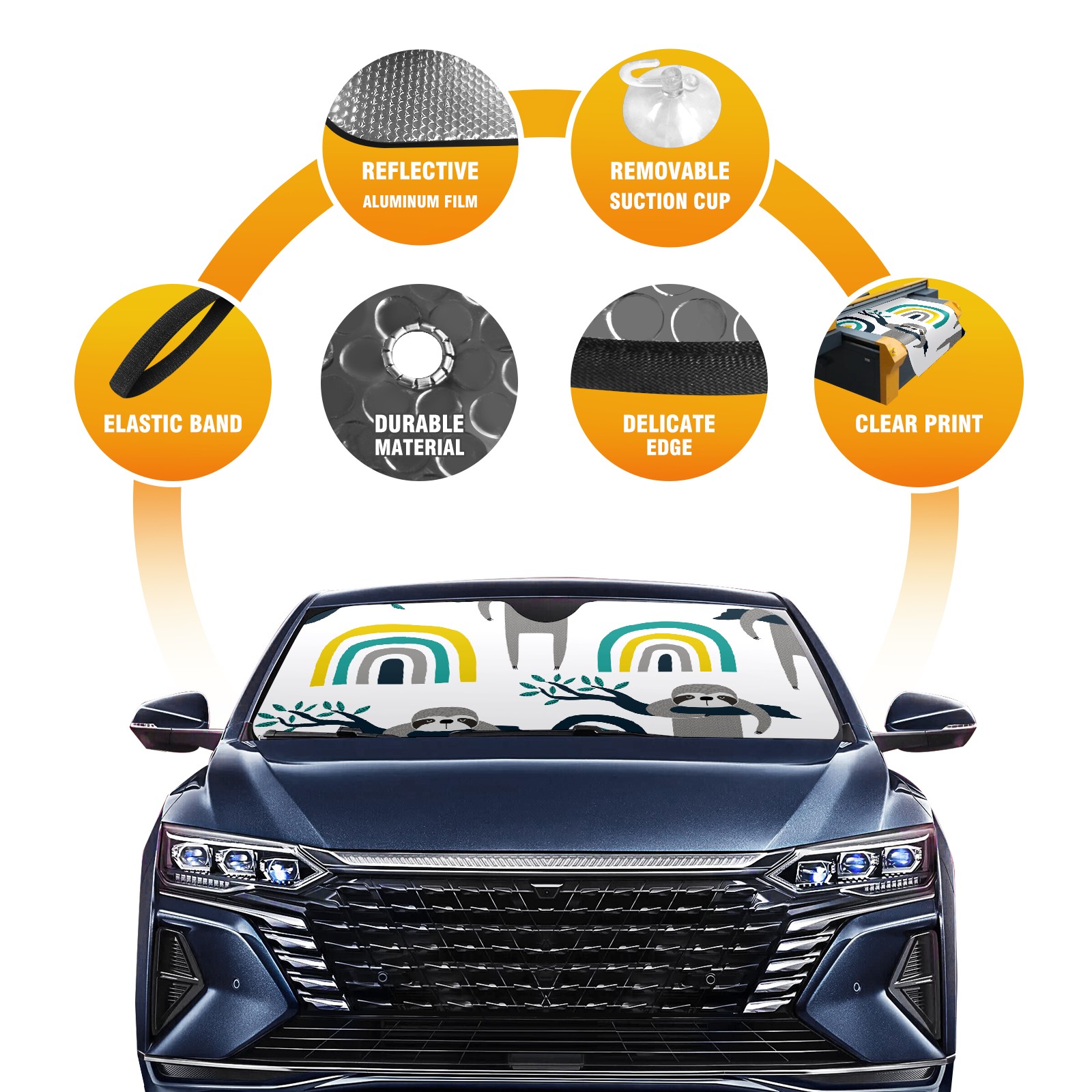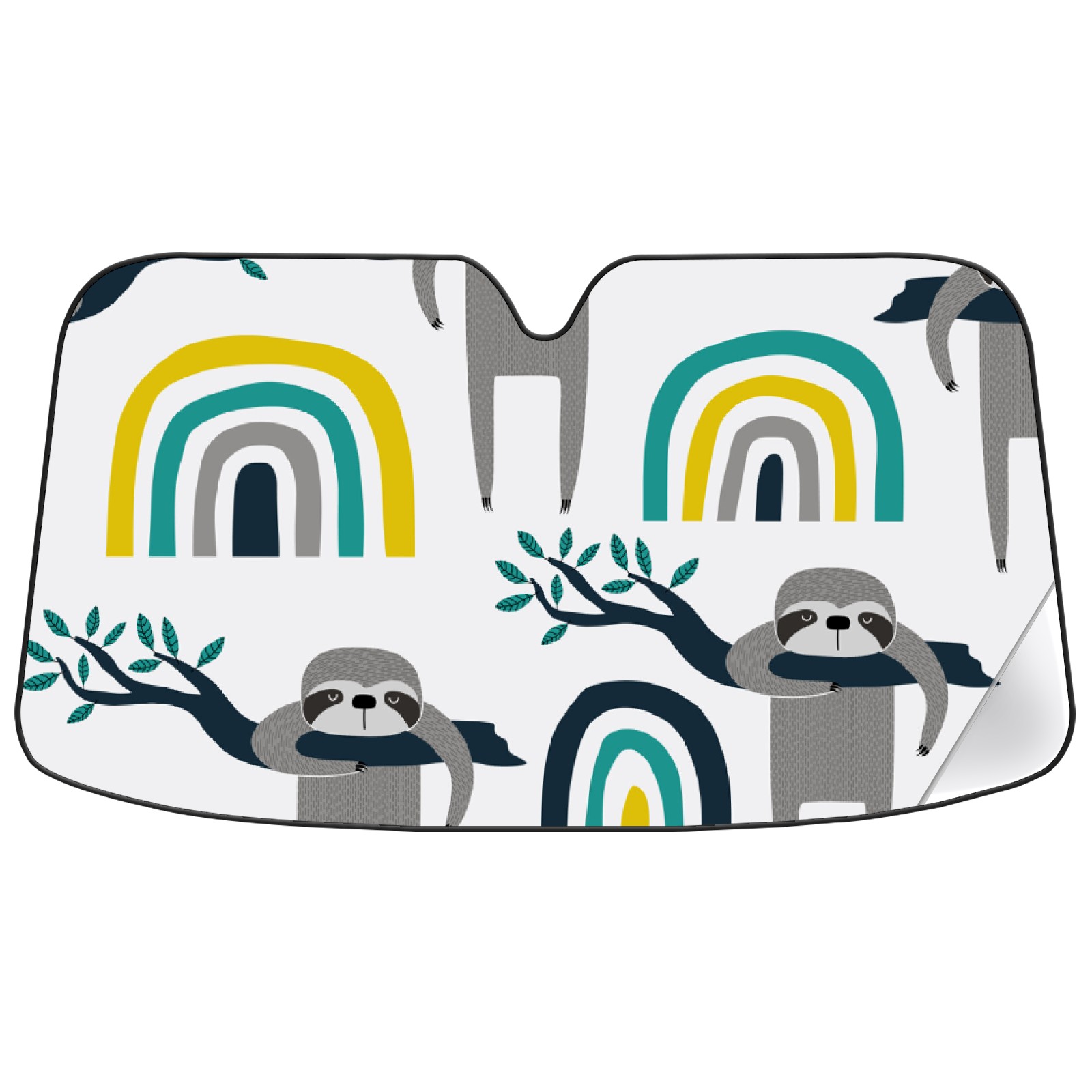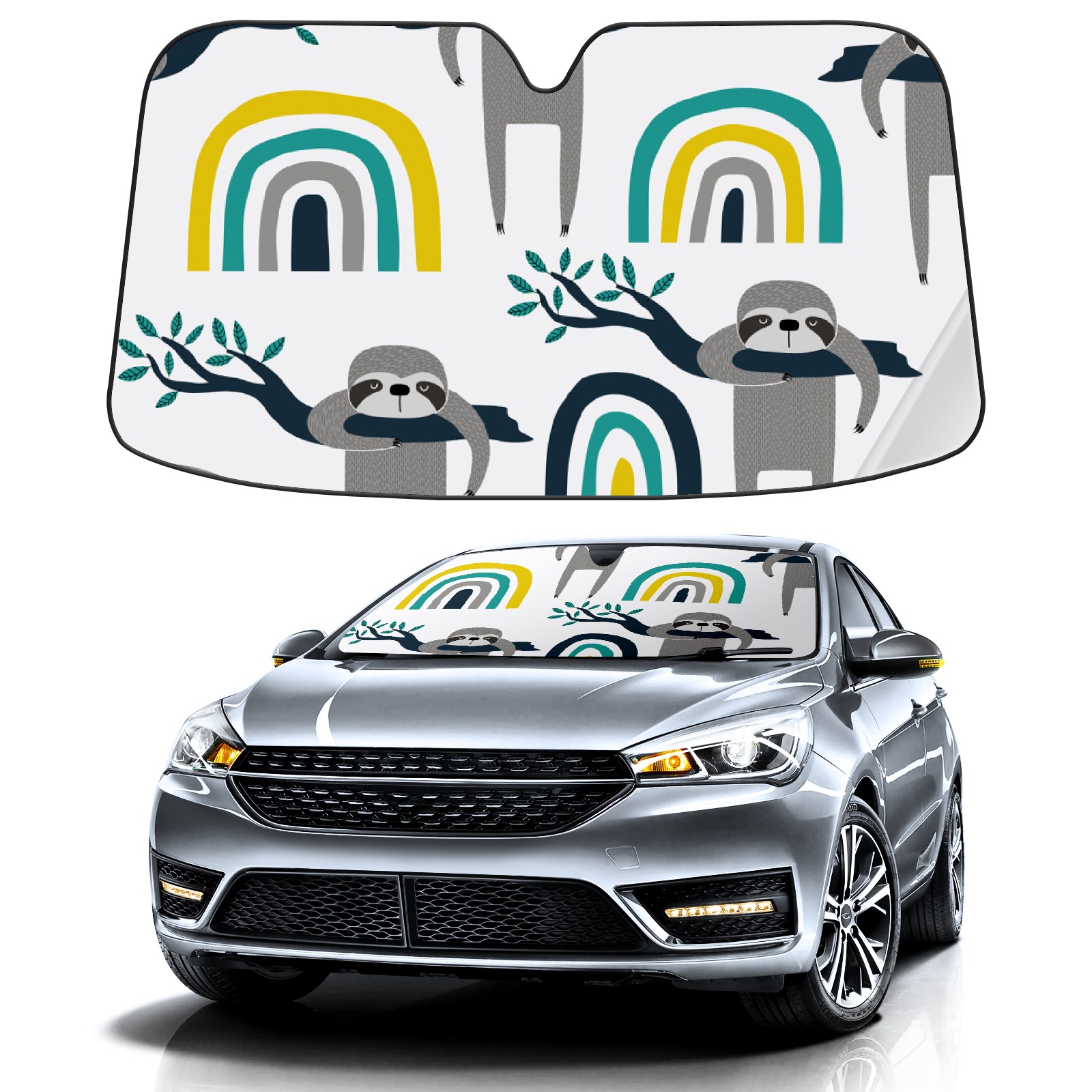 Car Windshield Sun Shade For Front Window Sloth Rainbow Foldable Vehicle Windshield Car Sun Visor Covers Automotive Window Protector Car Camping Privacy Sun Blocker