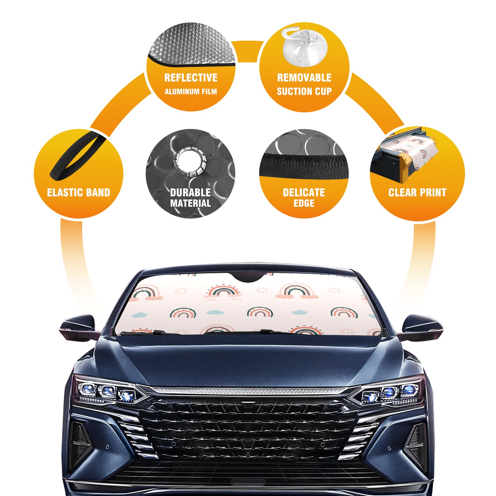 Car Windshield Sun Shade For Front Window Boho Ethnic Rainbow Foldable Vehicle Windshield Car Sun Visor Covers Automotive Window Protector Car Camping Privacy Sun Blocker