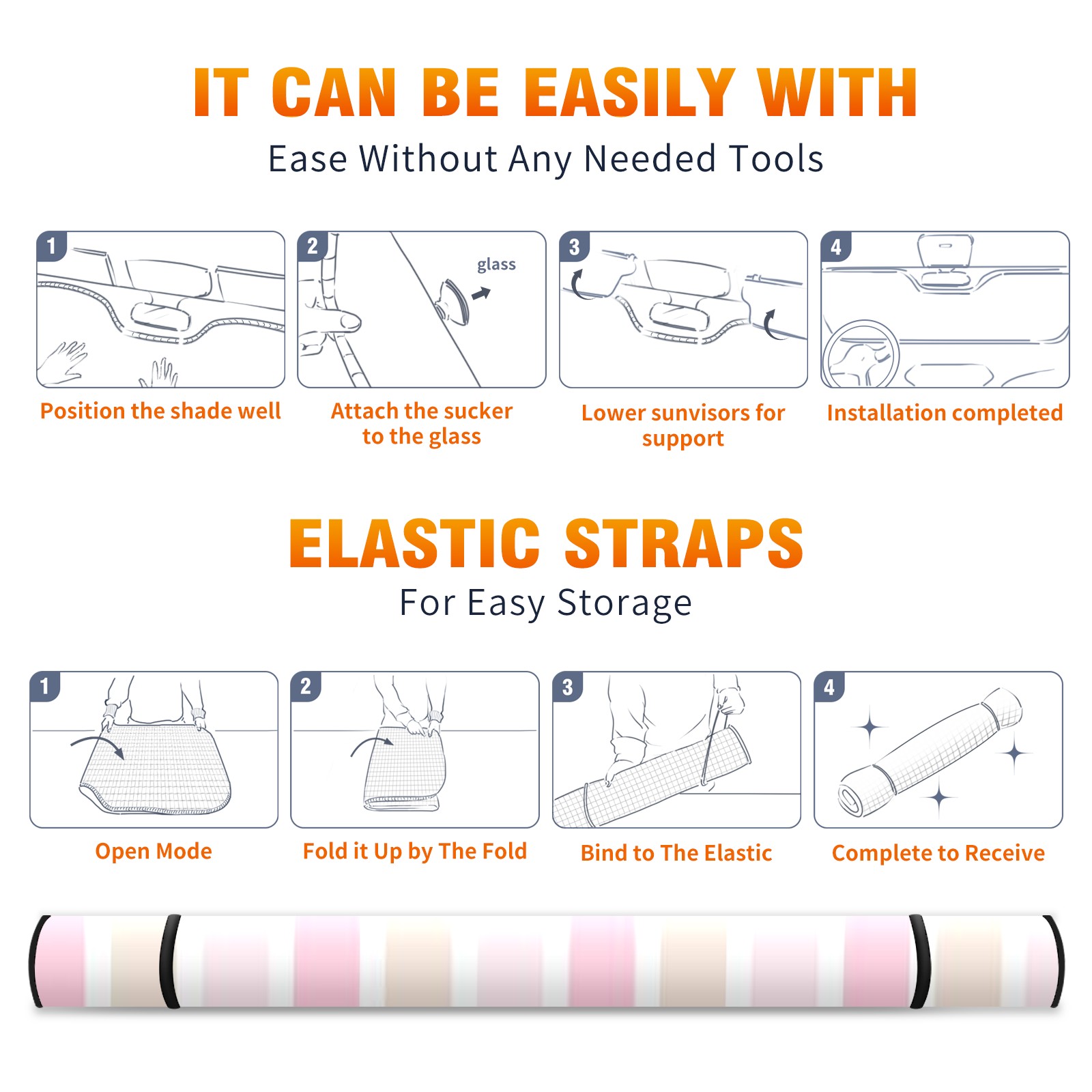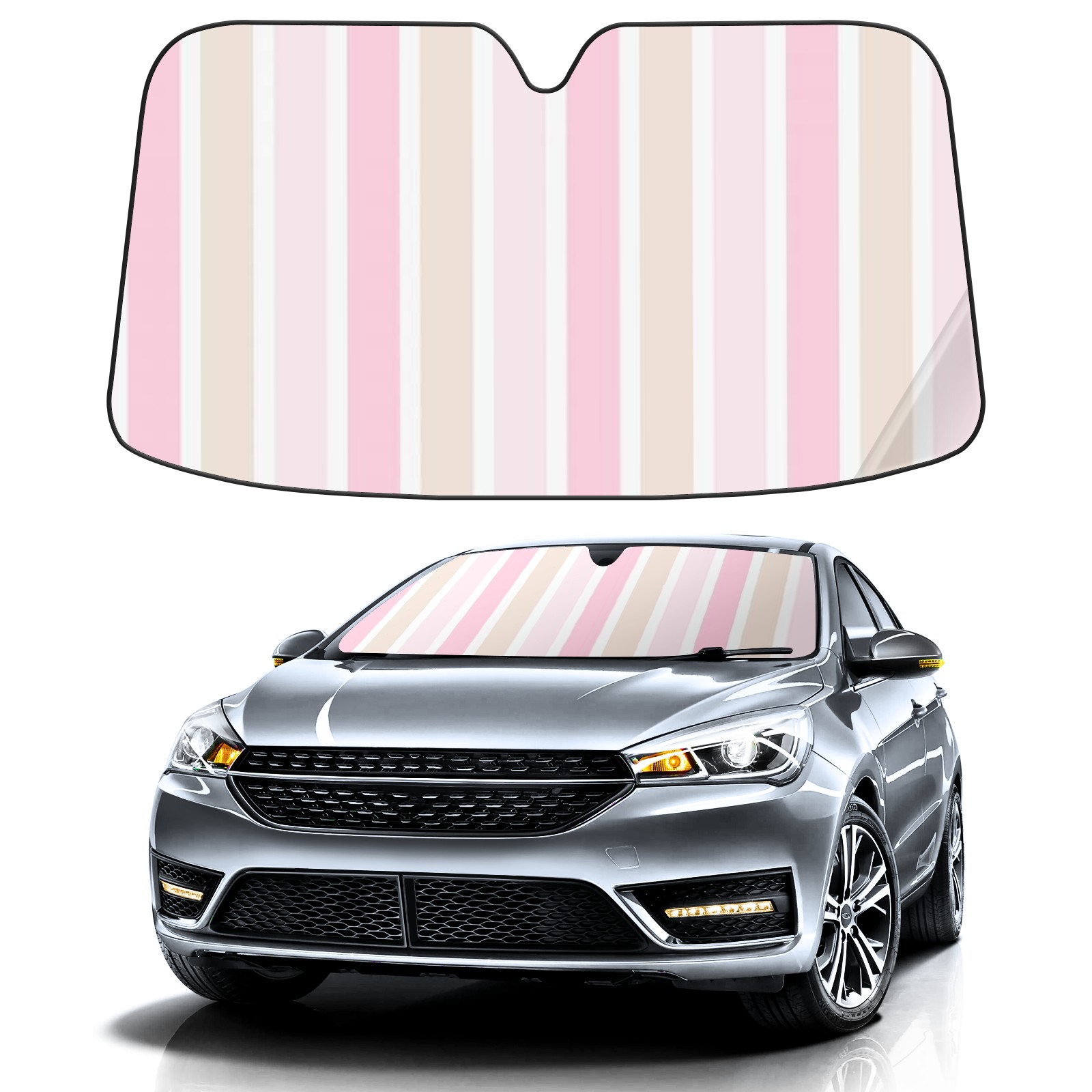 Car Windshield Sun Shade For Front Window Stripe Foldable Vehicle Windshield Car Sun Visor Covers Automotive Window Protector Car Camping Privacy Sun Blocker