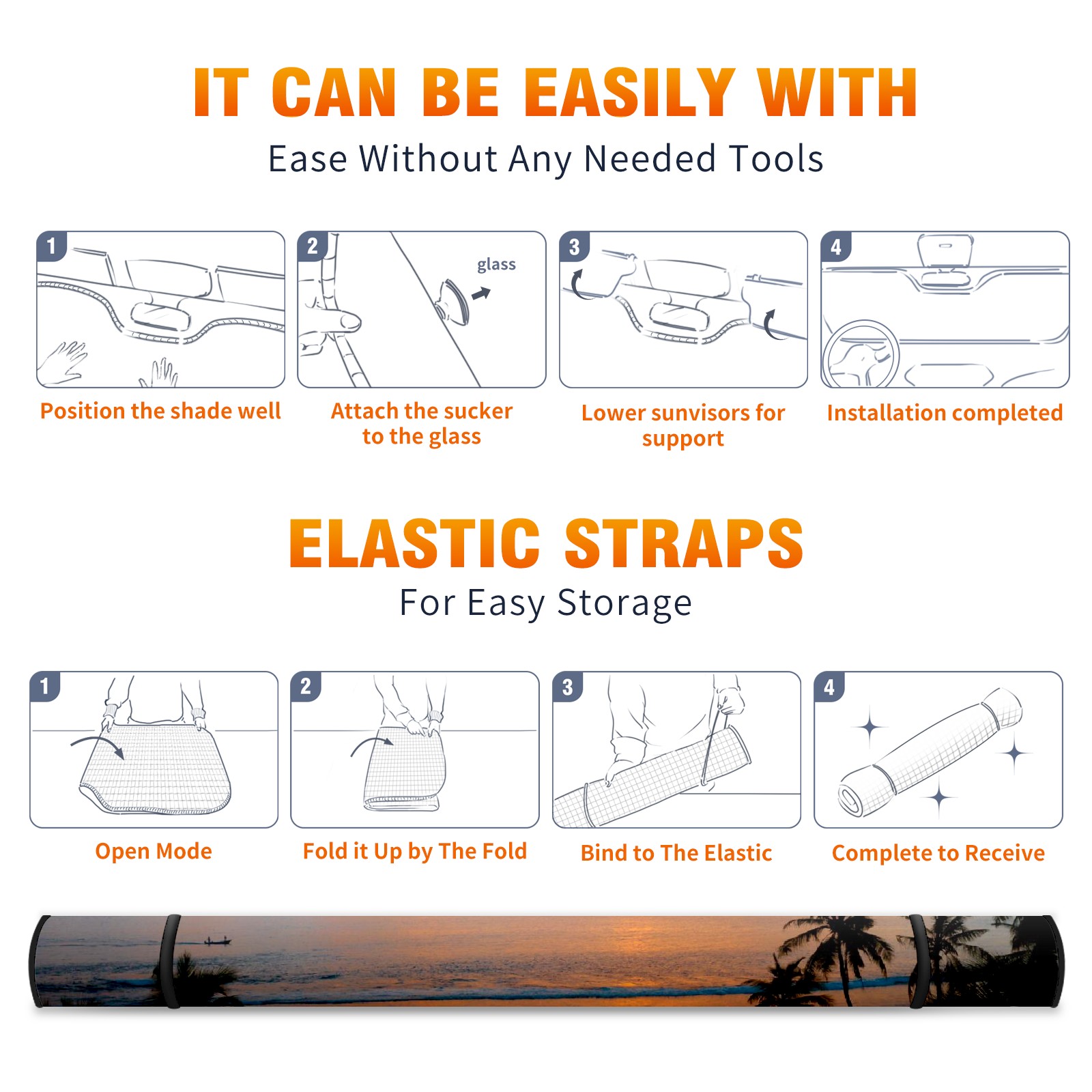 • Diameter /Size 63"L x 33.5"W Made from excellent materials which makes it sturdy and protects the car from the sun. Easy to use and pack. Makes the interior of the car cooler.You can easily stash the sunshade in the storage bag or store long term.It open and closes easy. Also the leather storage bag is durable and easy to put the umbrella back into.This windshield sunshade provides complete coverage and keeps your car interior cool under direct sun. It is easy to open and position under the windshield and around the rear-view mirror. Makes Your Car Easy To Identify, Perfect For Finding Your Car In Crowded Parking Lots And Garages.Great Choice: It Is A Great Gift For Dad, Boyfriend, Brother, Brother And Uncle, Friends, Classmates, Family And So On. Notice: Due To Difference Computer Monitors, The Color Maybe Slightly Different From Picture. As Different Measurement Methods, Measurement Data Will Float Within 2%.I Hope You Understand. If You Have Any Question About The Item Please Do Not Hesitate To Contact Us Immediately And We Will Give You A Satisfactory Reply Within 24 Hours.