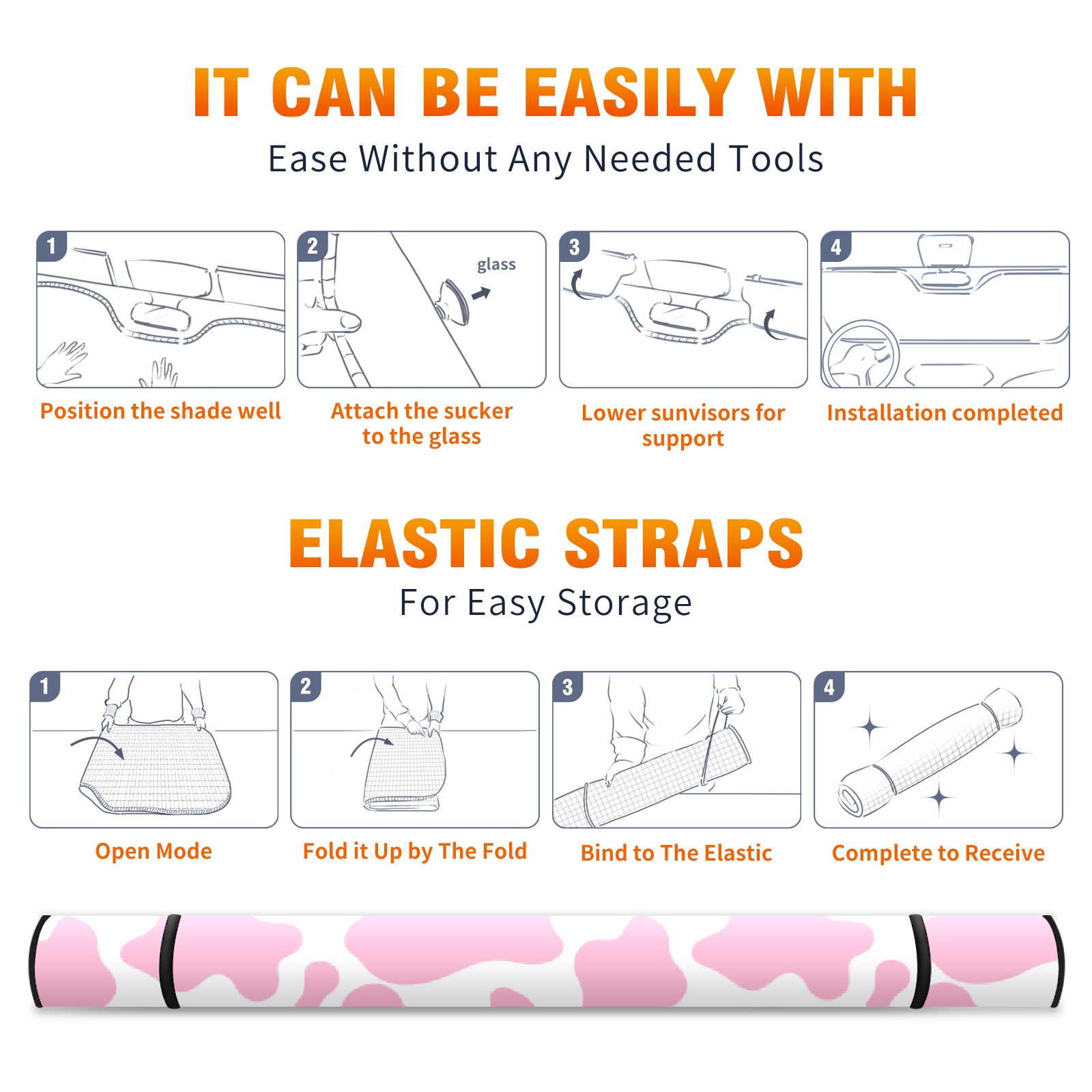 Car Windshield Sun Shade For Front Window Pink Cow Print Foldable Vehicle Windshield Car Sun Visor Covers Automotive Window Protector Car Camping Privacy Sun Blocker