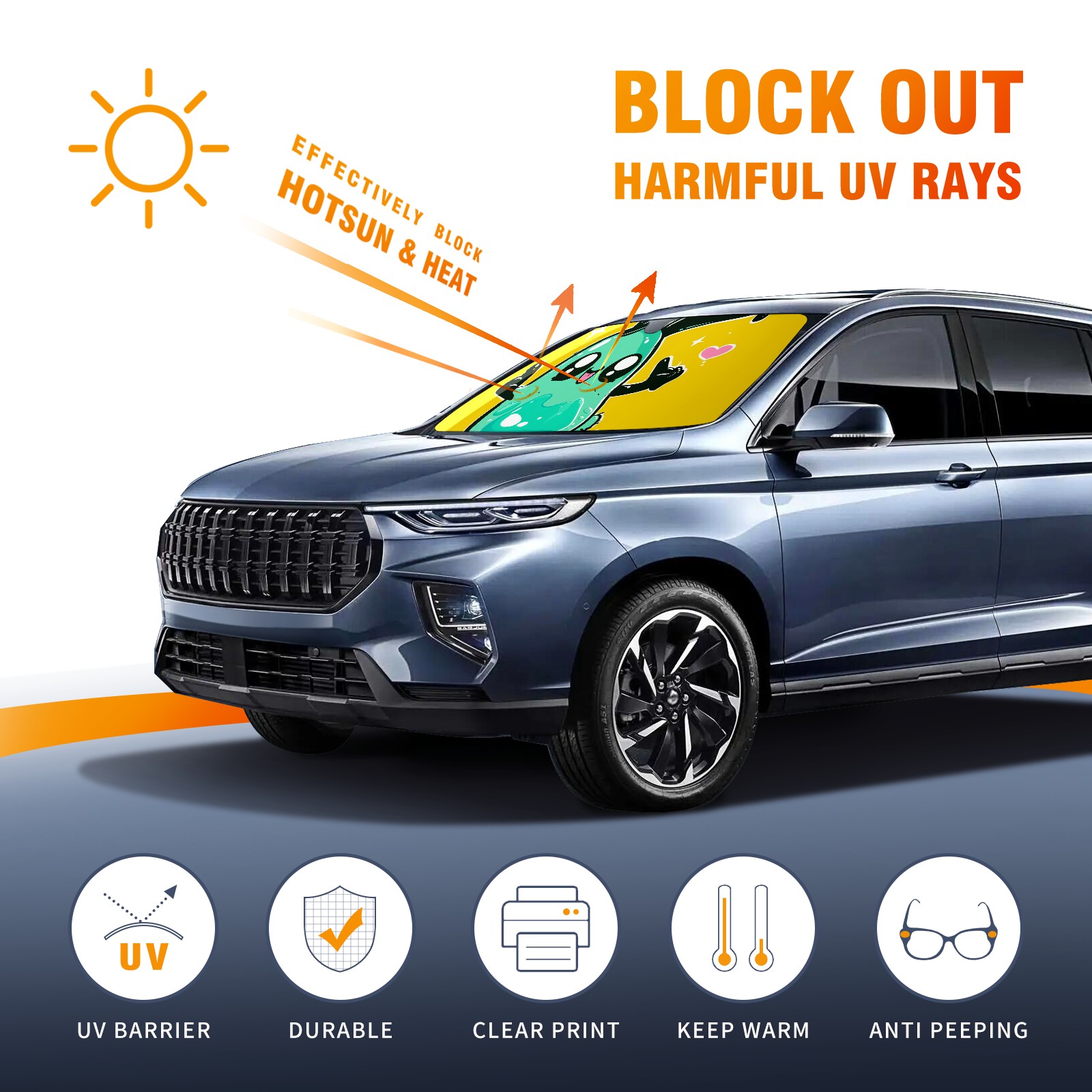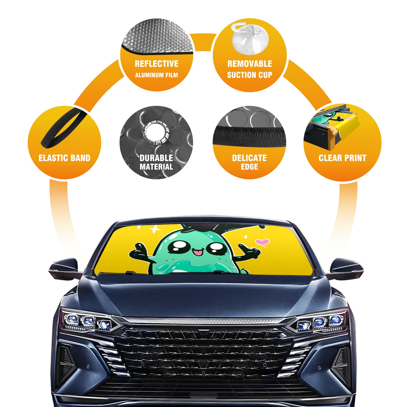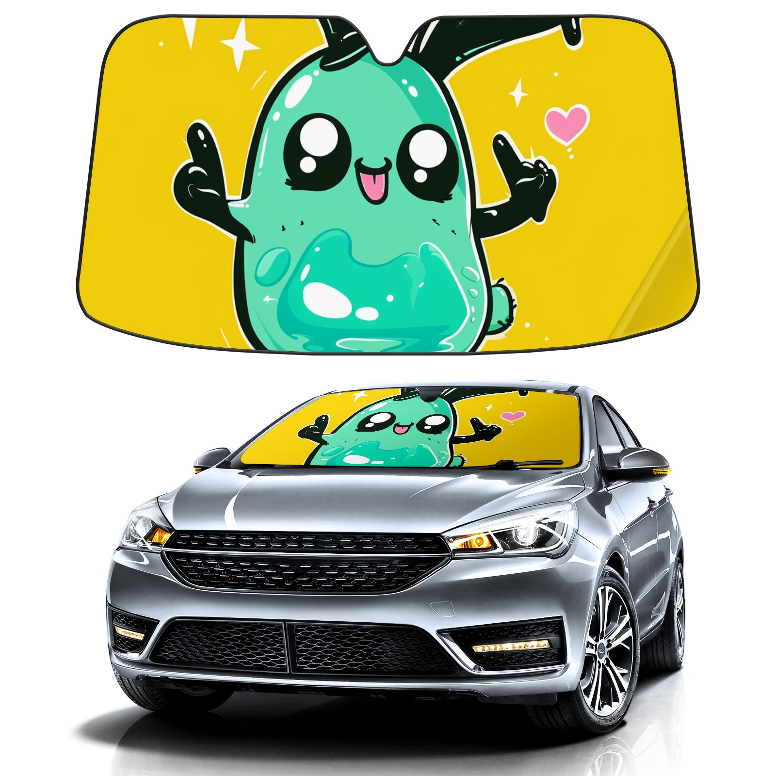 Car Windshield Sun Shade For Front Window Green Elf Foldable Vehicle Windshield Car Sun Visor Covers Automotive Window Protector Car Camping Privacy Sun Blocker