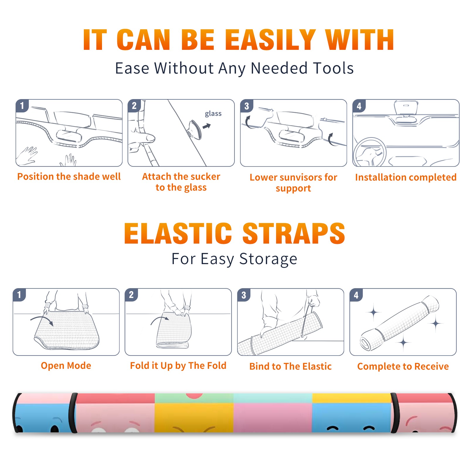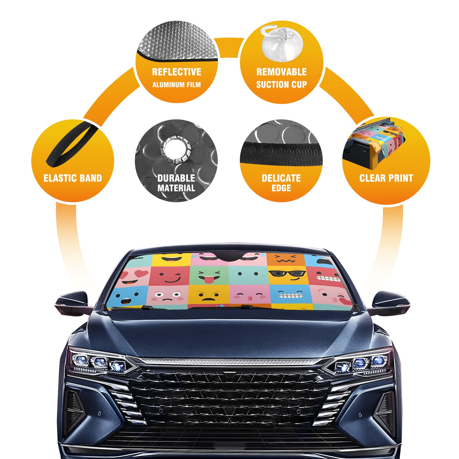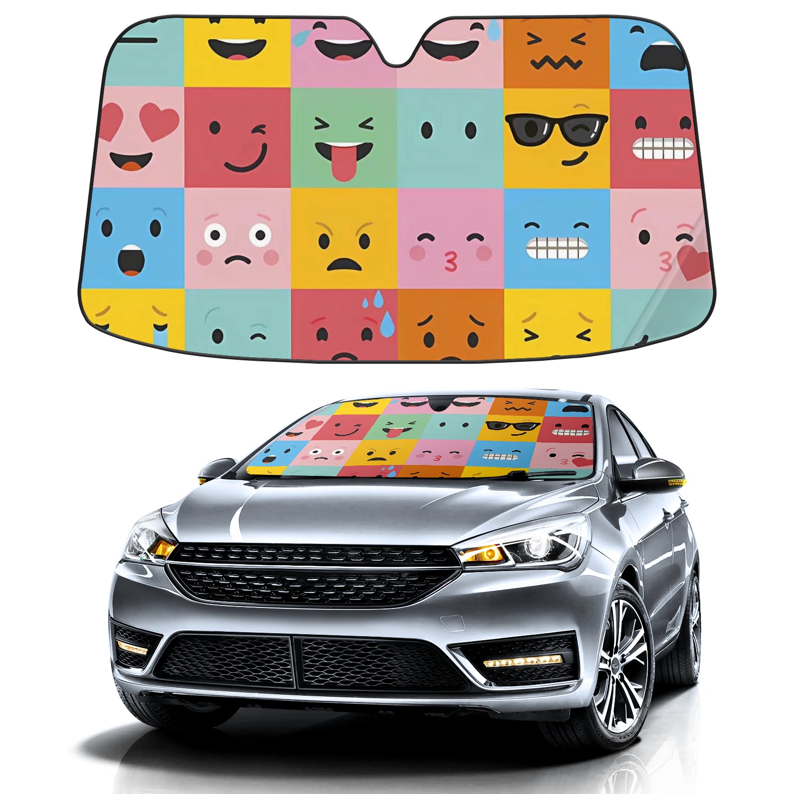 Car Windshield Sun Shade For Front Window Smiling Face Foldable Vehicle Windshield Car Sun Visor Covers Automotive Window Protector Car Camping Privacy Sun Blocker