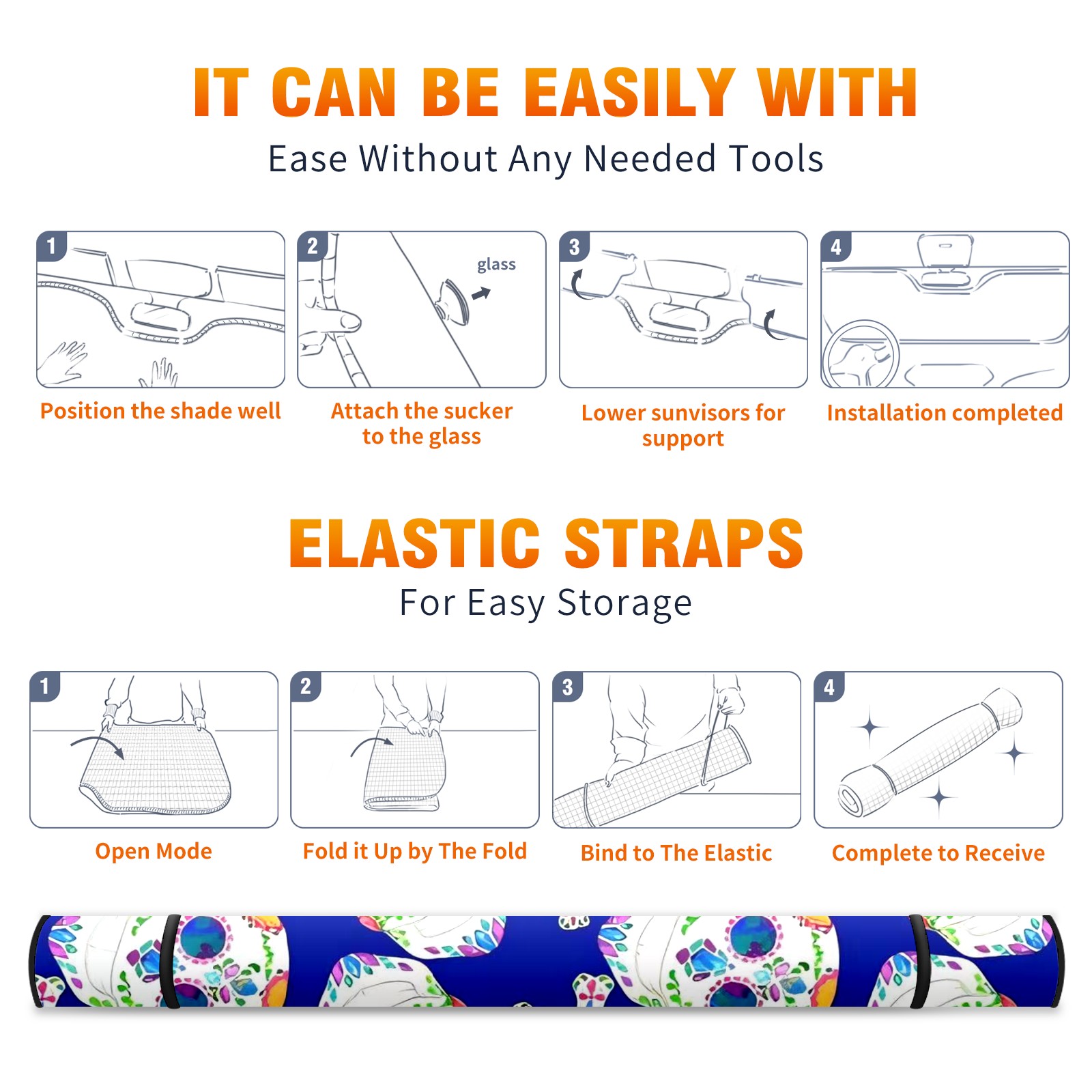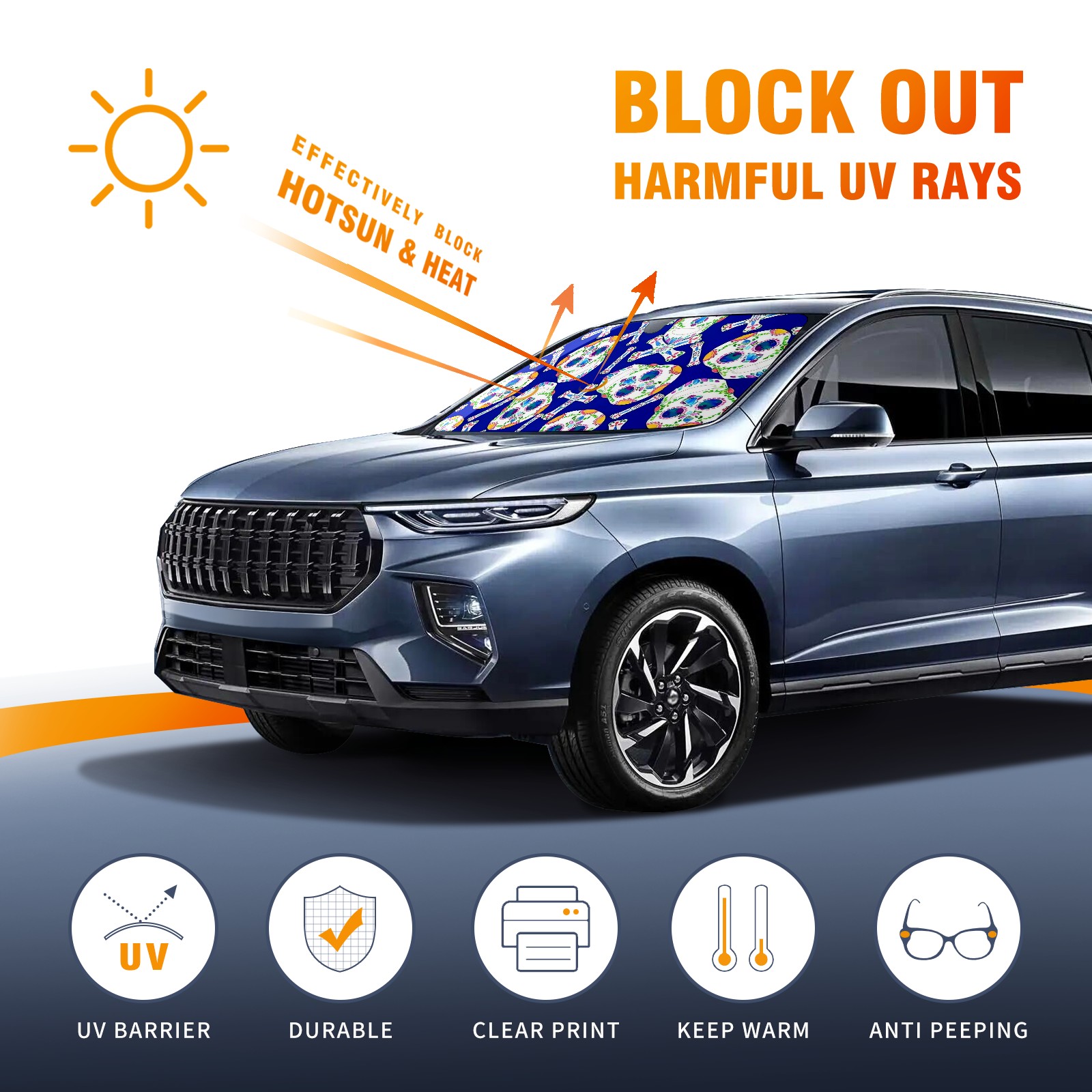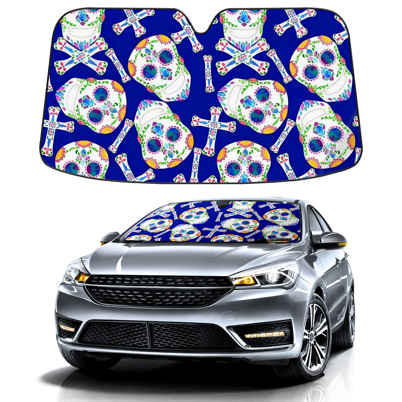 Car Windshield Sun Shade For Front Window Skull Head Foldable Vehicle Windshield Car Sun Visor Covers Automotive Window Protector Car Camping Privacy Sun Blocker