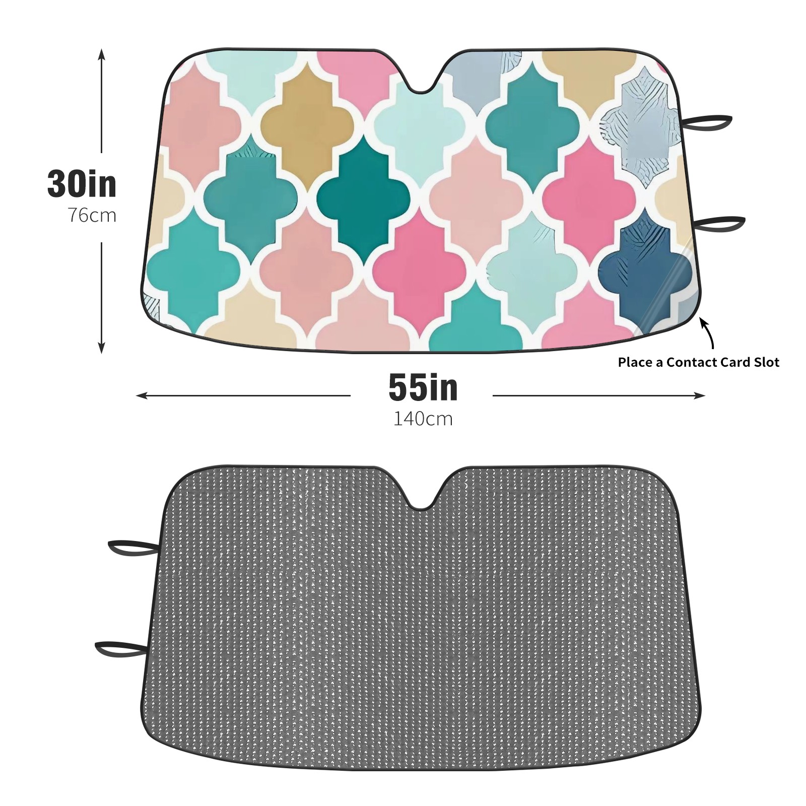 Diameter /Size 63"L x 33.5"W Made from excellent materials which makes it sturdy and protects the car from the sun. Easy to use and pack. Makes the interior of the car cooler.You can easily stash the sunshade in the storage bag or store long term.It open and closes easy. Also the leather storage bag is durable and easy to put the umbrella back into.This windshield sunshade provides complete coverage and keeps your car interior cool under direct sun. It is easy to open and position under the windshield and around the rear-view mirror. Makes Your Car Easy To Identify, Perfect For Finding Your Car In Crowded Parking Lots And Garages.Great Choice: It Is A Great Gift For Dad, Boyfriend, Brother, Brother And Uncle, Friends, Classmates, Family And So On. Notice: Due To Difference Computer Monitors, The Color Maybe Slightly Different From Picture. As Different Measurement Methods, Measurement Data Will Float Within 2%.I Hope You Understand. If You Have Any Question About The Item Please Do Not Hesitate To Contact Us Immediately And We Will Give You A Satisfactory Reply Within 24 Hours.