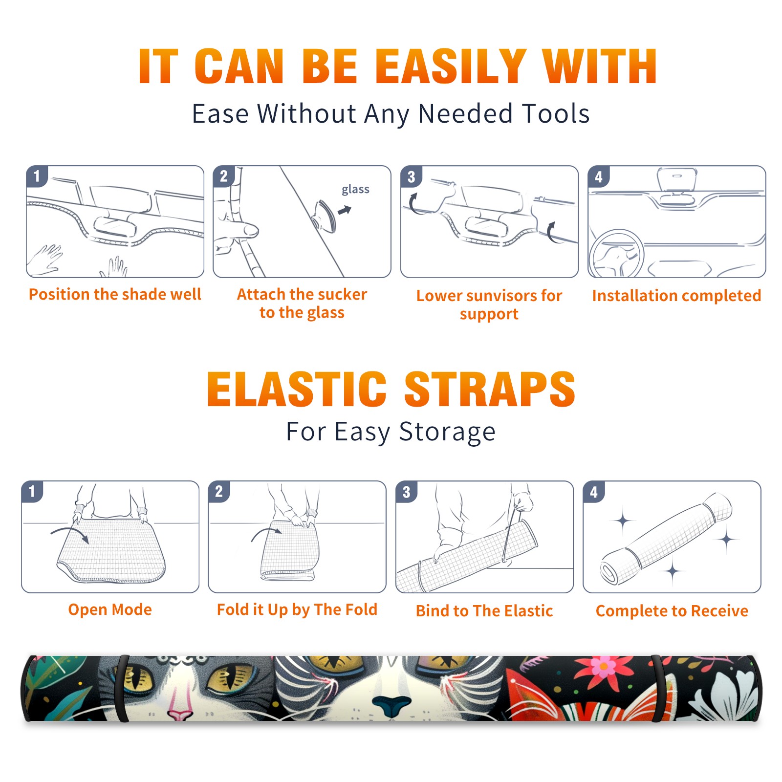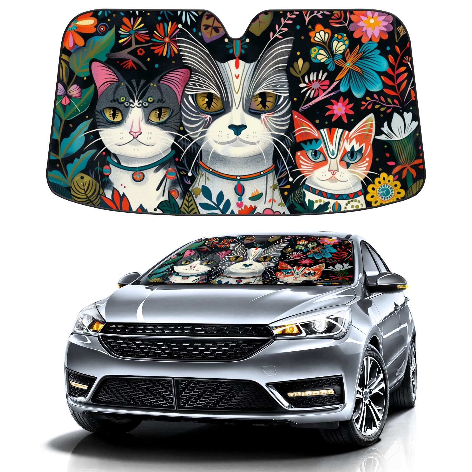 Car Windshield Sun Shade For Front Window Shorthair Cat Foldable Vehicle Windshield Car Sun Visor Covers Automotive Window Protector Car Camping Privacy Sun Blocker