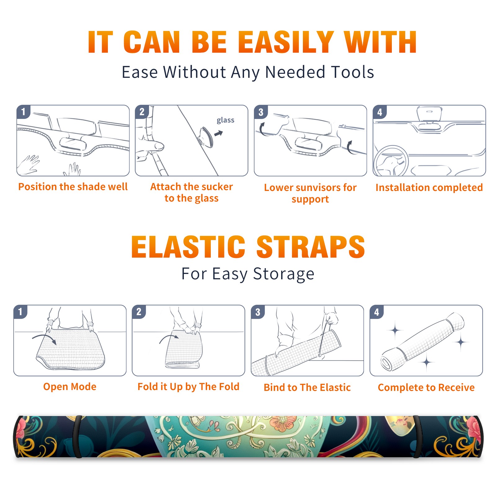 • Diameter /Size 63"L x 33.5"W Made from excellent materials which makes it sturdy and protects the car from the sun. Easy to use and pack. Makes the interior of the car cooler.You can easily stash the sunshade in the storage bag or store long term.It open and closes easy. Also the leather storage bag is durable and easy to put the umbrella back into.This windshield sunshade provides complete coverage and keeps your car interior cool under direct sun. It is easy to open and position under the windshield and around the rear-view mirror. Makes Your Car Easy To Identify, Perfect For Finding Your Car In Crowded Parking Lots And Garages.Great Choice: It Is A Great Gift For Dad, Boyfriend, Brother, Brother And Uncle, Friends, Classmates, Family And So On. Notice: Due To Difference Computer Monitors, The Color Maybe Slightly Different From Picture. As Different Measurement Methods, Measurement Data Will Float Within 2%.I Hope You Understand. If You Have Any Question About The Item Please Do Not Hesitate To Contact Us Immediately And We Will Give You A Satisfactory Reply Within 24 Hours.