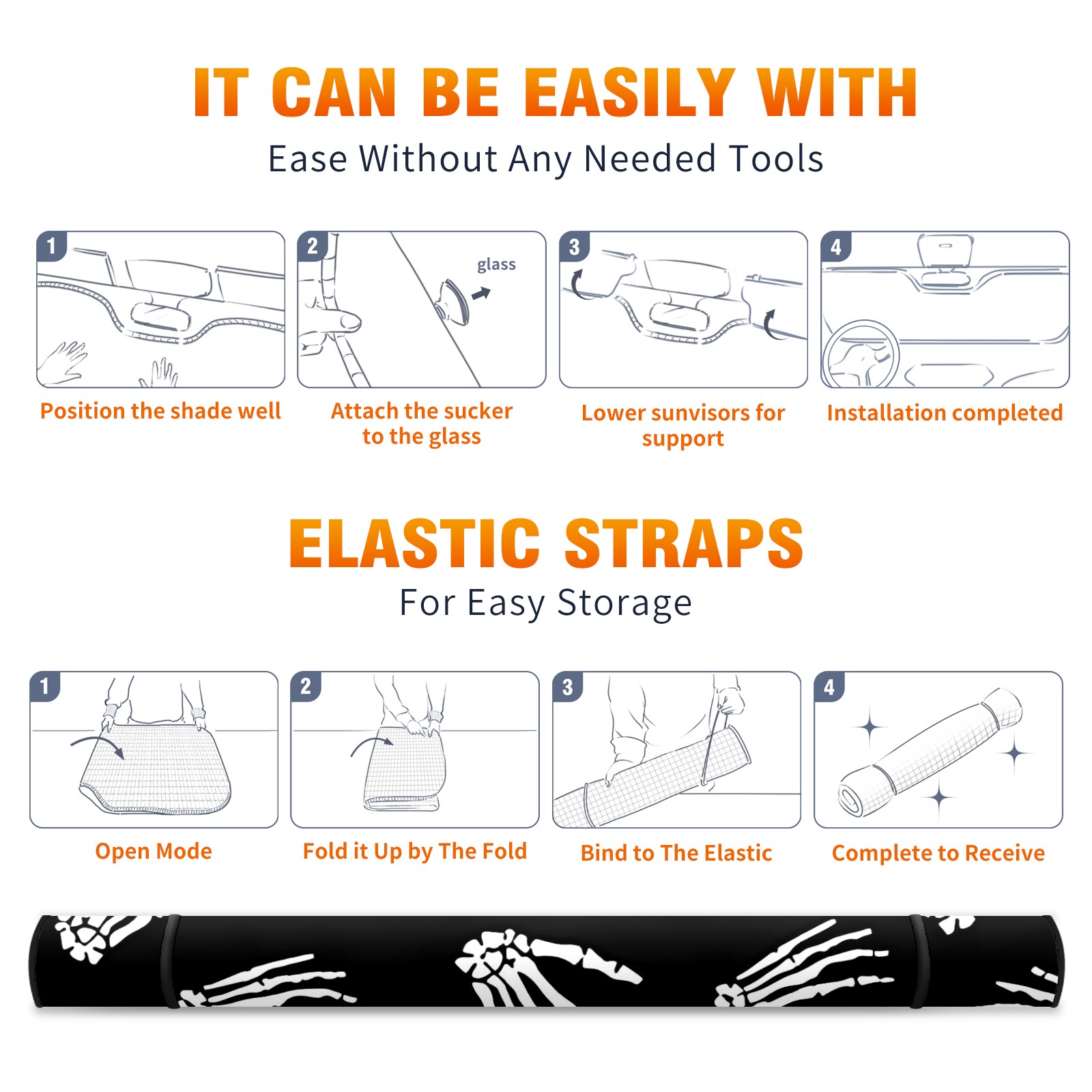 Car Windshield Sun Shade For Front Window Skull Foldable Vehicle Windshield Car Sun Visor Covers Automotive Window Protector Car Camping Privacy Sun Blocker