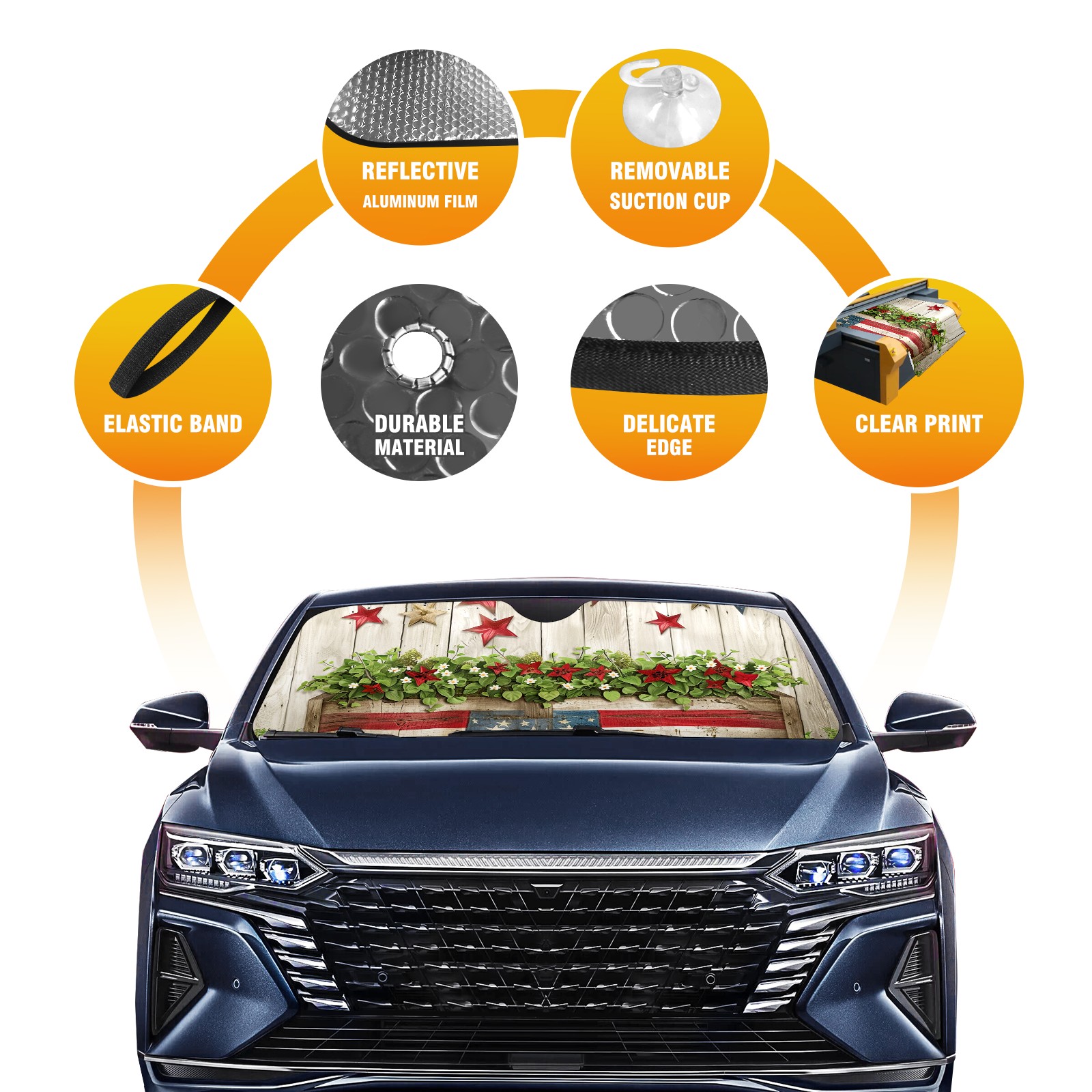 Car Windshield Sun Shade For Front Window National Flag Foldable Vehicle Windshield Car Sun Visor Covers Automotive Window Protector Car Camping Privacy Sun Blocker