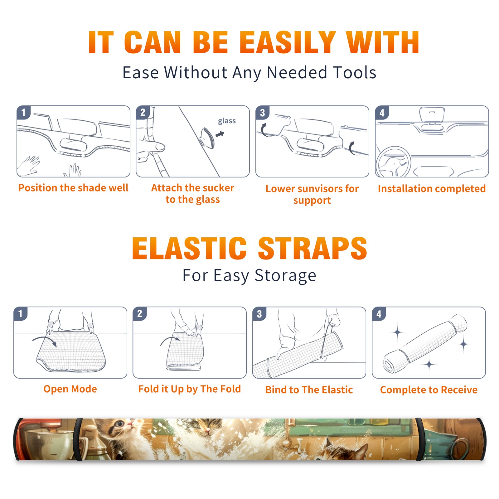 Car Windshield Sun Shade For Front Window Cat Foldable Vehicle Windshield Car Sun Visor Covers Automotive Window Protector Car Camping Privacy Sun Blocker
