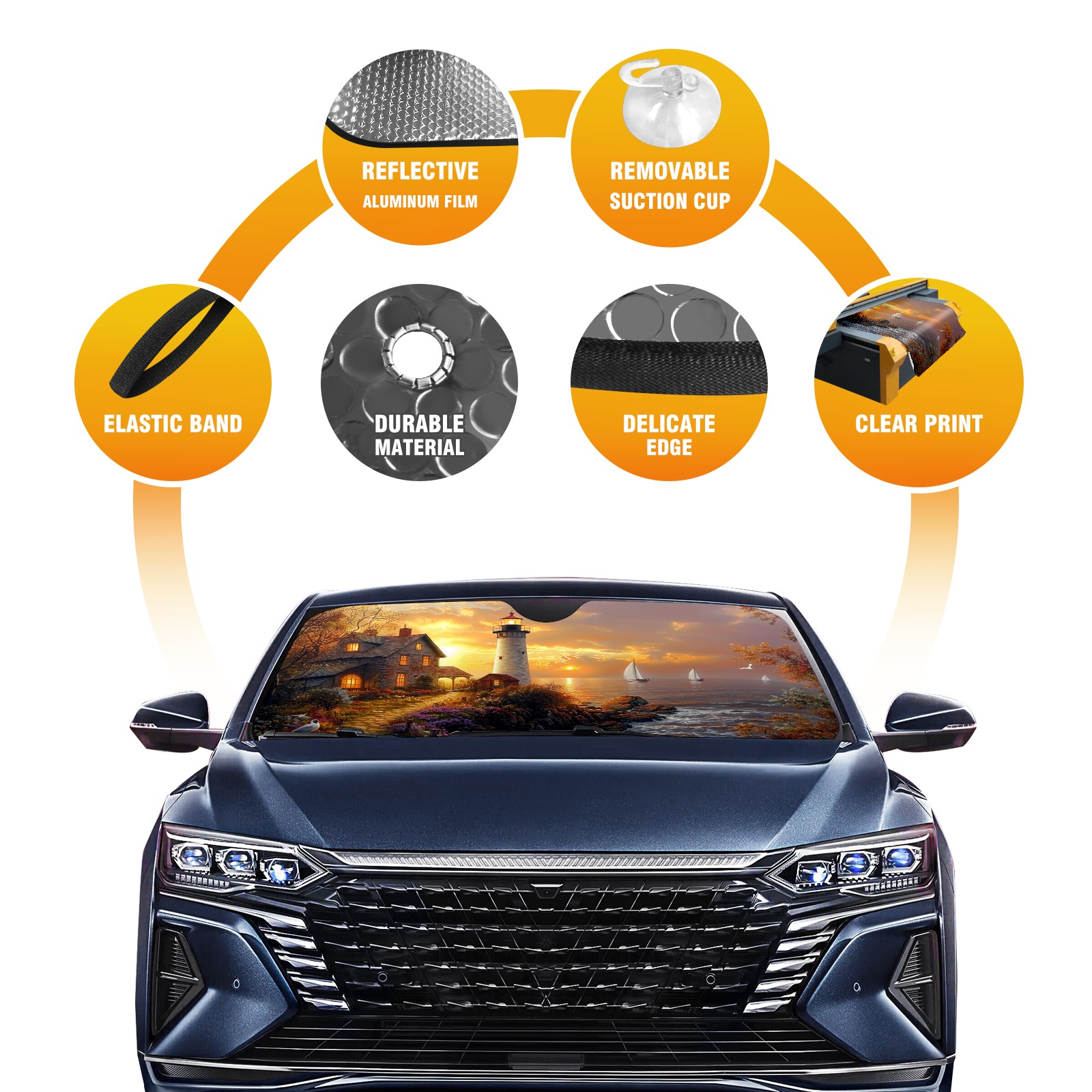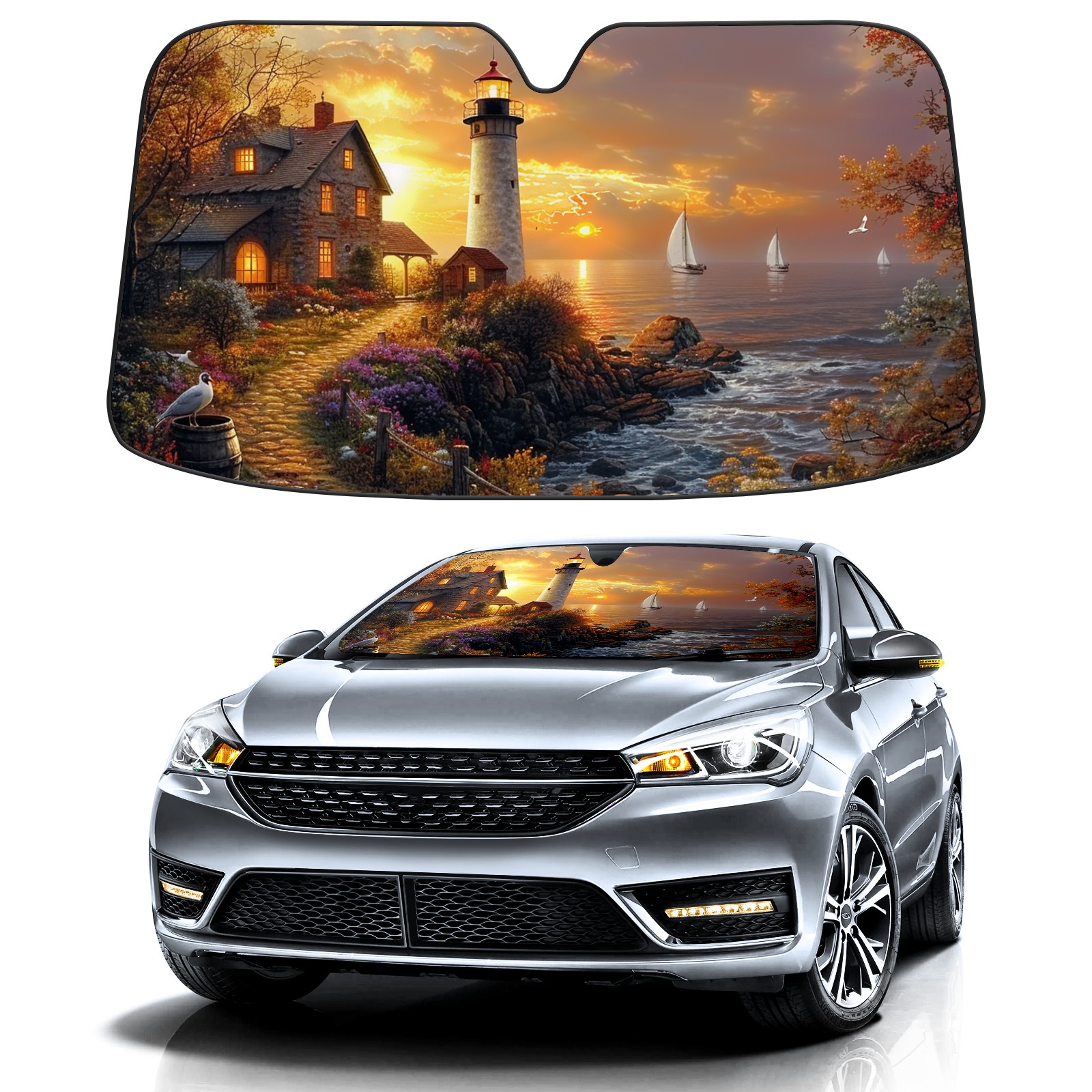 Car Windshield Sun Shade For Front Window Landscape Foldable Vehicle Windshield Car Sun Visor Covers Automotive Window Protector Car Camping Privacy Sun Blocker