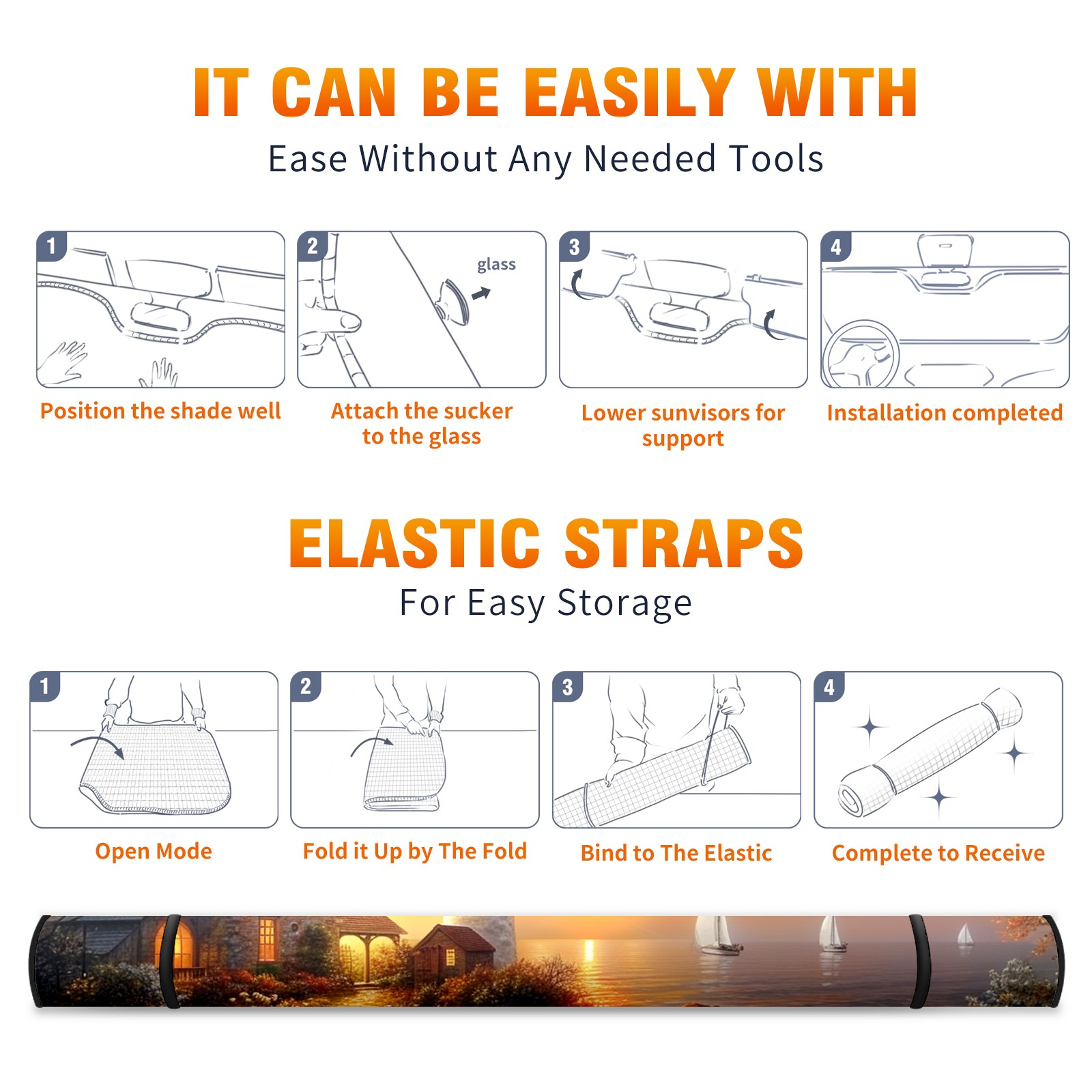 • Diameter /Size 63"L x 33.5"W Made from excellent materials which makes it sturdy and protects the car from the sun. Easy to use and pack. Makes the interior of the car cooler.You can easily stash the sunshade in the storage bag or store long term.It open and closes easy. Also the leather storage bag is durable and easy to put the umbrella back into.This windshield sunshade provides complete coverage and keeps your car interior cool under direct sun. It is easy to open and position under the windshield and around the rear-view mirror. Makes Your Car Easy To Identify, Perfect For Finding Your Car In Crowded Parking Lots And Garages.Great Choice: It Is A Great Gift For Dad, Boyfriend, Brother, Brother And Uncle, Friends, Classmates, Family And So On. Notice: Due To Difference Computer Monitors, The Color Maybe Slightly Different From Picture. As Different Measurement Methods, Measurement Data Will Float Within 2%.I Hope You Understand. If You Have Any Question About The Item Please Do Not Hesitate To Contact Us Immediately And We Will Give You A Satisfactory Reply Within 24 Hours.