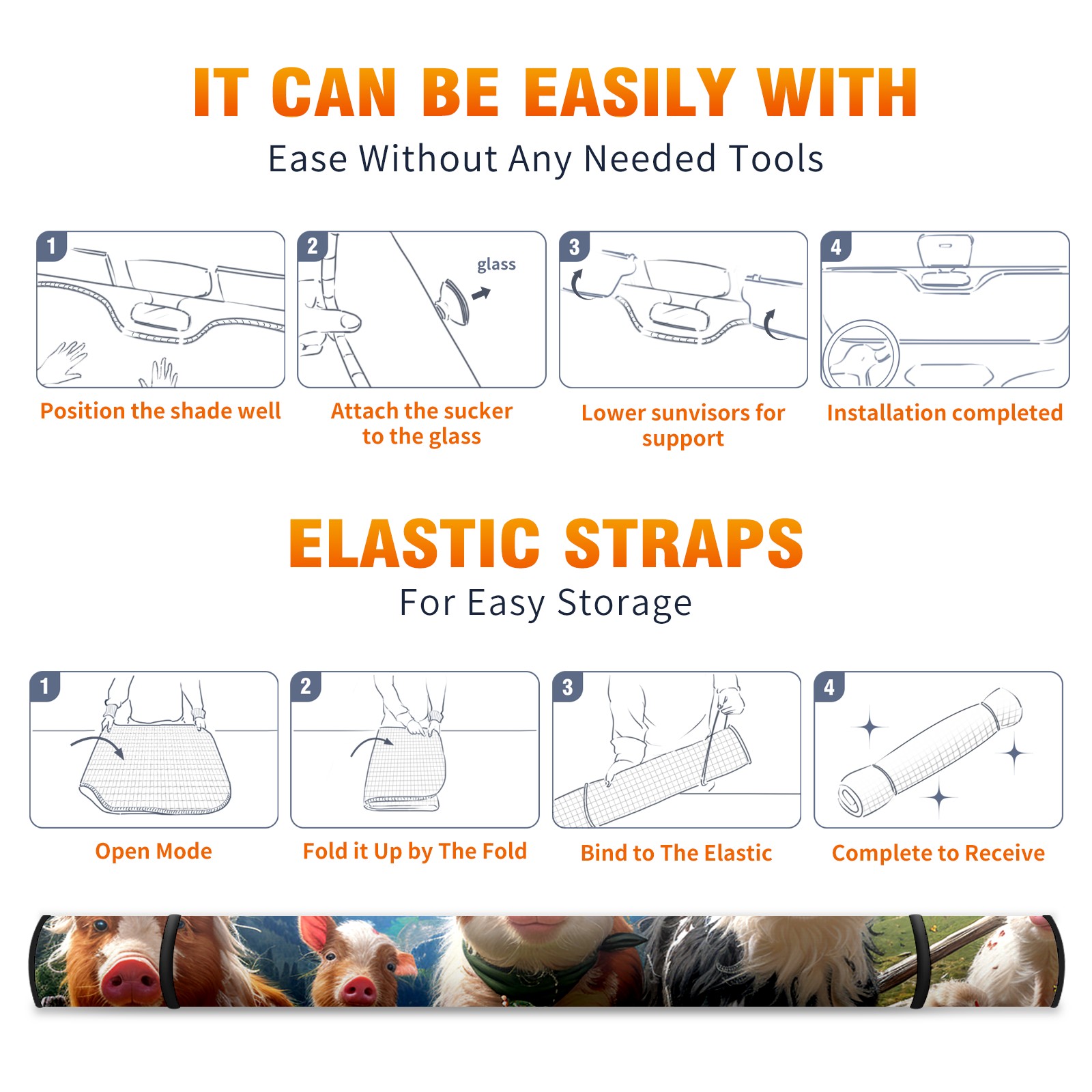 Car Windshield Sun Shade For Front Window Animals Foldable Vehicle Windshield Car Sun Visor Covers Automotive Window Protector Car Camping Privacy Sun Blocker