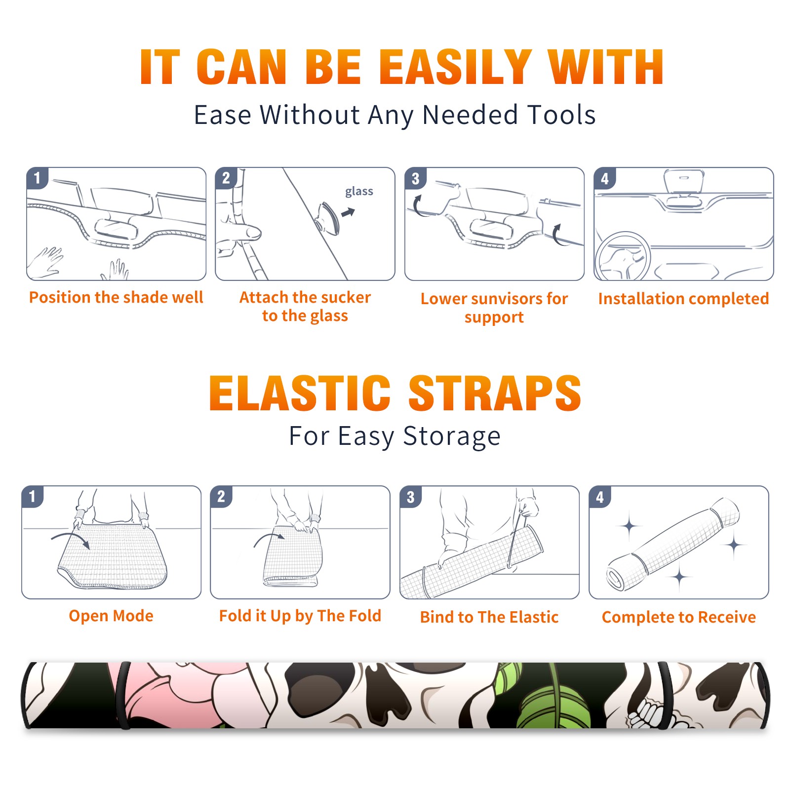• Diameter /Size 63"L x 33.5"W Made from excellent materials which makes it sturdy and protects the car from the sun. Easy to use and pack. Makes the interior of the car cooler.You can easily stash the sunshade in the storage bag or store long term.It open and closes easy. Also the leather storage bag is durable and easy to put the umbrella back into.This windshield sunshade provides complete coverage and keeps your car interior cool under direct sun. It is easy to open and position under the windshield and around the rear-view mirror. Makes Your Car Easy To Identify, Perfect For Finding Your Car In Crowded Parking Lots And Garages.Great Choice: It Is A Great Gift For Dad, Boyfriend, Brother, Brother And Uncle, Friends, Classmates, Family And So On. Notice: Due To Difference Computer Monitors, The Color Maybe Slightly Different From Picture. As Different Measurement Methods, Measurement Data Will Float Within 2%.I Hope You Understand. If You Have Any Question About The Item Please Do Not Hesitate To Contact Us Immediately And We Will Give You A Satisfactory Reply Within 24 Hours.