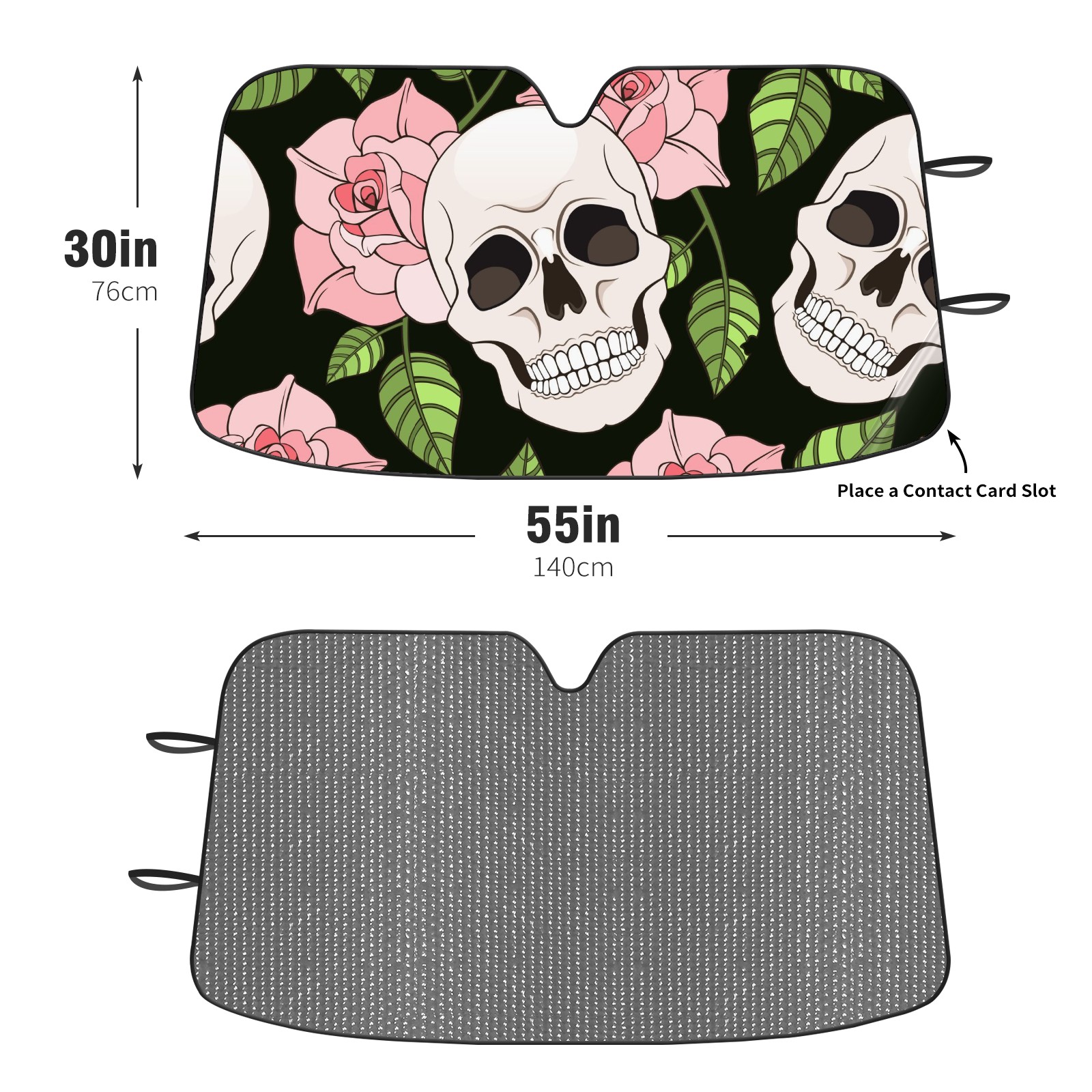 Car Windshield Sun Shade For Front Window Gothic Roses And Skulls Foldable Vehicle Windshield Car Sun Visor Covers Automotive Window Protector Car Camping Privacy Sun Blocker