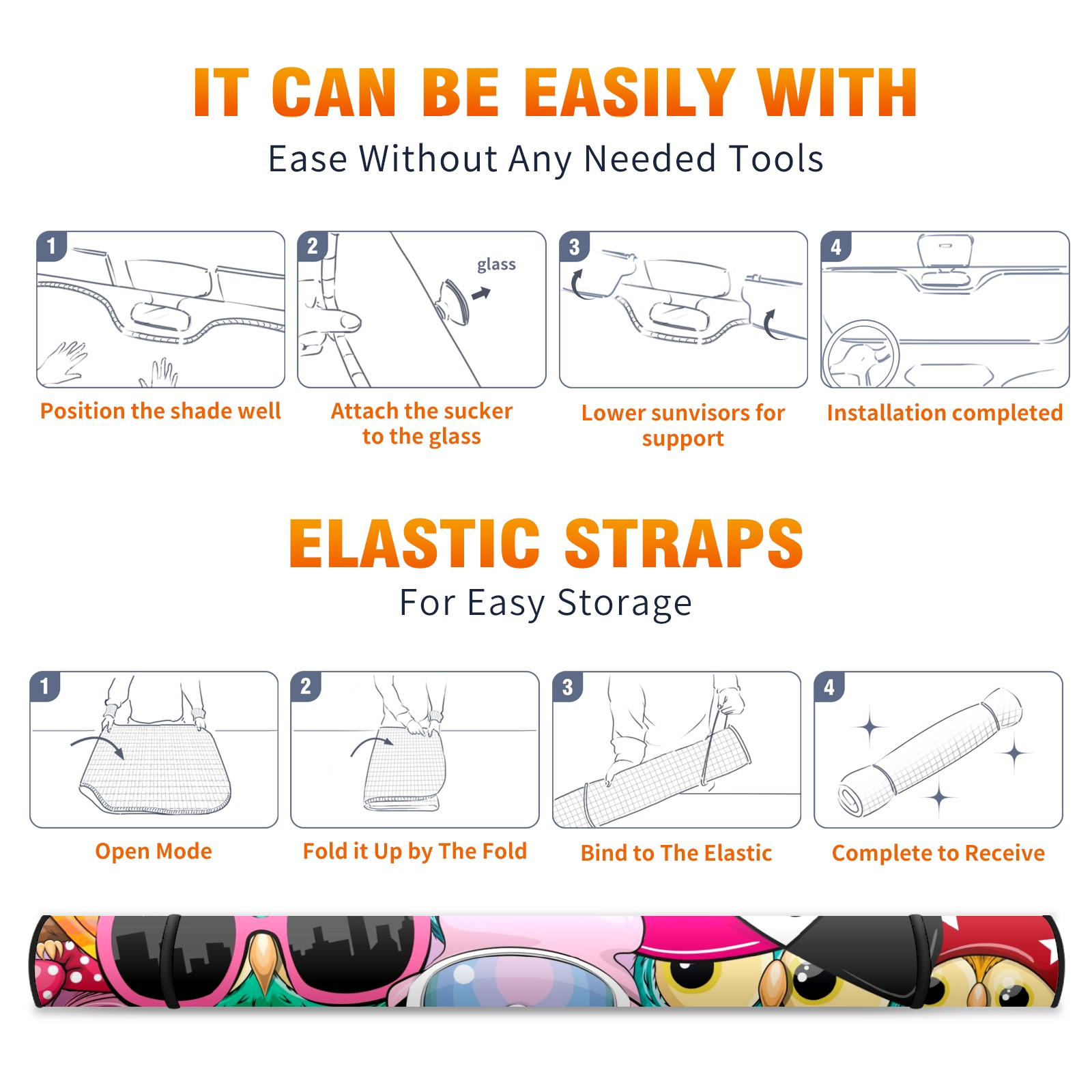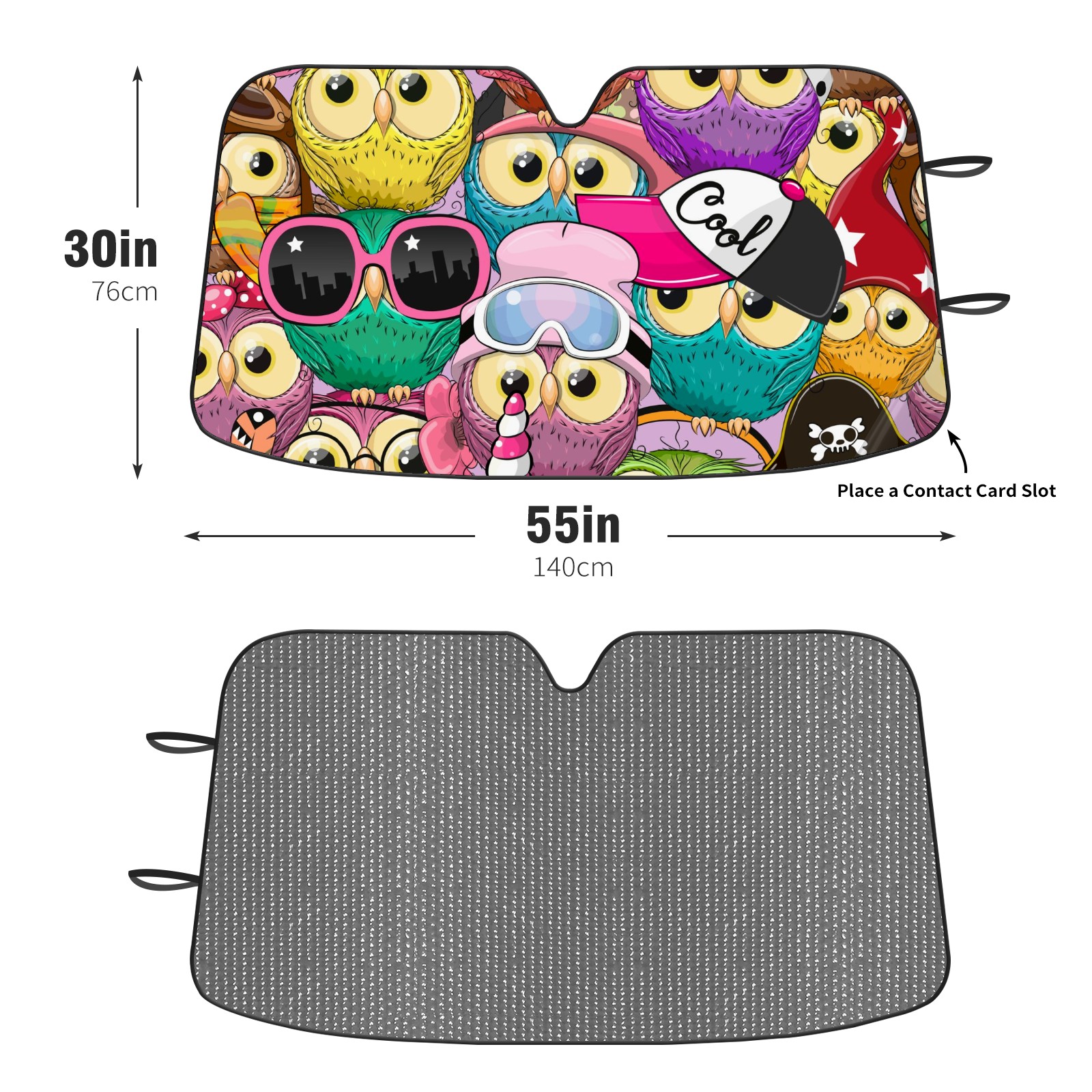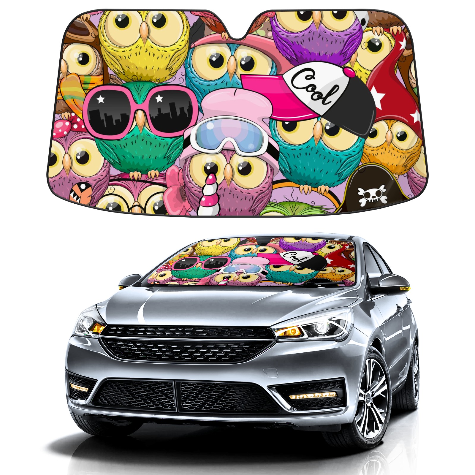Car Windshield Sun Shade For Front Window Colorful Cute Cartoon Owls Foldable Vehicle Windshield Car Sun Visor Covers Automotive Window Protector Car Camping Privacy Sun Blocker