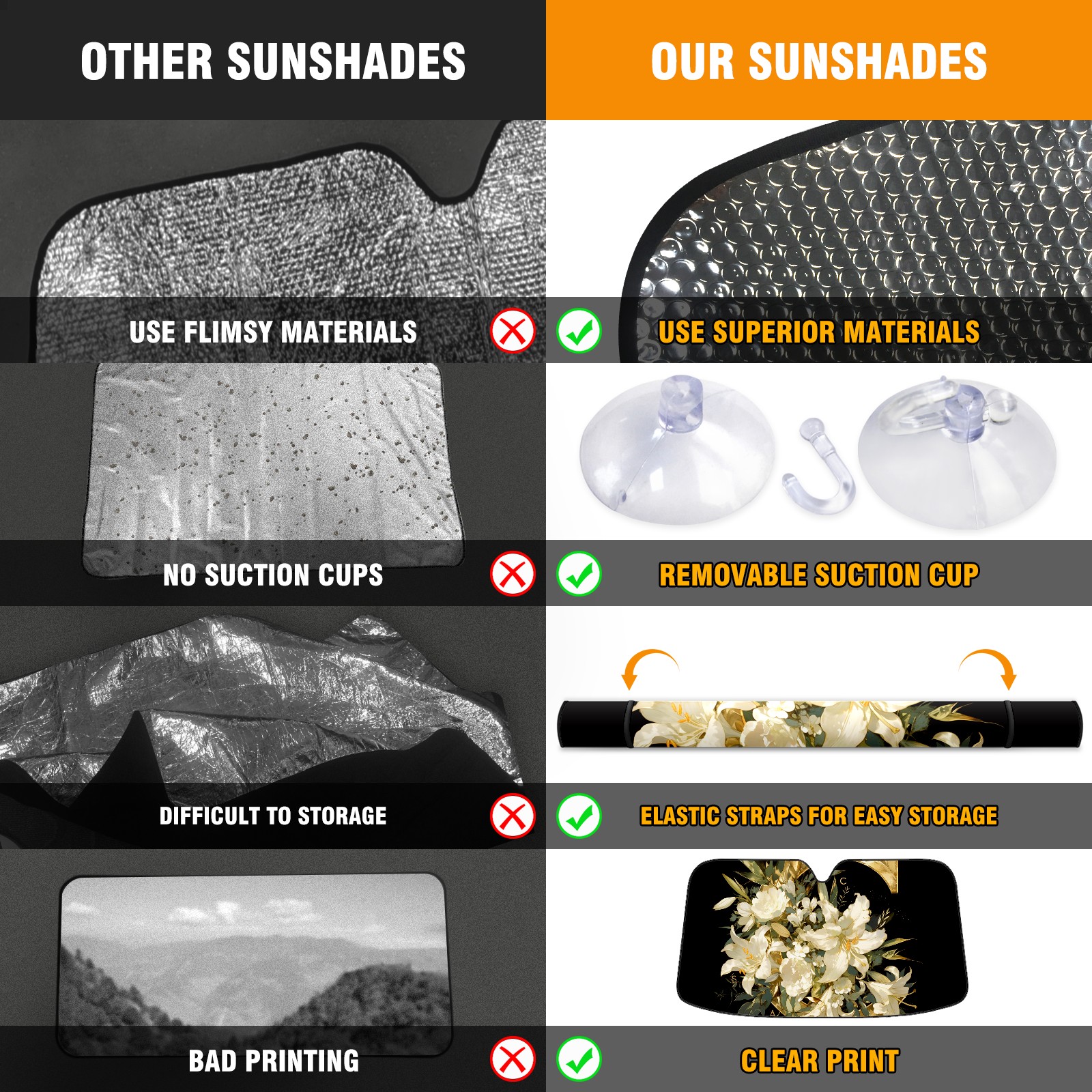 • Diameter /Size 63"L x 33.5"W Made from excellent materials which makes it sturdy and protects the car from the sun. Easy to use and pack. Makes the interior of the car cooler.You can easily stash the sunshade in the storage bag or store long term.It open and closes easy. Also the leather storage bag is durable and easy to put the umbrella back into.This windshield sunshade provides complete coverage and keeps your car interior cool under direct sun. It is easy to open and position under the windshield and around the rear-view mirror. Makes Your Car Easy To Identify, Perfect For Finding Your Car In Crowded Parking Lots And Garages.Great Choice: It Is A Great Gift For Dad, Boyfriend, Brother, Brother And Uncle, Friends, Classmates, Family And So On. Notice: Due To Difference Computer Monitors, The Color Maybe Slightly Different From Picture. As Different Measurement Methods, Measurement Data Will Float Within 2%.I Hope You Understand. If You Have Any Question About The Item Please Do Not Hesitate To Contact Us Immediately And We Will Give You A Satisfactory Reply Within 24 Hours.