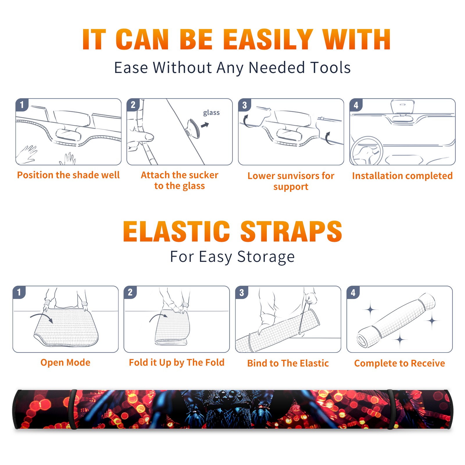 Car Windshield Sun Shade For Front Window Spider Foldable Vehicle Windshield Car Sun Visor Covers Automotive Window Protector Car Camping Privacy Sun Blocker