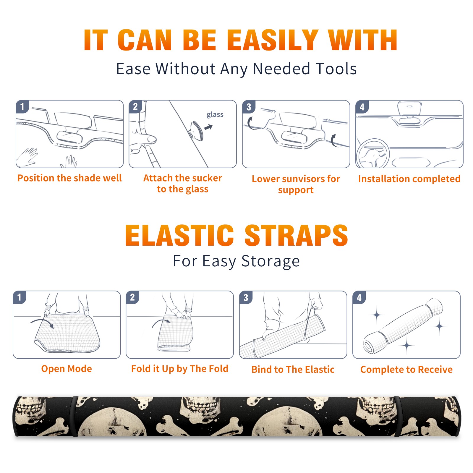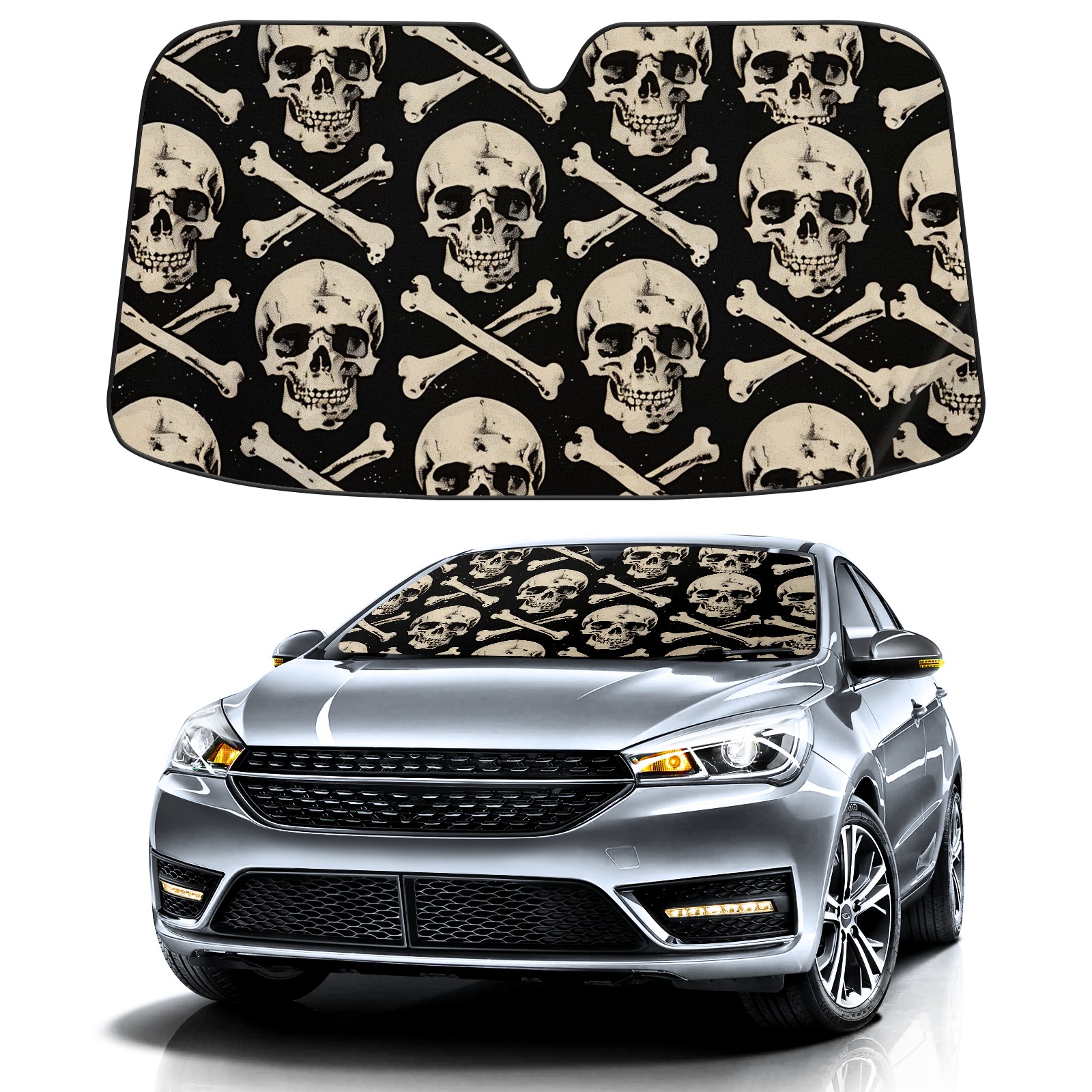 Car Windshield Sun Shade For Front Window Skull Head Foldable Vehicle Windshield Car Sun Visor Covers Automotive Window Protector Car Camping Privacy Sun Blocker