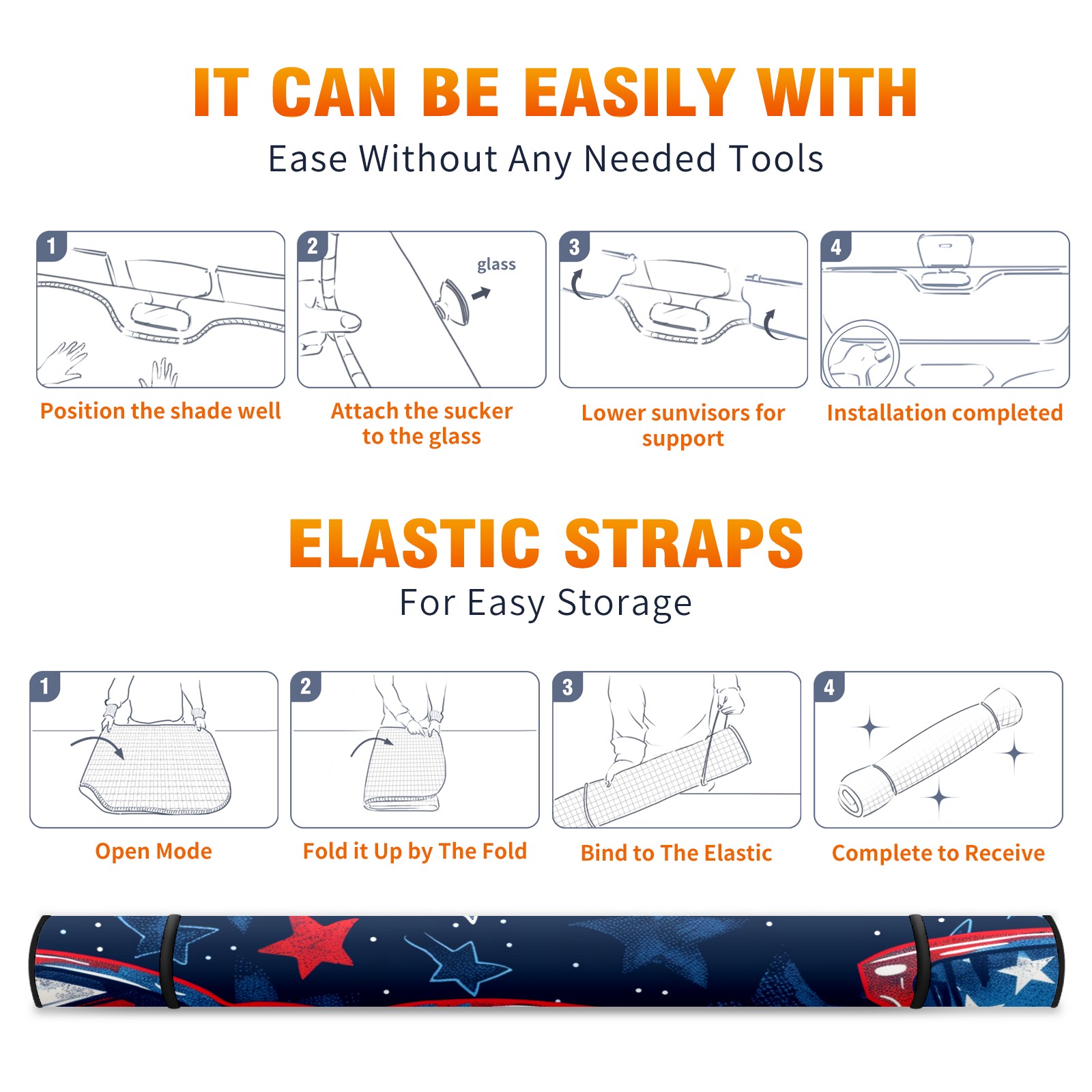 • Diameter /Size 63"L x 33.5"W Made from excellent materials which makes it sturdy and protects the car from the sun. Easy to use and pack. Makes the interior of the car cooler.You can easily stash the sunshade in the storage bag or store long term.It open and closes easy. Also the leather storage bag is durable and easy to put the umbrella back into.This windshield sunshade provides complete coverage and keeps your car interior cool under direct sun. It is easy to open and position under the windshield and around the rear-view mirror. Makes Your Car Easy To Identify, Perfect For Finding Your Car In Crowded Parking Lots And Garages.Great Choice: It Is A Great Gift For Dad, Boyfriend, Brother, Brother And Uncle, Friends, Classmates, Family And So On. Notice: Due To Difference Computer Monitors, The Color Maybe Slightly Different From Picture. As Different Measurement Methods, Measurement Data Will Float Within 2%.I Hope You Understand. If You Have Any Question About The Item Please Do Not Hesitate To Contact Us Immediately And We Will Give You A Satisfactory Reply Within 24 Hours.