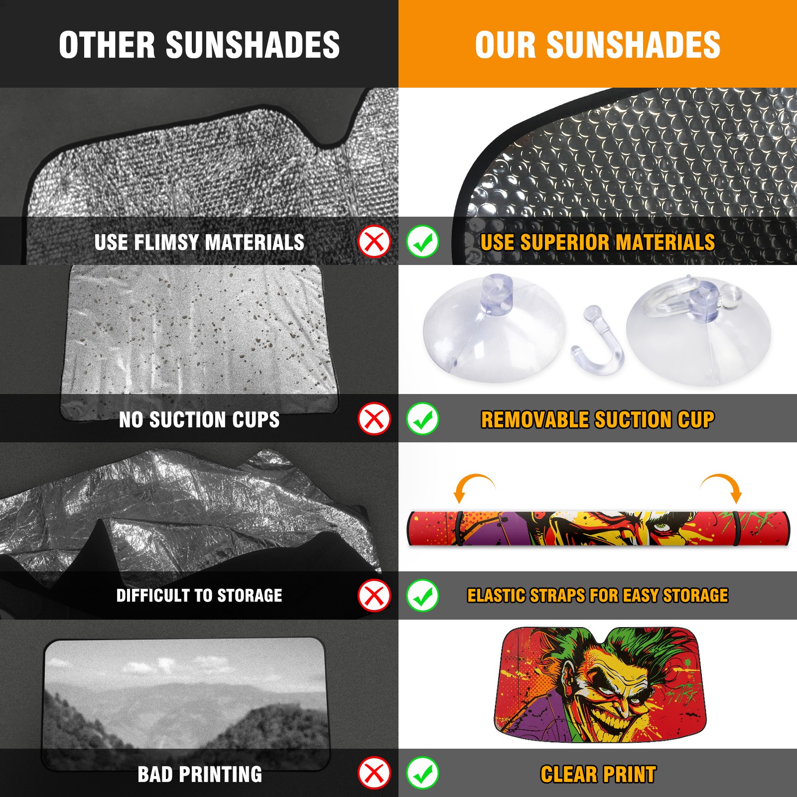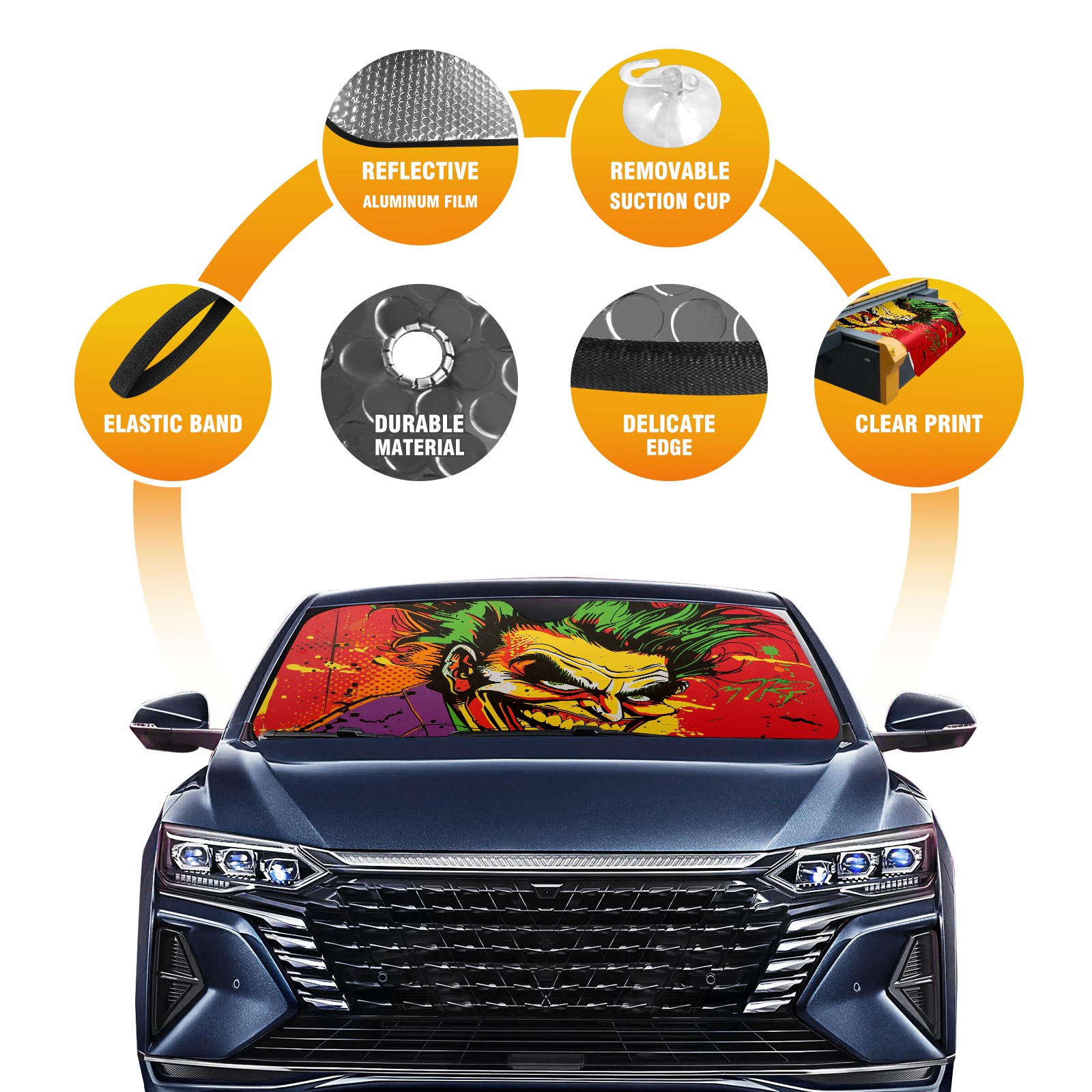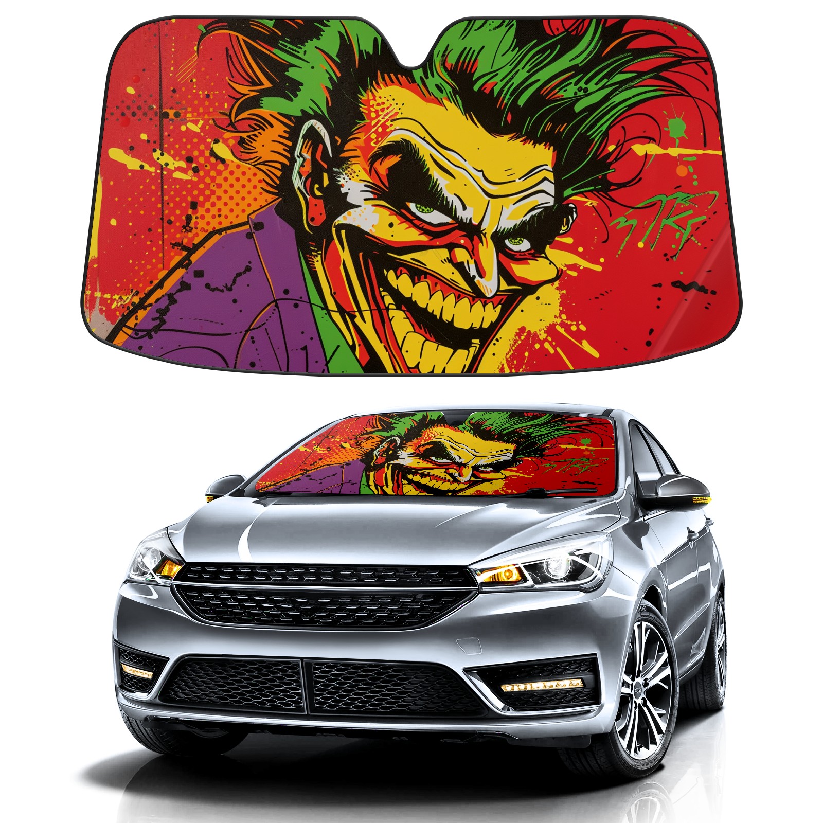 Car Windshield Sun Shade For Front Window Clown Foldable Vehicle Windshield Car Sun Visor Covers Automotive Window Protector Car Camping Privacy Sun Blocker