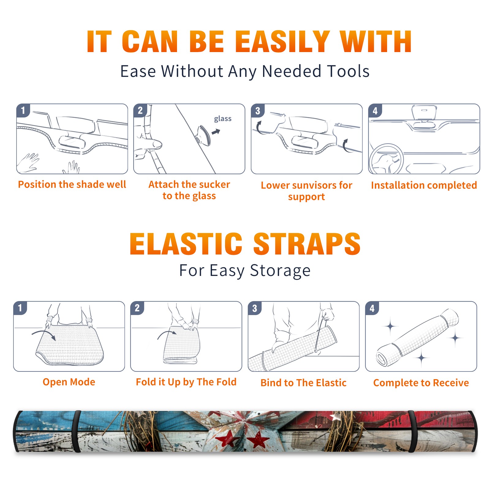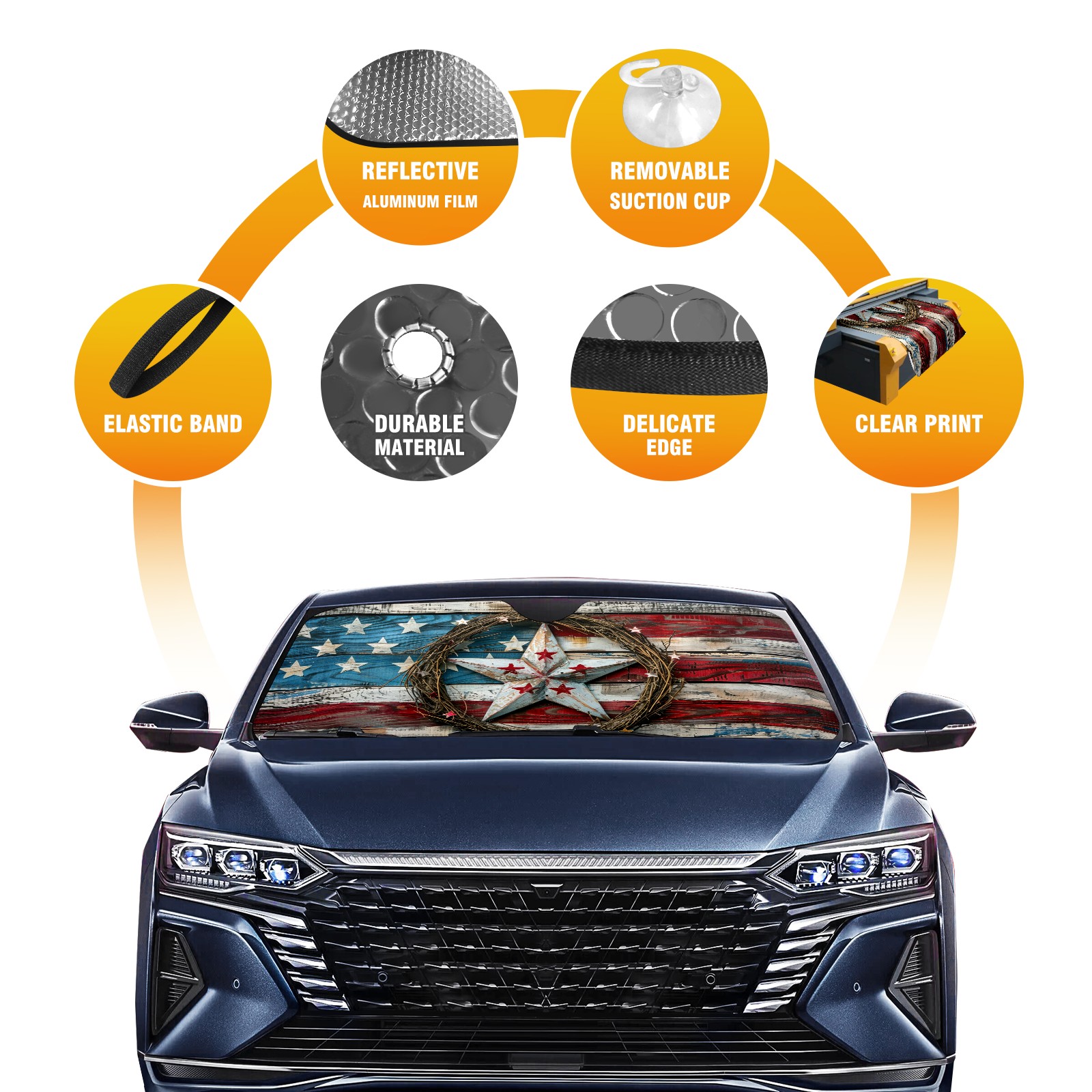 Car Windshield Sun Shade For Front Window American Flag Foldable Vehicle Windshield Car Sun Visor Covers Automotive Window Protector Car Camping Privacy Sun Blocker