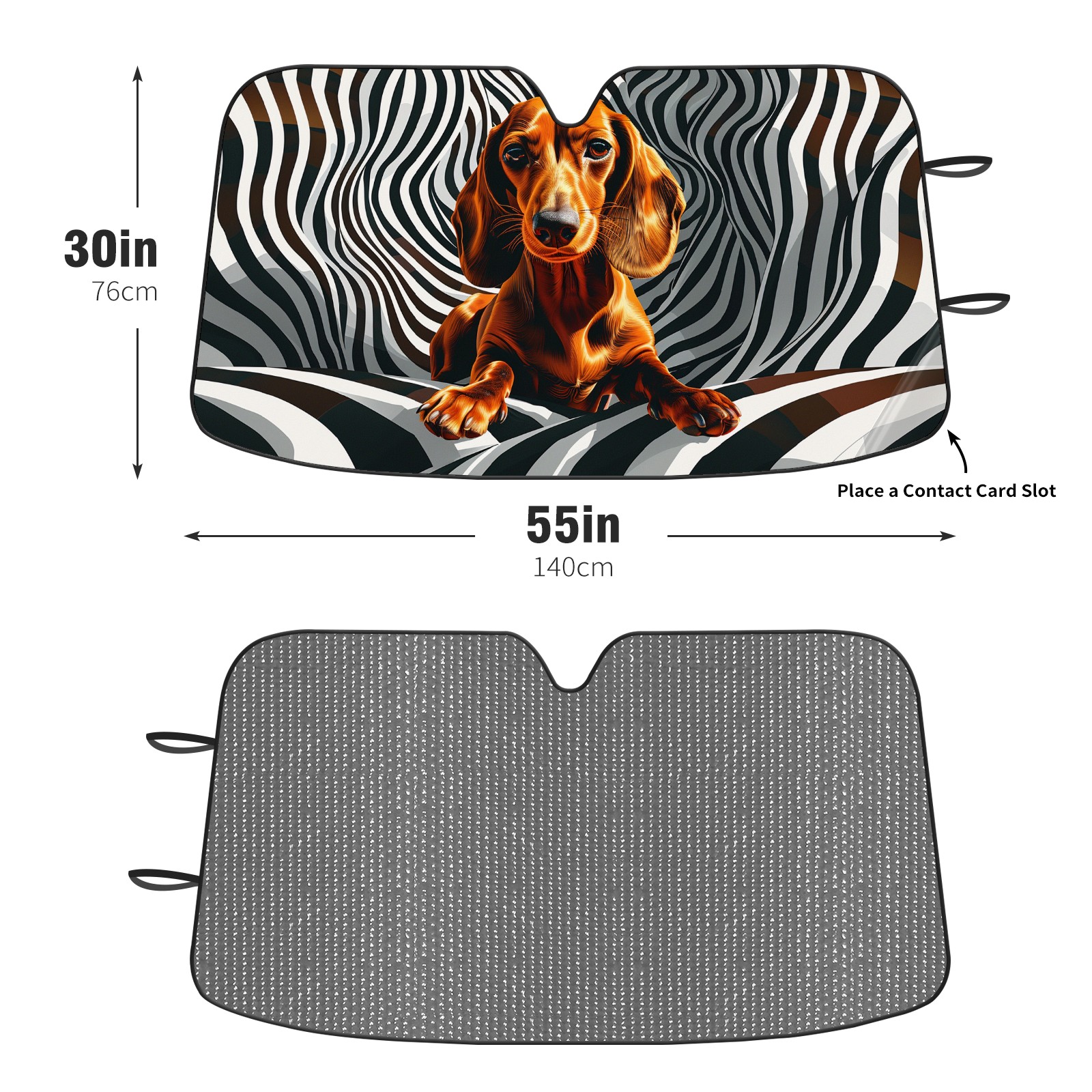 Diameter /Size 63"L x 33.5"W Made from excellent materials which makes it sturdy and protects the car from the sun. Easy to use and pack. Makes the interior of the car cooler.You can easily stash the sunshade in the storage bag or store long term.It open and closes easy. Also the leather storage bag is durable and easy to put the umbrella back into.This windshield sunshade provides complete coverage and keeps your car interior cool under direct sun. It is easy to open and position under the windshield and around the rear-view mirror. Makes Your Car Easy To Identify, Perfect For Finding Your Car In Crowded Parking Lots And Garages.Great Choice: It Is A Great Gift For Dad, Boyfriend, Brother, Brother And Uncle, Friends, Classmates, Family And So On. Notice: Due To Difference Computer Monitors, The Color Maybe Slightly Different From Picture. As Different Measurement Methods, Measurement Data Will Float Within 2%.I Hope You Understand. If You Have Any Question About The Item Please Do Not Hesitate To Contact Us Immediately And We Will Give You A Satisfactory Reply Within 24 Hours.
