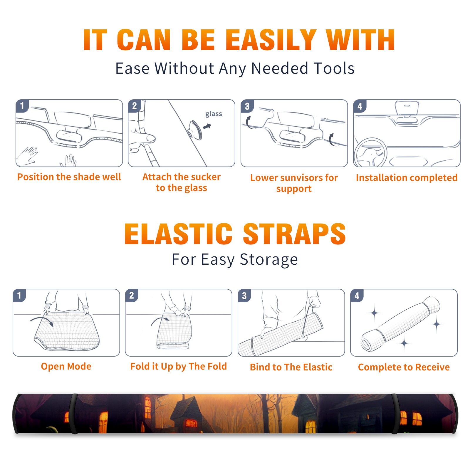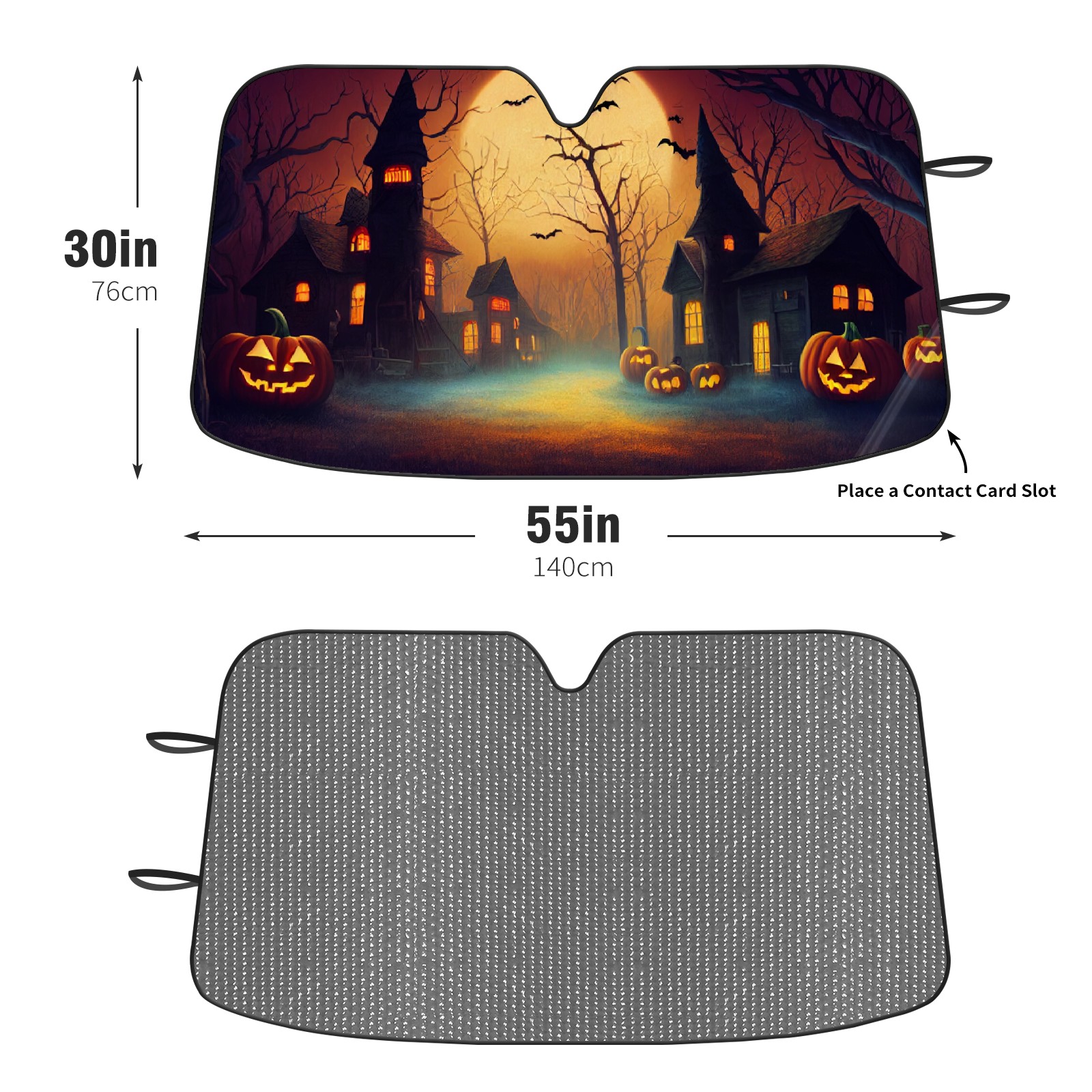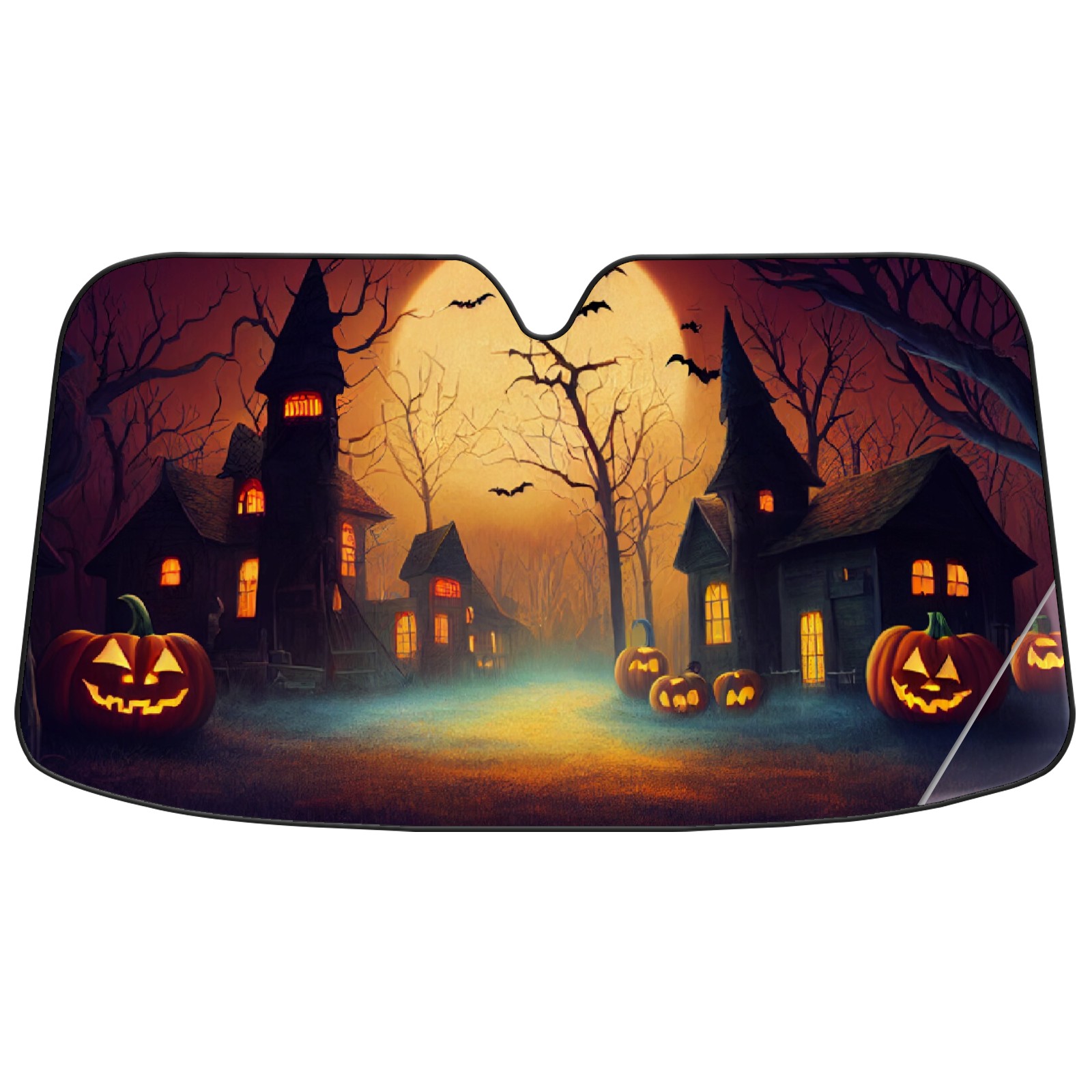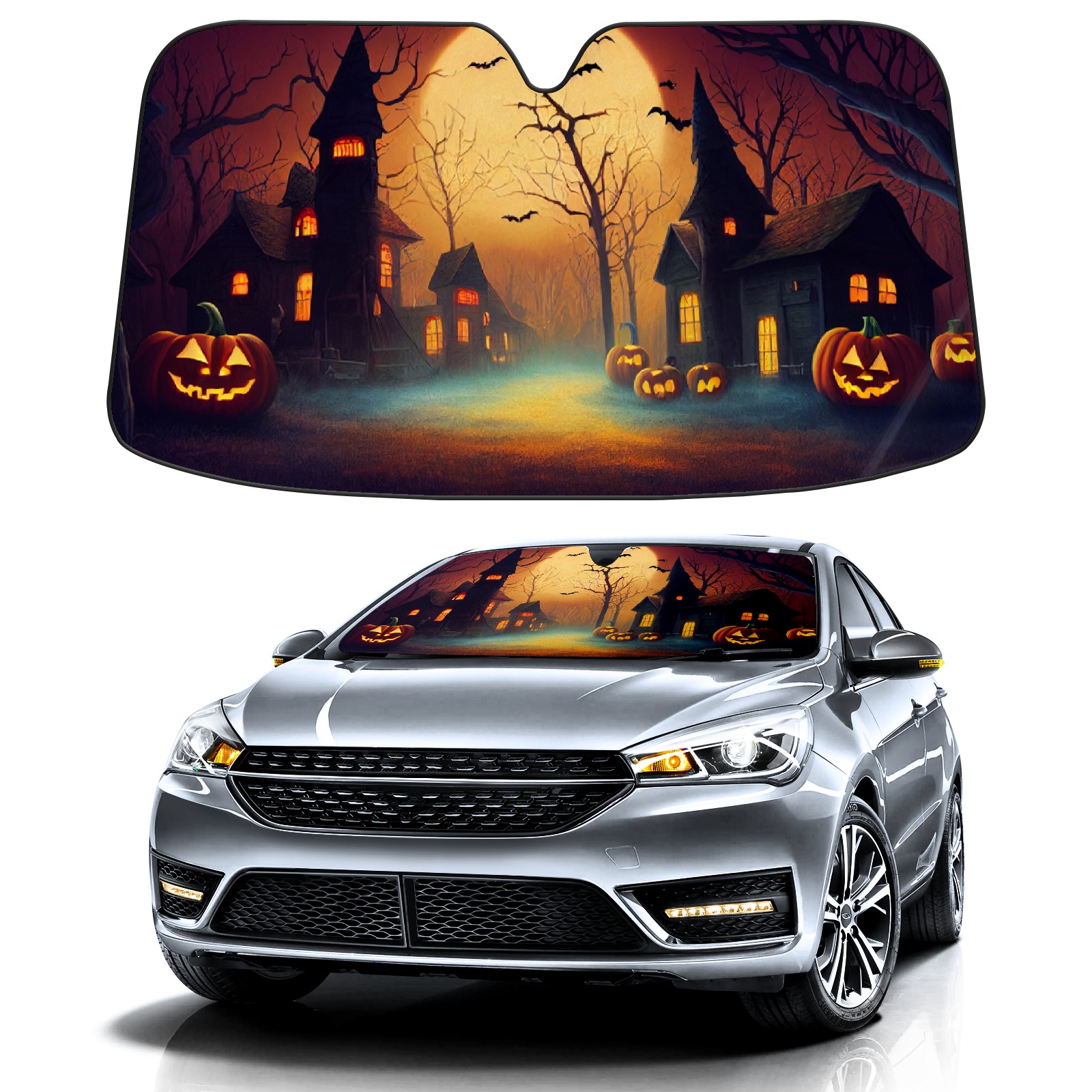 Car Windshield Sun Shade For Front Window Halloween Moon Foldable Vehicle Windshield Car Sun Visor Covers Automotive Window Protector Car Camping Privacy Sun Blocker