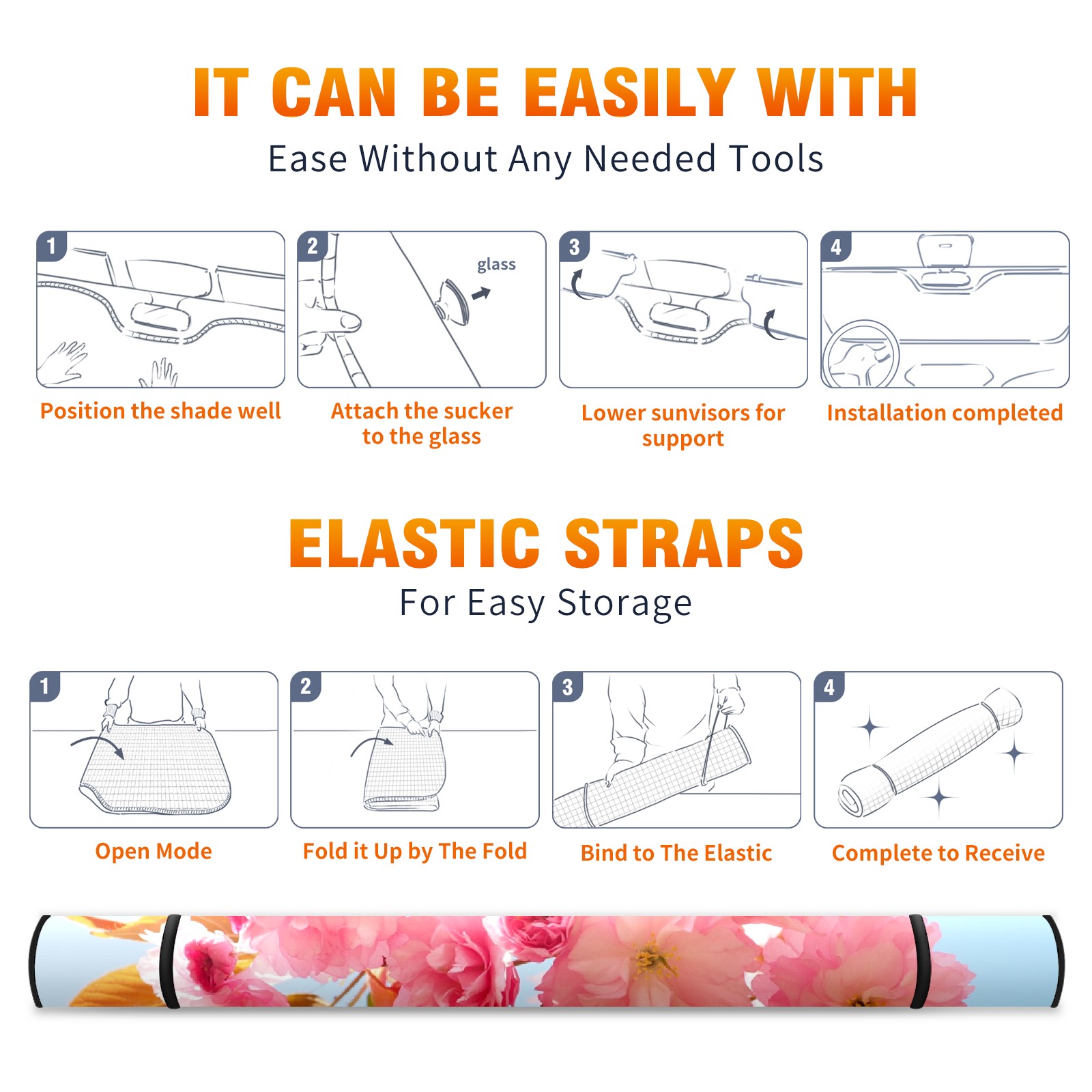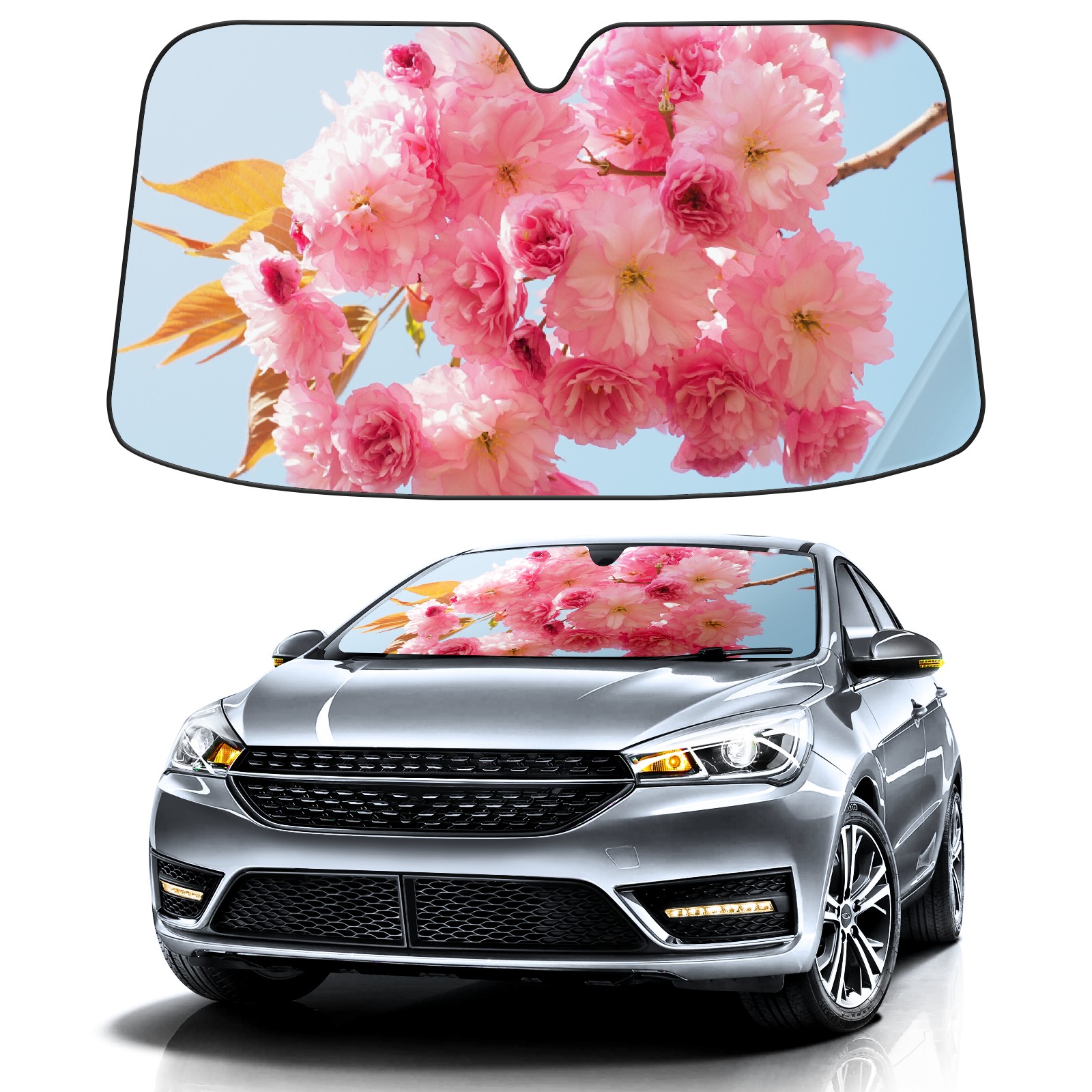 Car Windshield Sun Shade For Front Window Cherry Blossom Foldable Vehicle Windshield Car Sun Visor Covers Automotive Window Protector Car Camping Privacy Sun Blocker