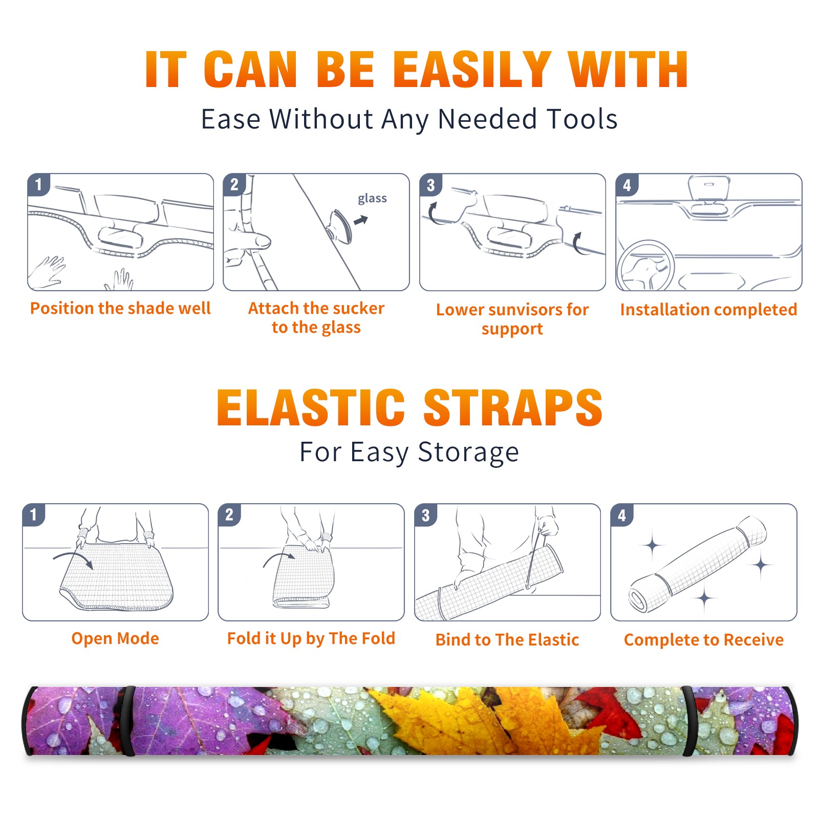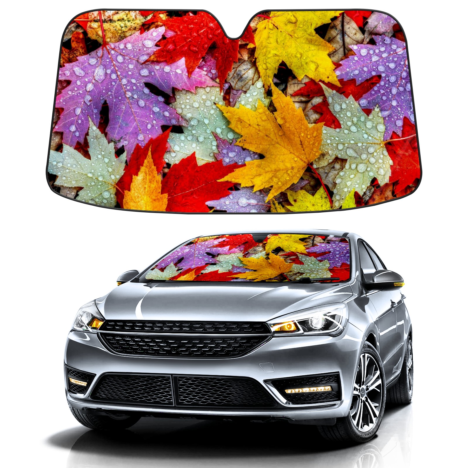Car Windshield Sun Shade For Front Window Autumn Leaf Foldable Vehicle Windshield Car Sun Visor Covers Automotive Window Protector Car Camping Privacy Sun Blocker