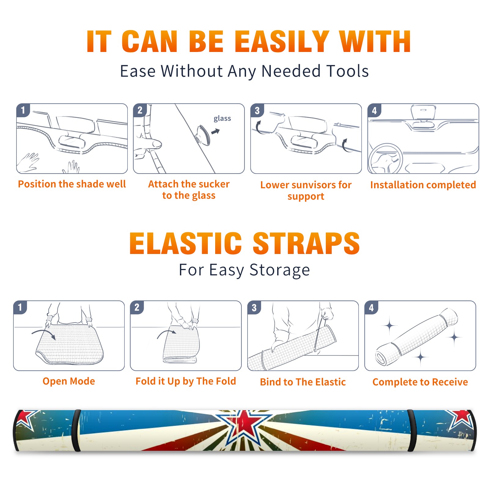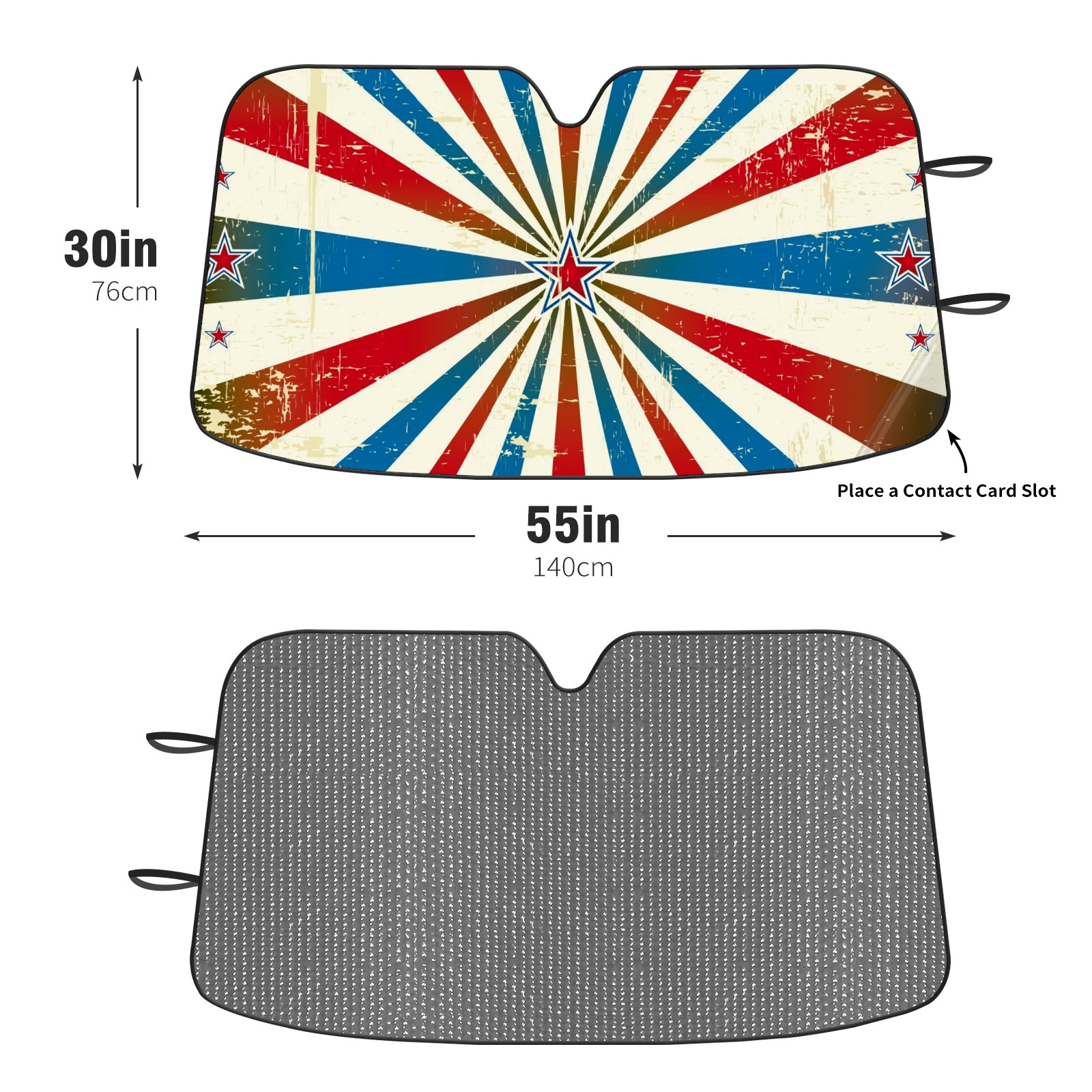 Diameter /Size 63"L x 33.5"W Made from excellent materials which makes it sturdy and protects the car from the sun. Easy to use and pack. Makes the interior of the car cooler.You can easily stash the sunshade in the storage bag or store long term.It open and closes easy. Also the leather storage bag is durable and easy to put the umbrella back into.This windshield sunshade provides complete coverage and keeps your car interior cool under direct sun. It is easy to open and position under the windshield and around the rear-view mirror. Makes Your Car Easy To Identify, Perfect For Finding Your Car In Crowded Parking Lots And Garages.Great Choice: It Is A Great Gift For Dad, Boyfriend, Brother, Brother And Uncle, Friends, Classmates, Family And So On. Notice: Due To Difference Computer Monitors, The Color Maybe Slightly Different From Picture. As Different Measurement Methods, Measurement Data Will Float Within 2%.I Hope You Understand. If You Have Any Question About The Item Please Do Not Hesitate To Contact Us Immediately And We Will Give You A Satisfactory Reply Within 24 Hours.