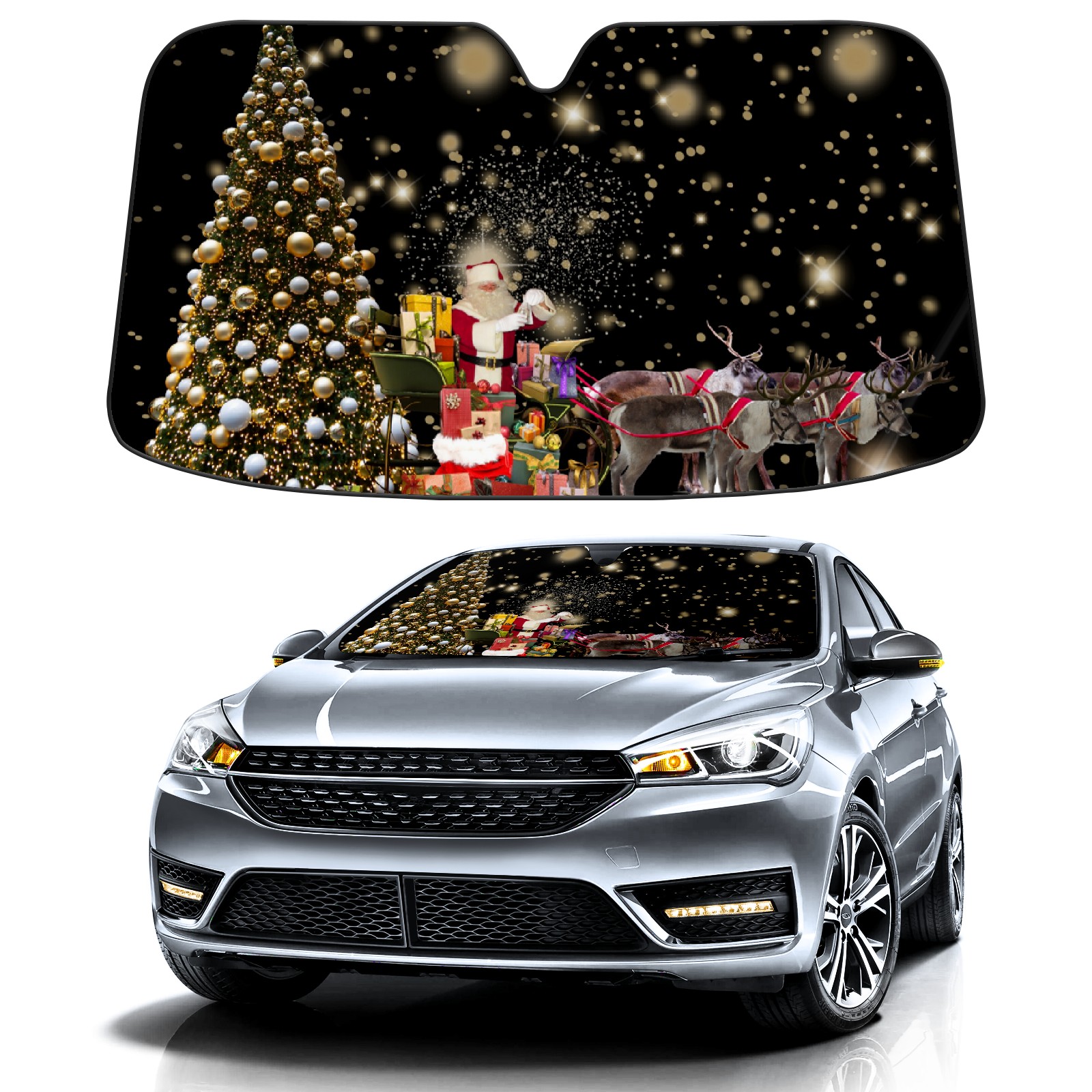 Car Windshield Sun Shade For Front Window Christmas Tree Gifts Foldable Vehicle Windshield Car Sun Visor Covers Automotive Window Protector Car Camping Privacy Sun Blocker