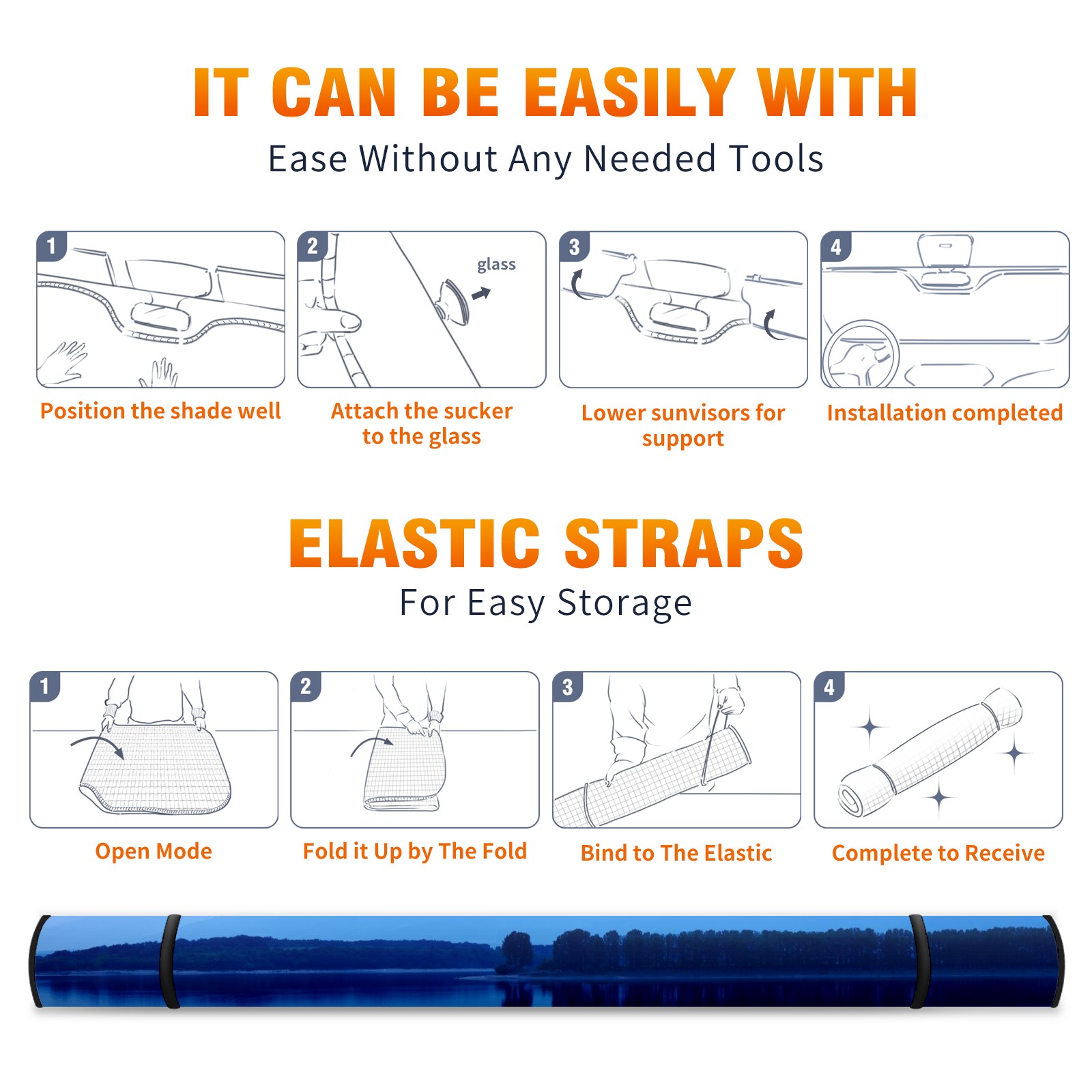 • Diameter /Size 63"L x 33.5"W Made from excellent materials which makes it sturdy and protects the car from the sun. Easy to use and pack. Makes the interior of the car cooler.You can easily stash the sunshade in the storage bag or store long term.It open and closes easy. Also the leather storage bag is durable and easy to put the umbrella back into.This windshield sunshade provides complete coverage and keeps your car interior cool under direct sun. It is easy to open and position under the windshield and around the rear-view mirror. Makes Your Car Easy To Identify, Perfect For Finding Your Car In Crowded Parking Lots And Garages.Great Choice: It Is A Great Gift For Dad, Boyfriend, Brother, Brother And Uncle, Friends, Classmates, Family And So On. Notice: Due To Difference Computer Monitors, The Color Maybe Slightly Different From Picture. As Different Measurement Methods, Measurement Data Will Float Within 2%.I Hope You Understand. If You Have Any Question About The Item Please Do Not Hesitate To Contact Us Immediately And We Will Give You A Satisfactory Reply Within 24 Hours.