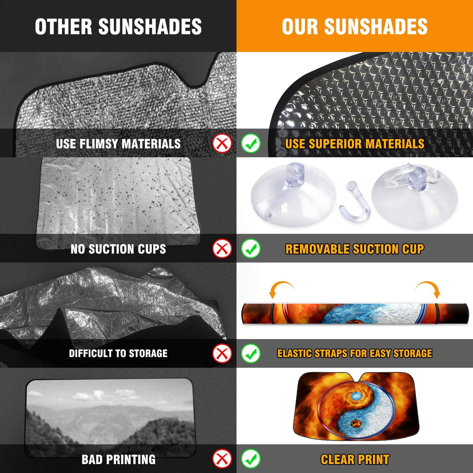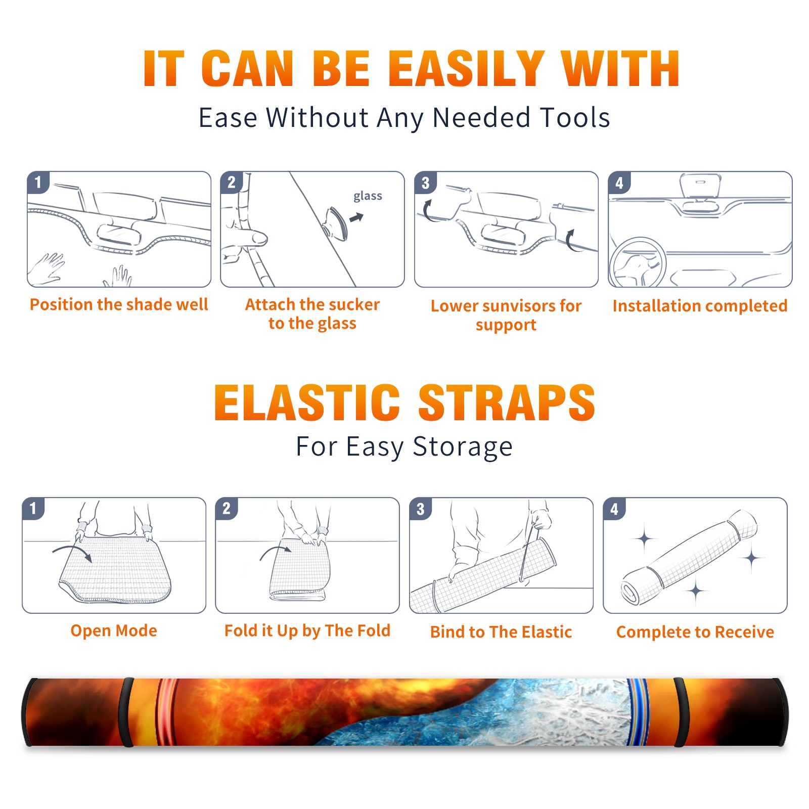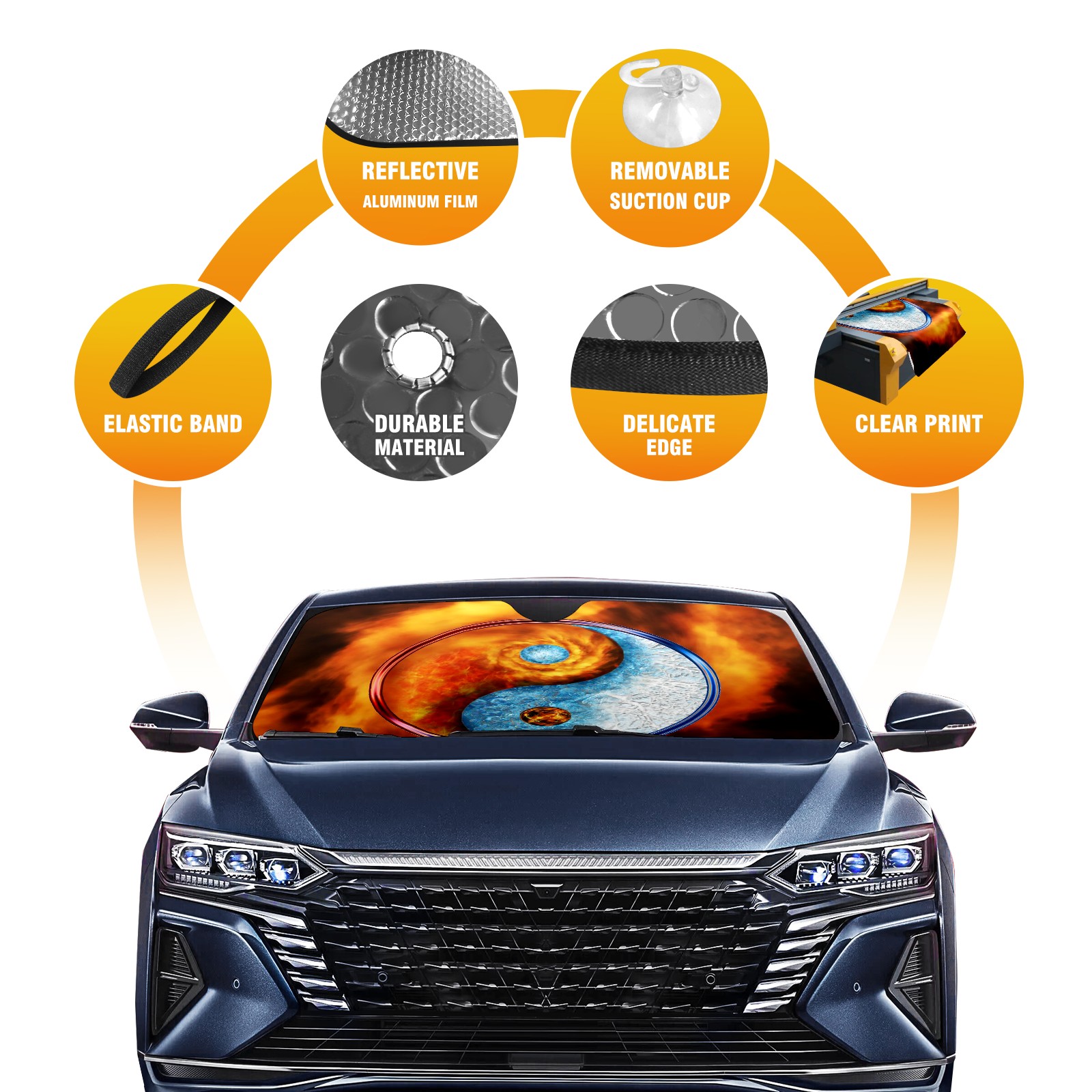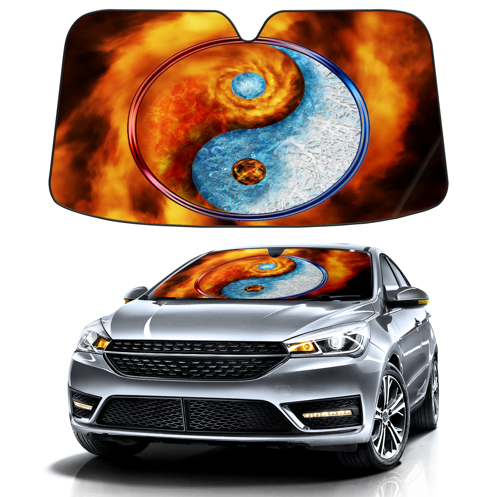 Car Windshield Sun Shade For Front Window Ice Fire Balance Foldable Vehicle Windshield Car Sun Visor Covers Automotive Window Protector Car Camping Privacy Sun Blocker