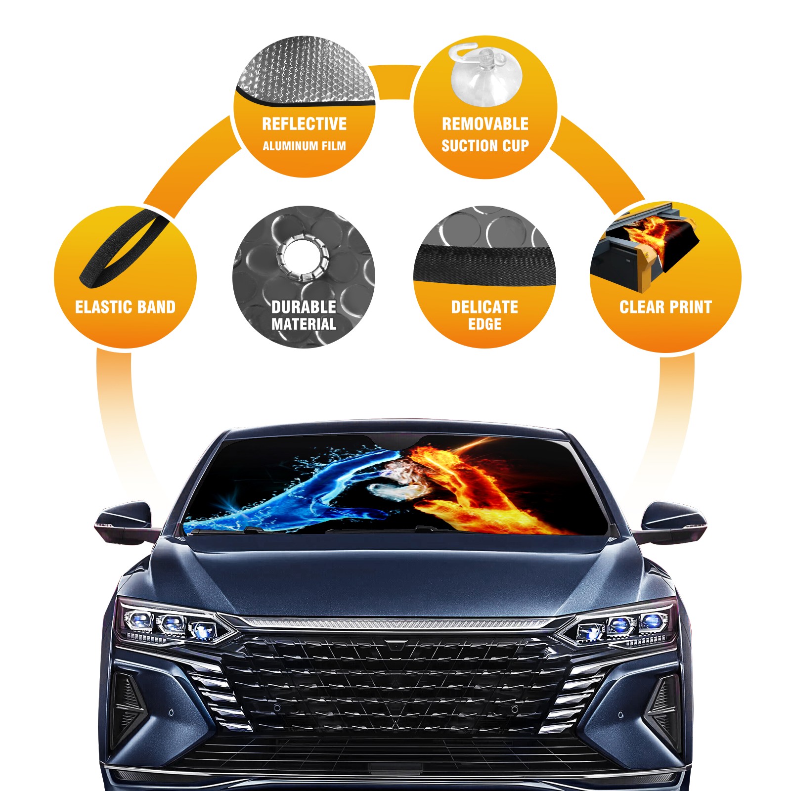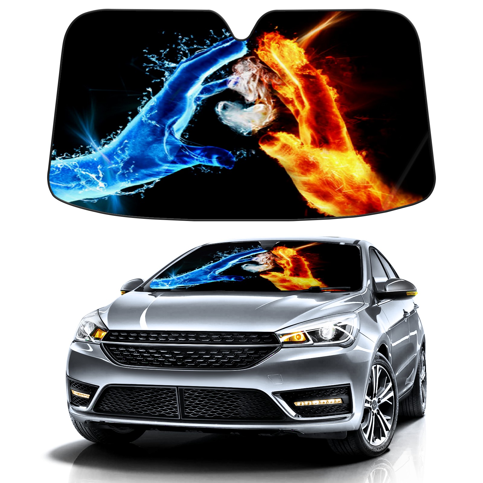 Car Windshield Sun Shade For Front Window Ice And Fire Palm Foldable Vehicle Windshield Car Sun Visor Covers Automotive Window Protector Car Camping Privacy Sun Blocker