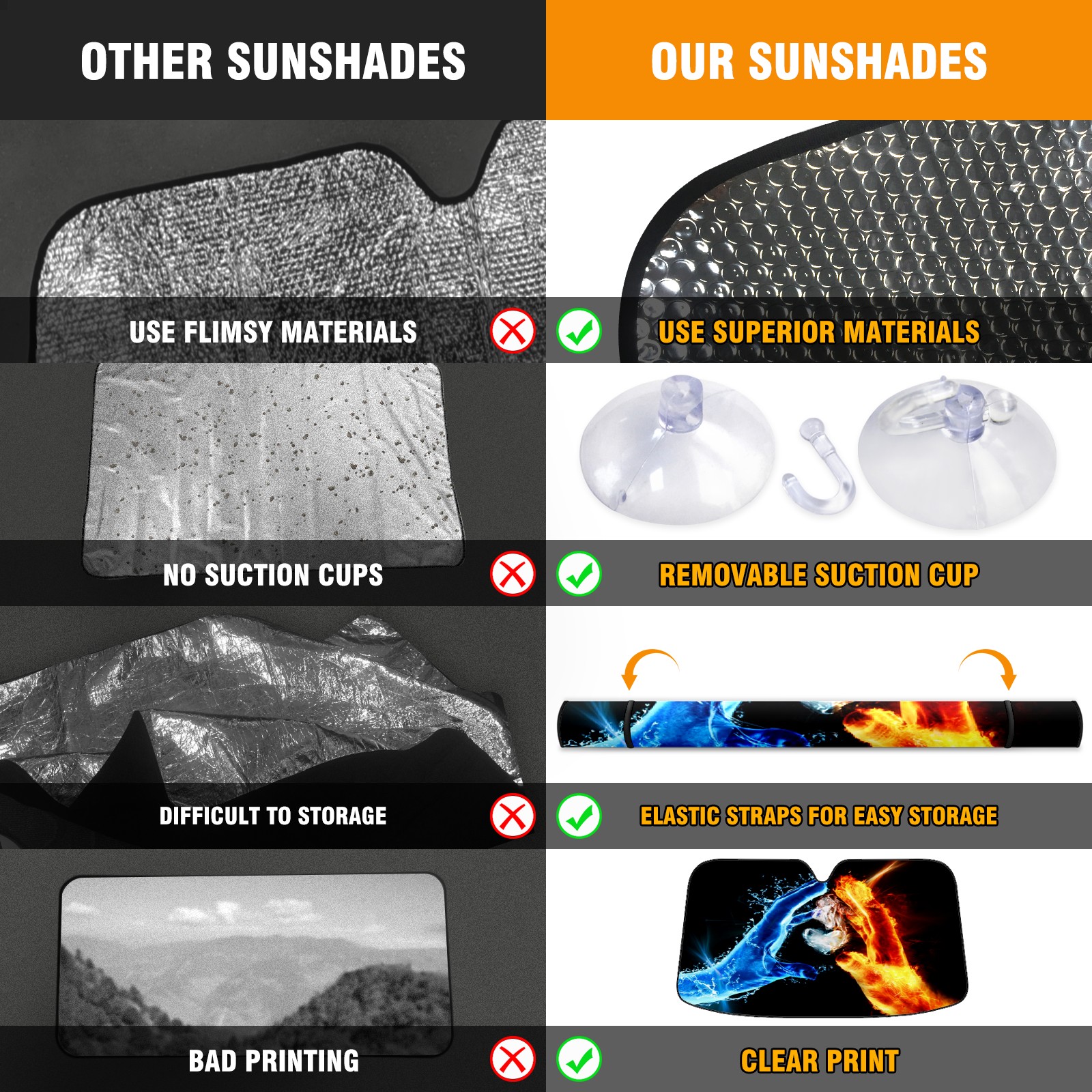• Diameter /Size 63"L x 33.5"W Made from excellent materials which makes it sturdy and protects the car from the sun. Easy to use and pack. Makes the interior of the car cooler.You can easily stash the sunshade in the storage bag or store long term.It open and closes easy. Also the leather storage bag is durable and easy to put the umbrella back into.This windshield sunshade provides complete coverage and keeps your car interior cool under direct sun. It is easy to open and position under the windshield and around the rear-view mirror. Makes Your Car Easy To Identify, Perfect For Finding Your Car In Crowded Parking Lots And Garages.Great Choice: It Is A Great Gift For Dad, Boyfriend, Brother, Brother And Uncle, Friends, Classmates, Family And So On. Notice: Due To Difference Computer Monitors, The Color Maybe Slightly Different From Picture. As Different Measurement Methods, Measurement Data Will Float Within 2%.I Hope You Understand. If You Have Any Question About The Item Please Do Not Hesitate To Contact Us Immediately And We Will Give You A Satisfactory Reply Within 24 Hours.