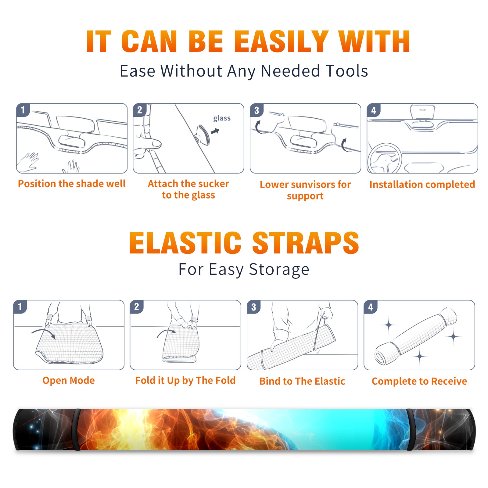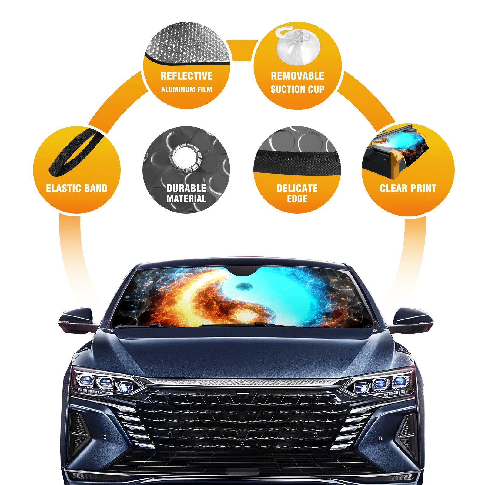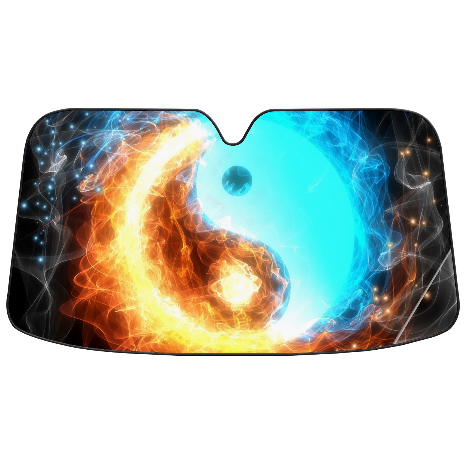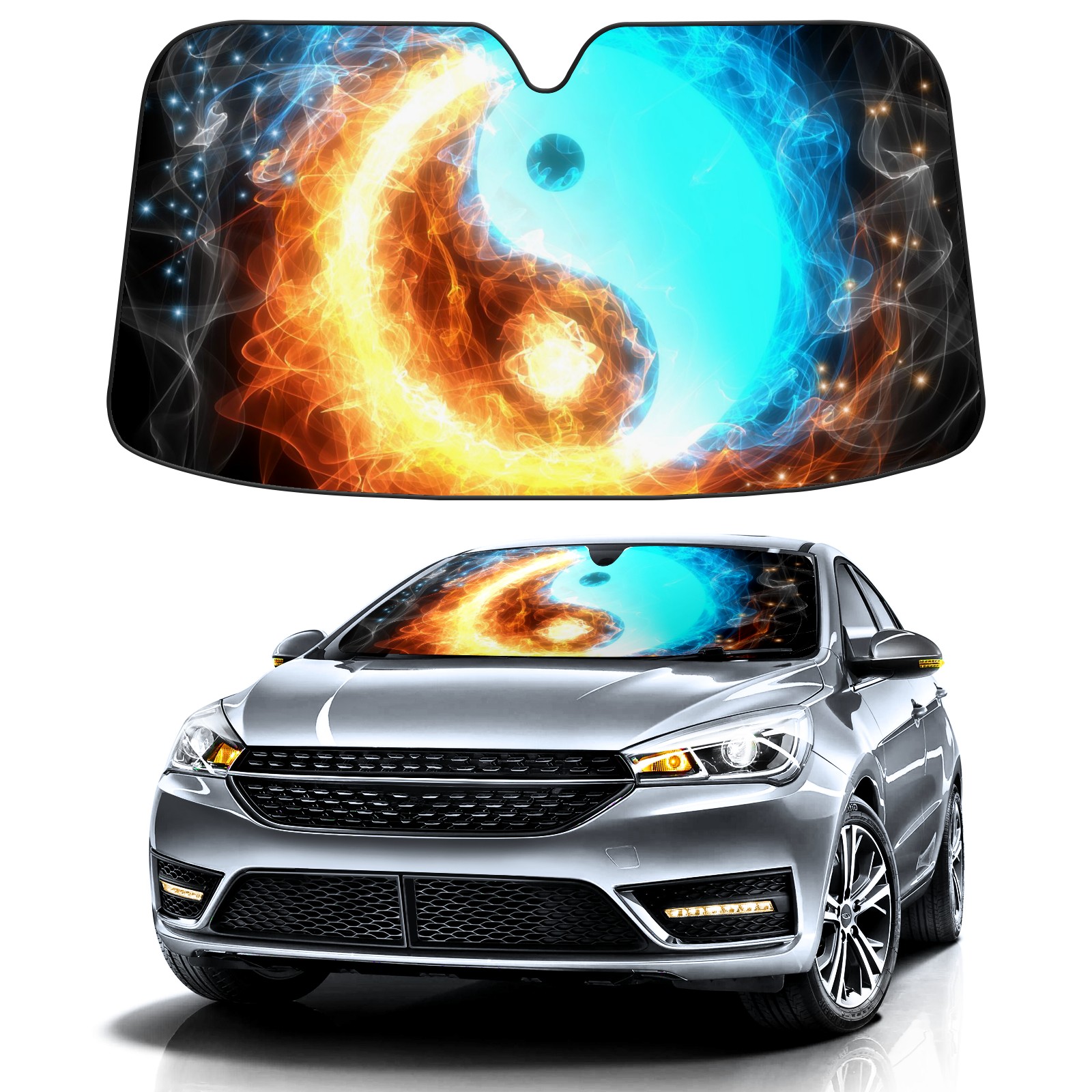 Car Windshield Sun Shade For Front Window Fire And Ice Balance Foldable Vehicle Windshield Car Sun Visor Covers Automotive Window Protector Car Camping Privacy Sun Blocker