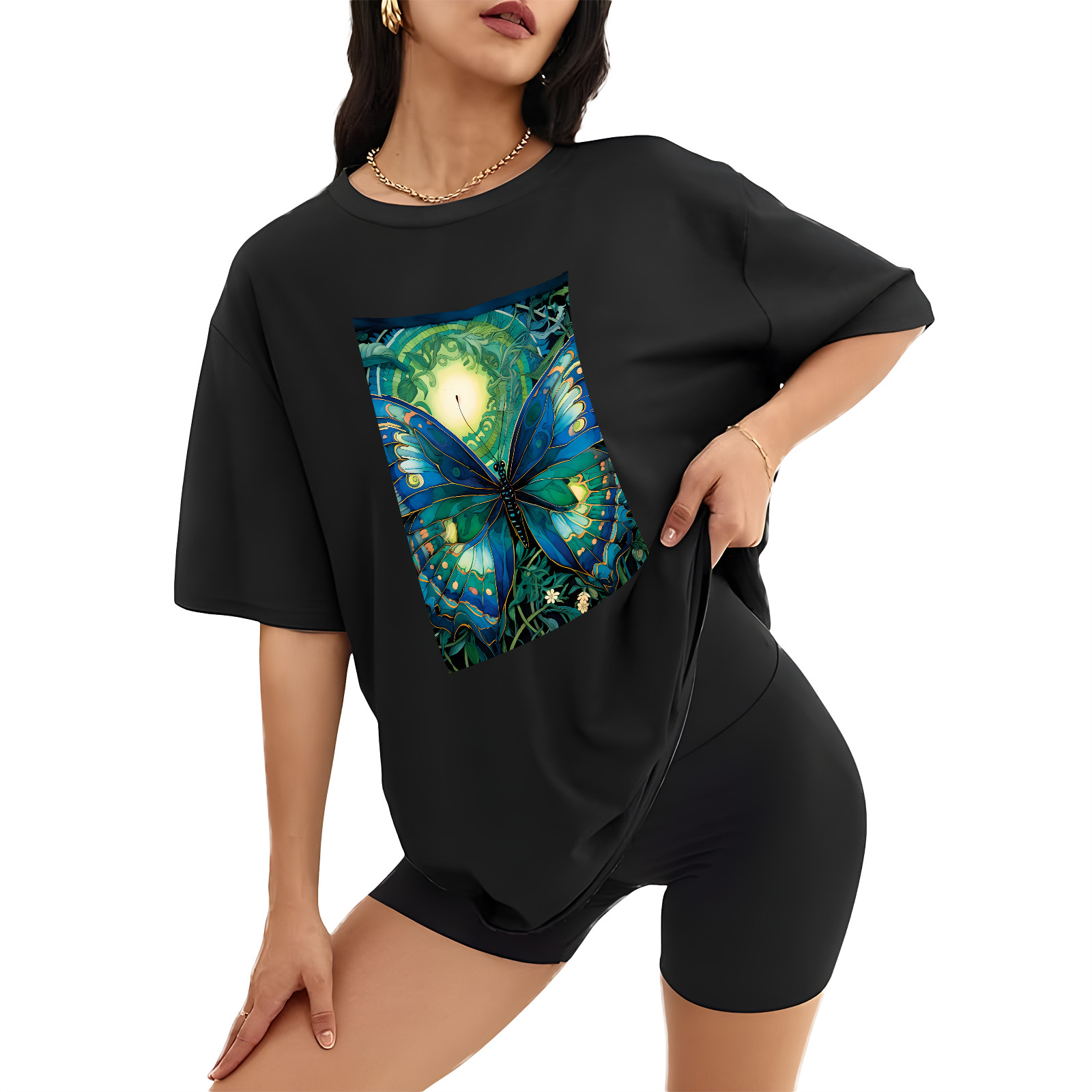 Plus Size Shirt for Women Black Tops for Women Short Sleeves Shirt for Women Butterfly (1) T Shirt Crewneck Shirt for Women XS