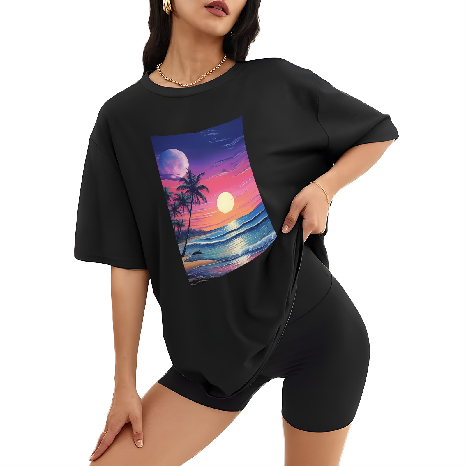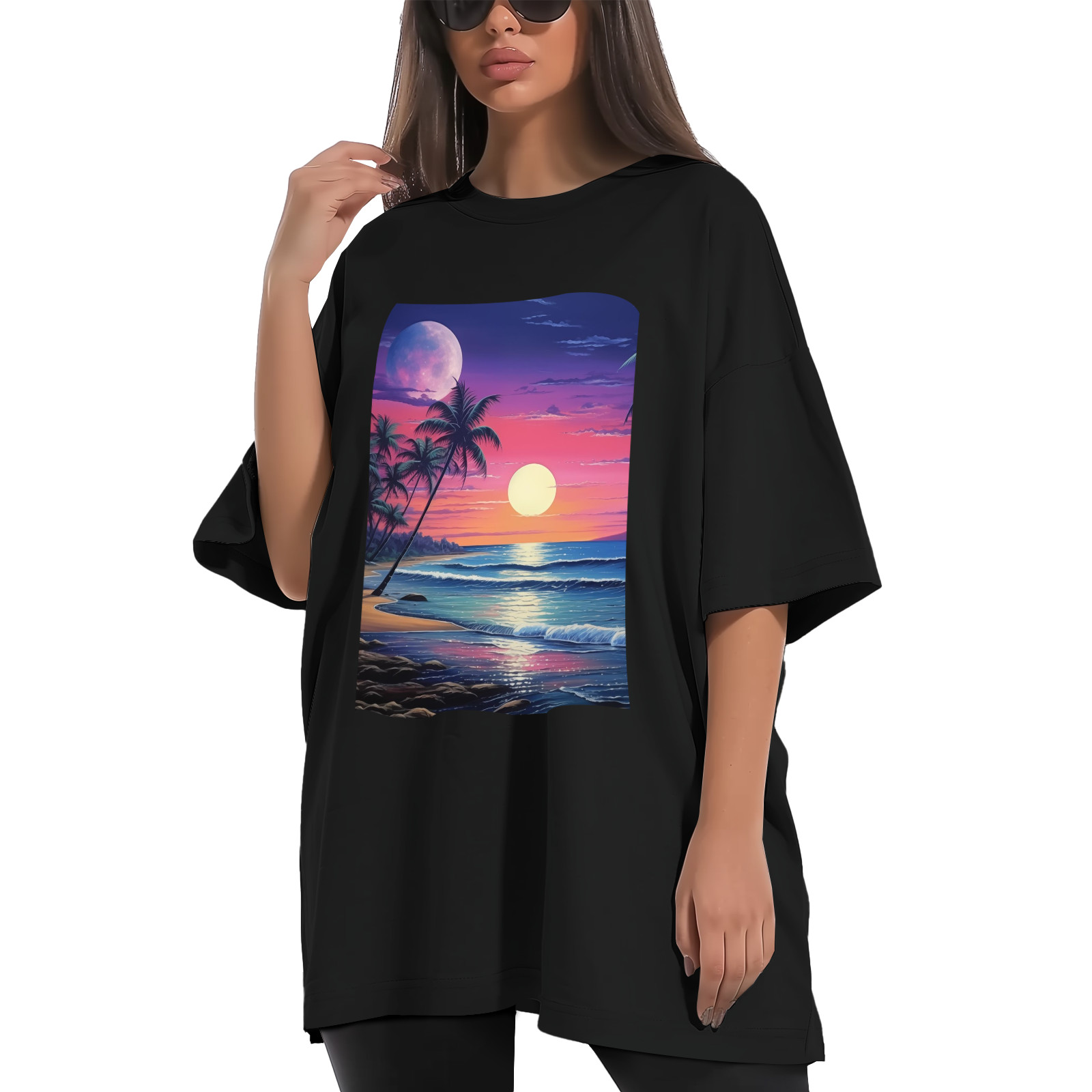 • Feature: Fashion letter print graphic, round neck, short sleeve, oversized, which is very casual and fashion. Suitable occasions: Women summer tee shirt suitable for casual, work, date, shopping, weekend, holiday, party, club, pub, office, home, outdoor, vacation etc. Oversized t shirts for women is perfect with jeans, shorts, leggings, pants or skirts for a concise and unique look. Wash Instruction: We recommend machine-wash or hand wash in cold water, do not bleach for these plus size tops. Please refer to size chart which we provide in our photos (The last picture of the product has detailed size data) .Please allow 1-2cm differs due to manual measurement. Material: 100% Polyester Sleeve Length: Short Sleeve Neckline: Round Neck Sleeve Type: Drop Shoulder Style: Casual