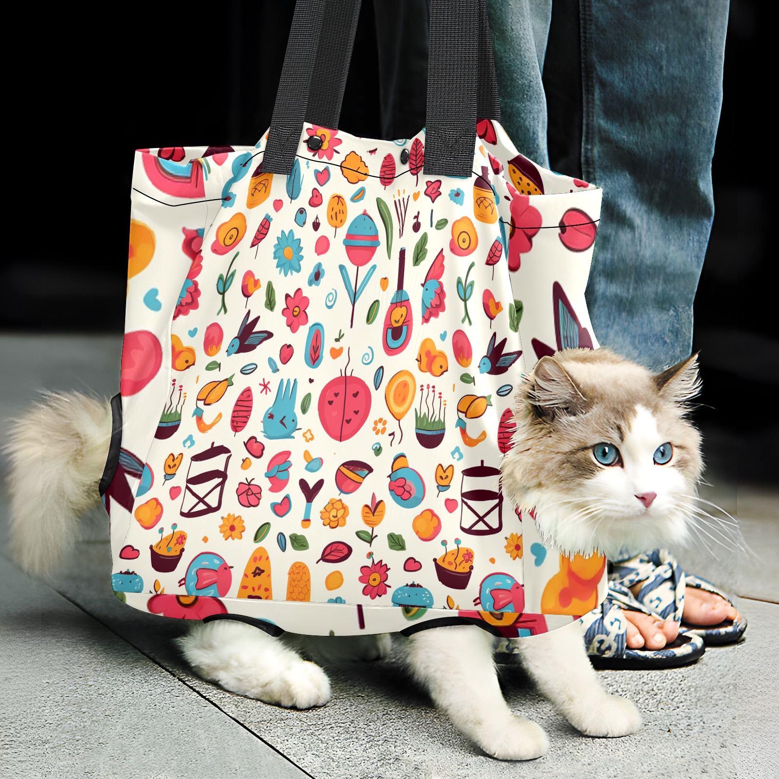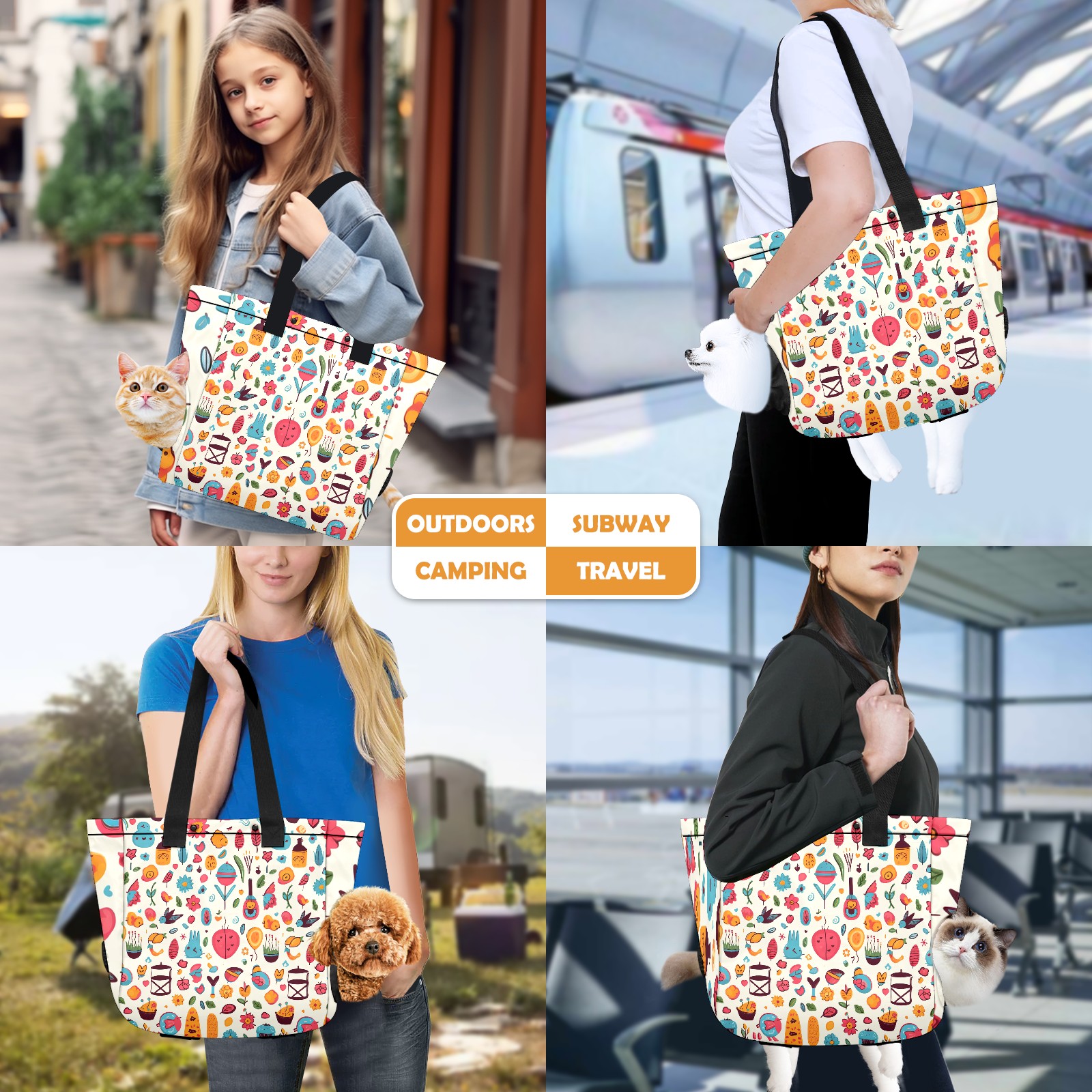 This pet travel bag is designed for carrying small pets, made of lightweight and durable high quality polyester fabric, breathable fabric, soft fabric, can be adjusted easily with drawstring, suitable for all sizes of pets. The bottom of the pet bag is equipped with a removable panel, which can be folded for easy carrying and for pets to stretch their limbs. This pet carrier can be used for pet travelling, pet nail trimming, shopping and other daily activities.