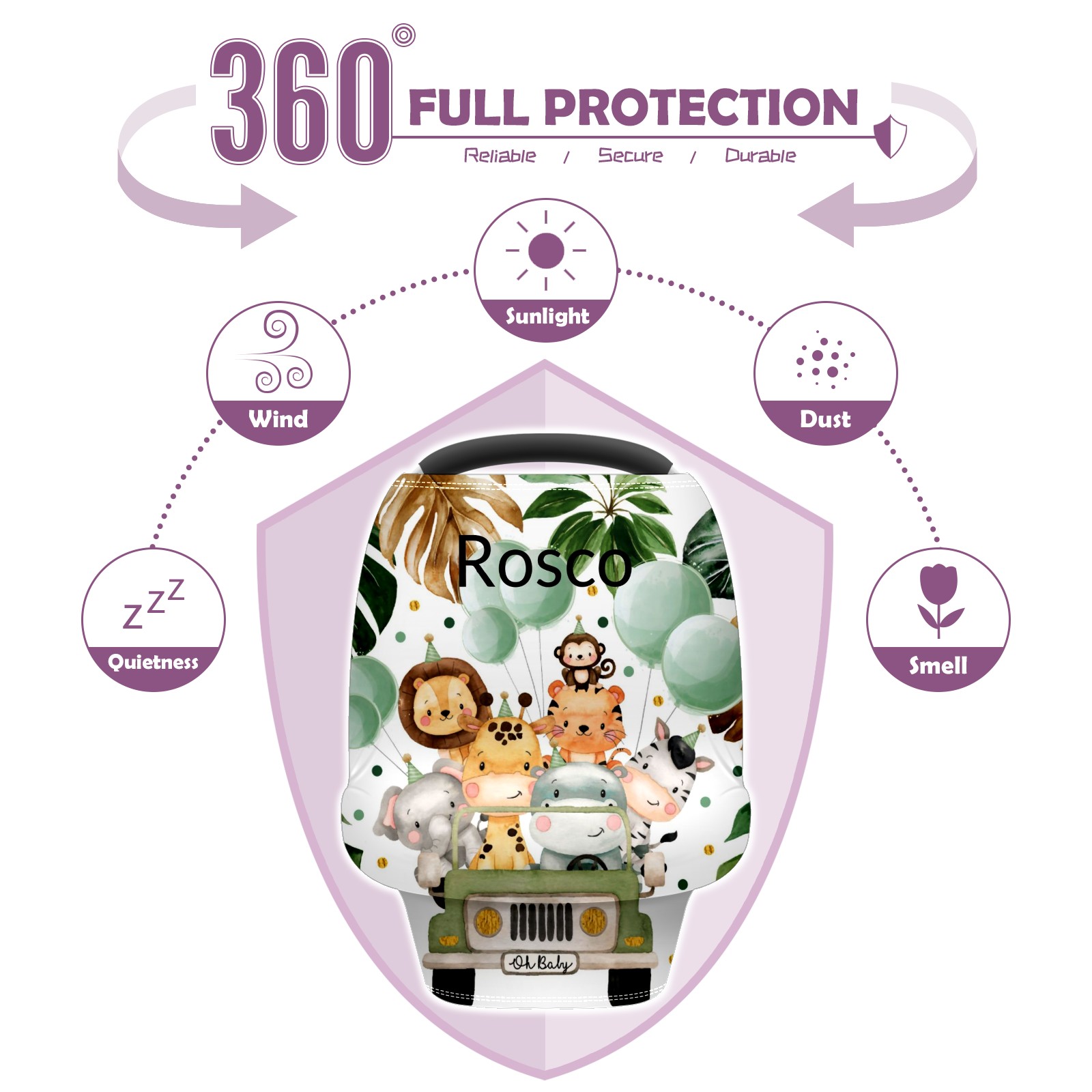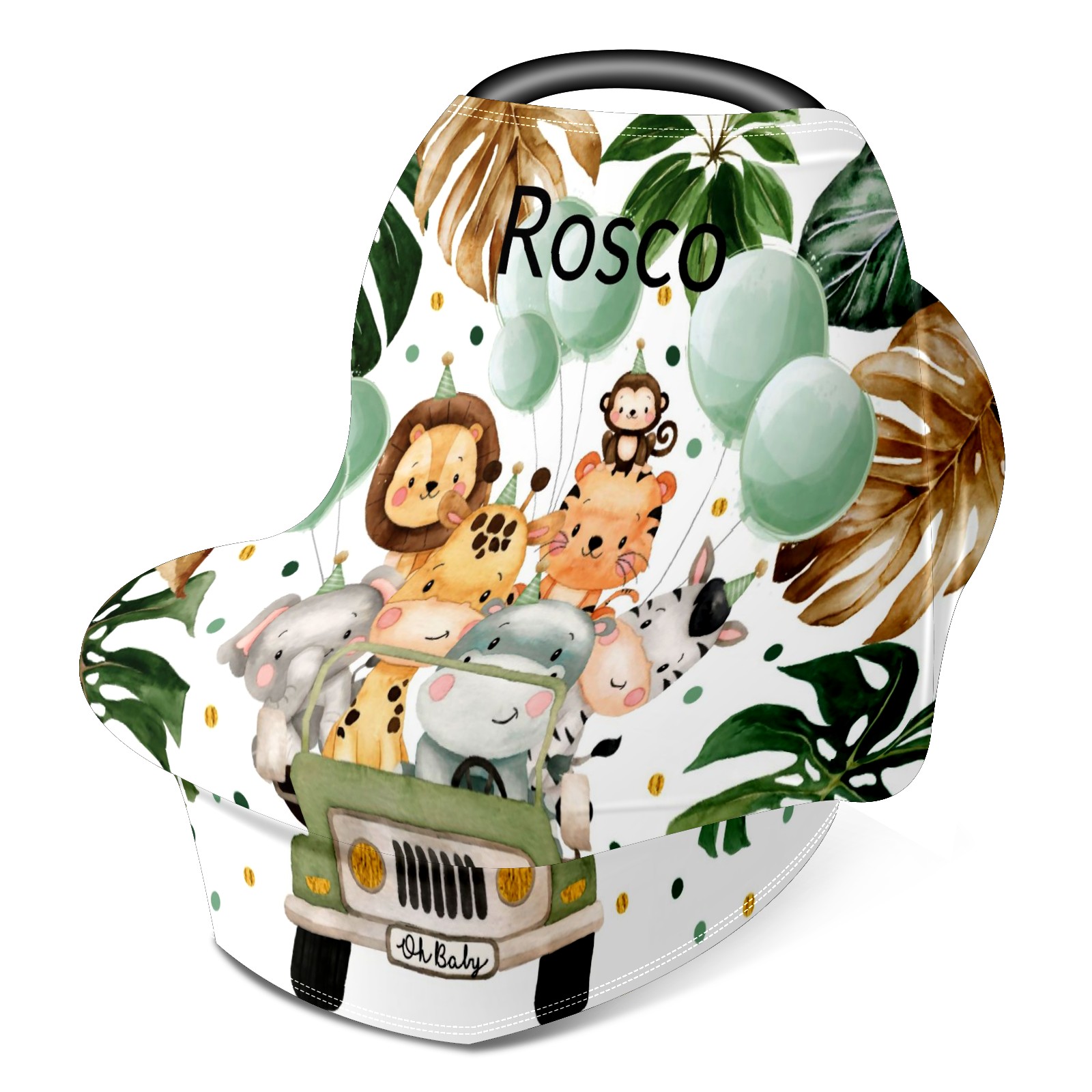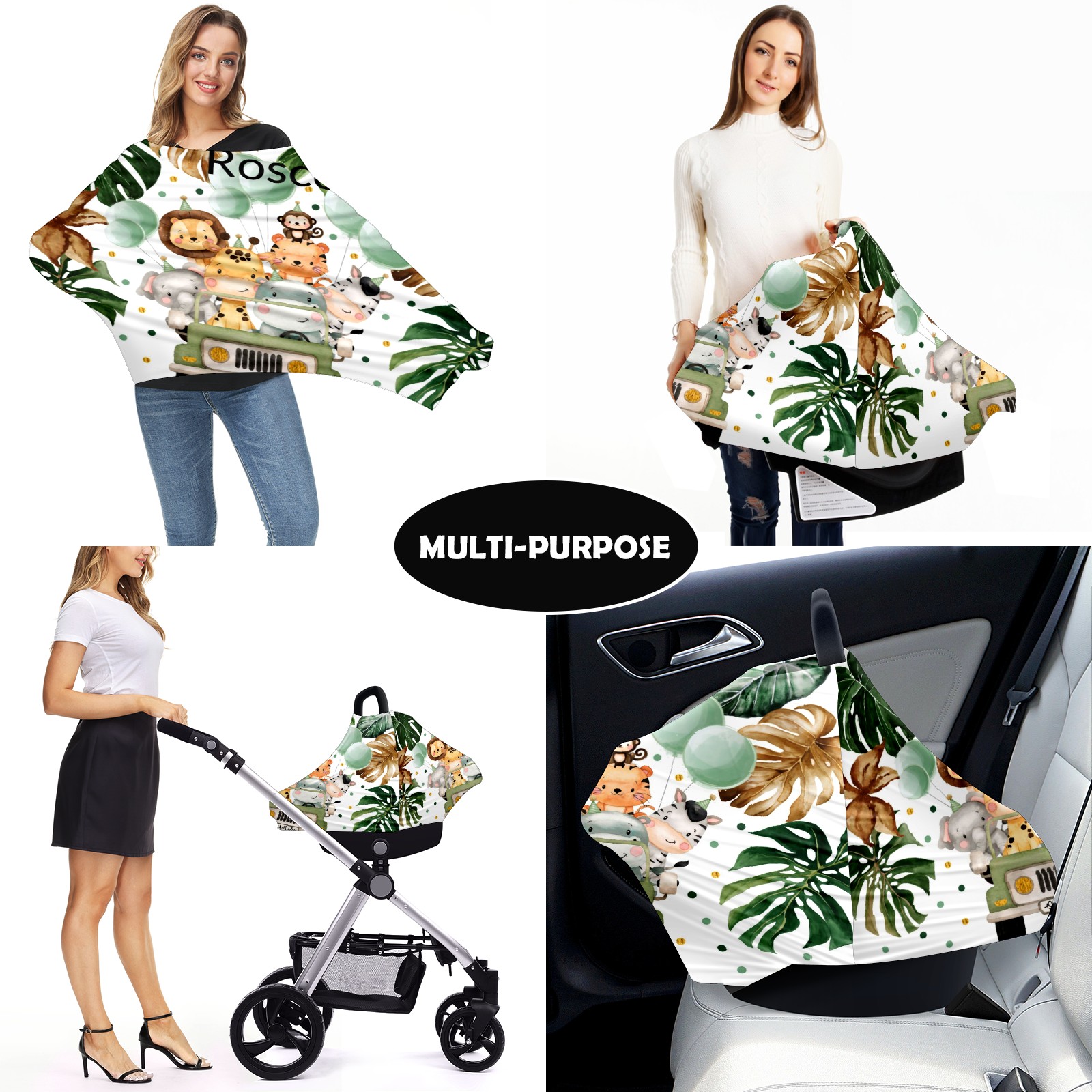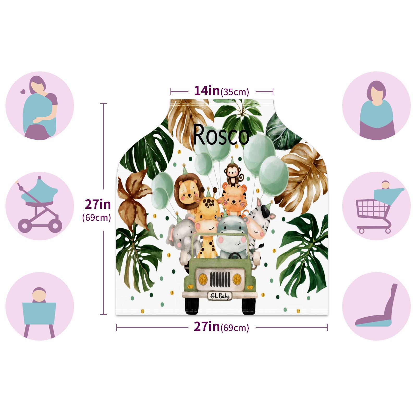 Baby Car Seat Stroller Covers Custom Name Cute Watercolor Safari Animals Jungle Greenery3.21 Nursing Cover Breastfeeding Scarf Soft Breathable Stretchy Coverage Carseat Canopy Cover for Boys and Girls Multi Use
