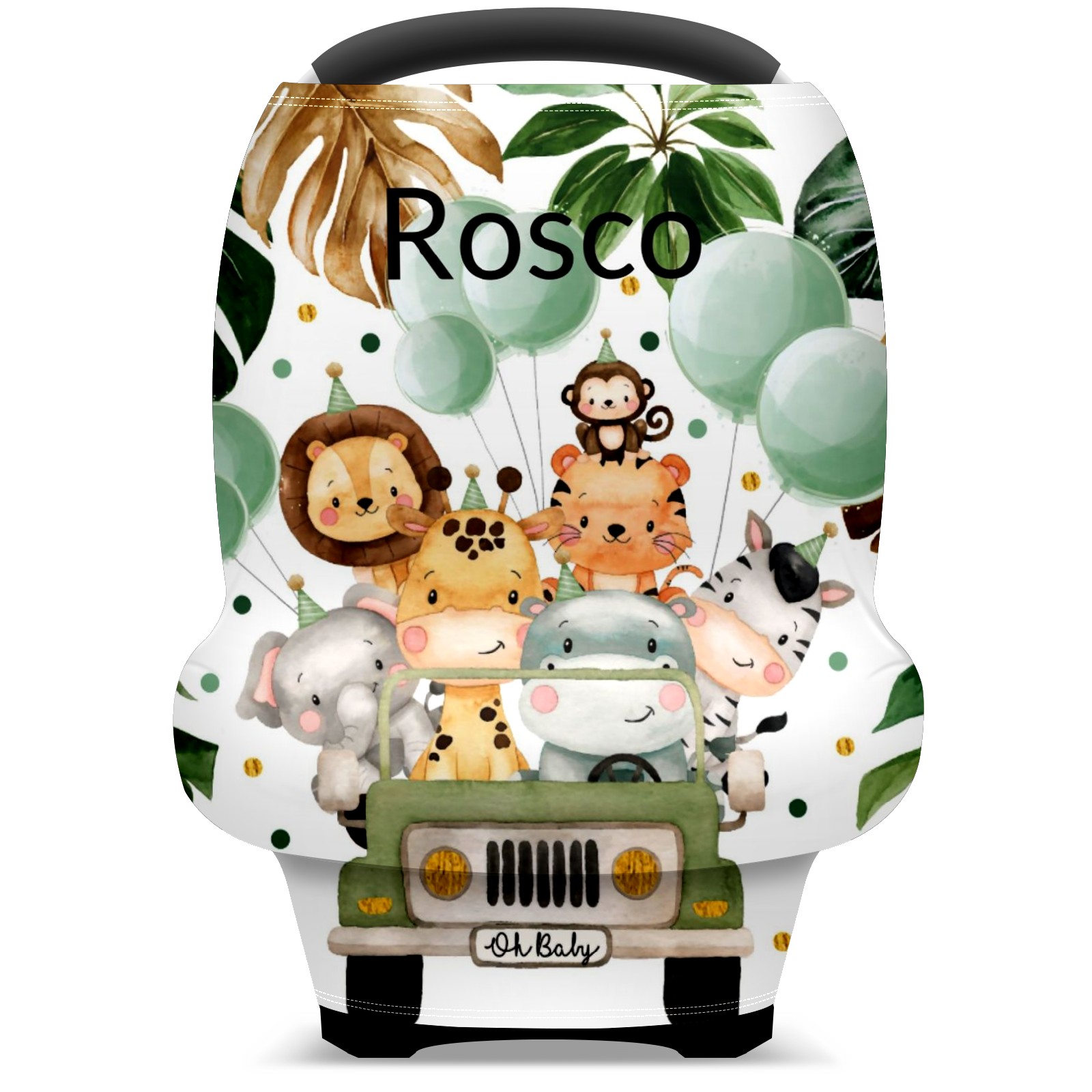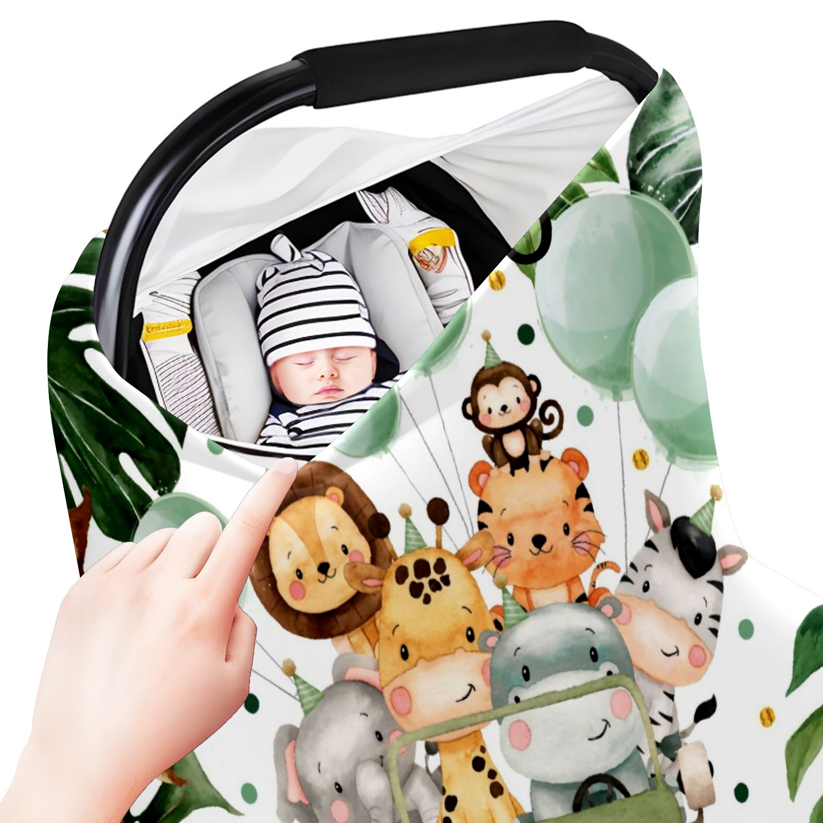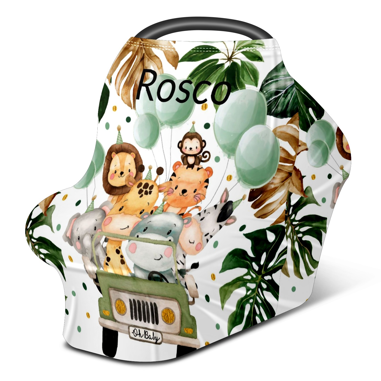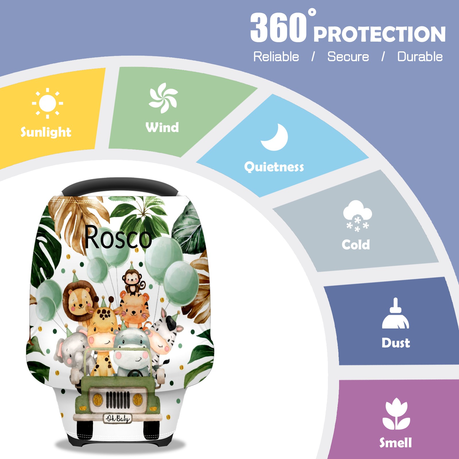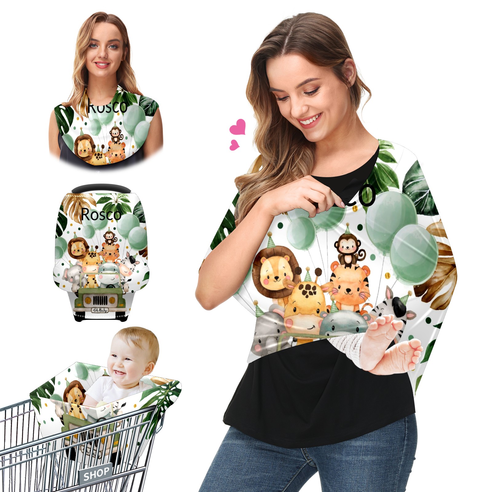 Baby Car Seat Stroller Covers Custom Name Cute Watercolor Safari Animals Jungle Greenery3.21 Nursing Cover Breastfeeding Scarf Soft Breathable Stretchy Coverage Carseat Canopy Cover for Boys and Girls Multi Use