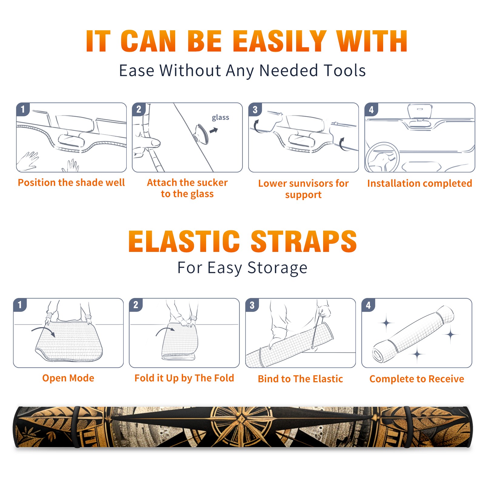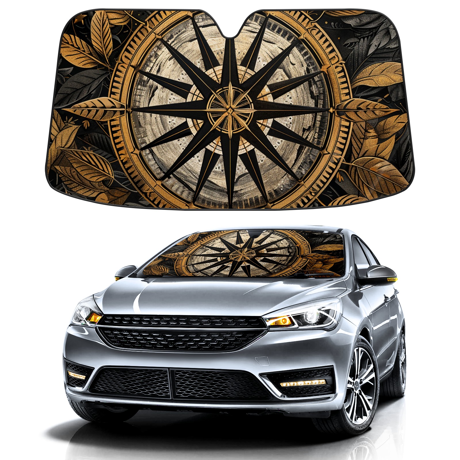 Car Windshield Sun Shade For Front Window Compass (7) Foldable Vehicle Windshield Car Sun Visor Covers Automotive Window Protector Car Camping Privacy Sun Blocker