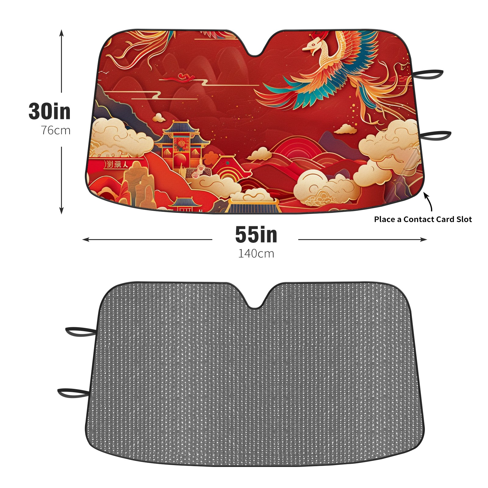 Diameter /Size 63"L x 33.5"W Made from excellent materials which makes it sturdy and protects the car from the sun. Easy to use and pack. Makes the interior of the car cooler.You can easily stash the sunshade in the storage bag or store long term.It open and closes easy. Also the leather storage bag is durable and easy to put the umbrella back into.This windshield sunshade provides complete coverage and keeps your car interior cool under direct sun. It is easy to open and position under the windshield and around the rear-view mirror. Makes Your Car Easy To Identify, Perfect For Finding Your Car In Crowded Parking Lots And Garages.Great Choice: It Is A Great Gift For Dad, Boyfriend, Brother, Brother And Uncle, Friends, Classmates, Family And So On. Notice: Due To Difference Computer Monitors, The Color Maybe Slightly Different From Picture. As Different Measurement Methods, Measurement Data Will Float Within 2%.I Hope You Understand. If You Have Any Question About The Item Please Do Not Hesitate To Contact Us Immediately And We Will Give You A Satisfactory Reply Within 24 Hours.