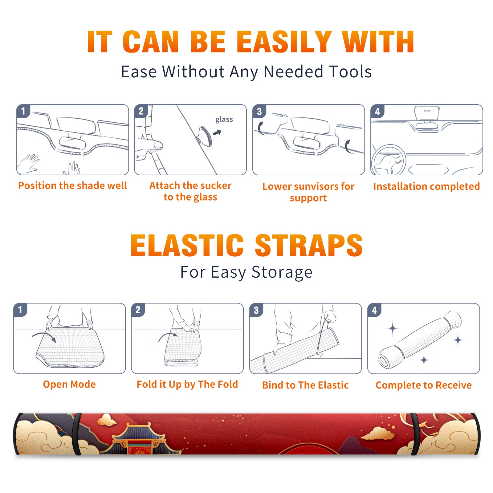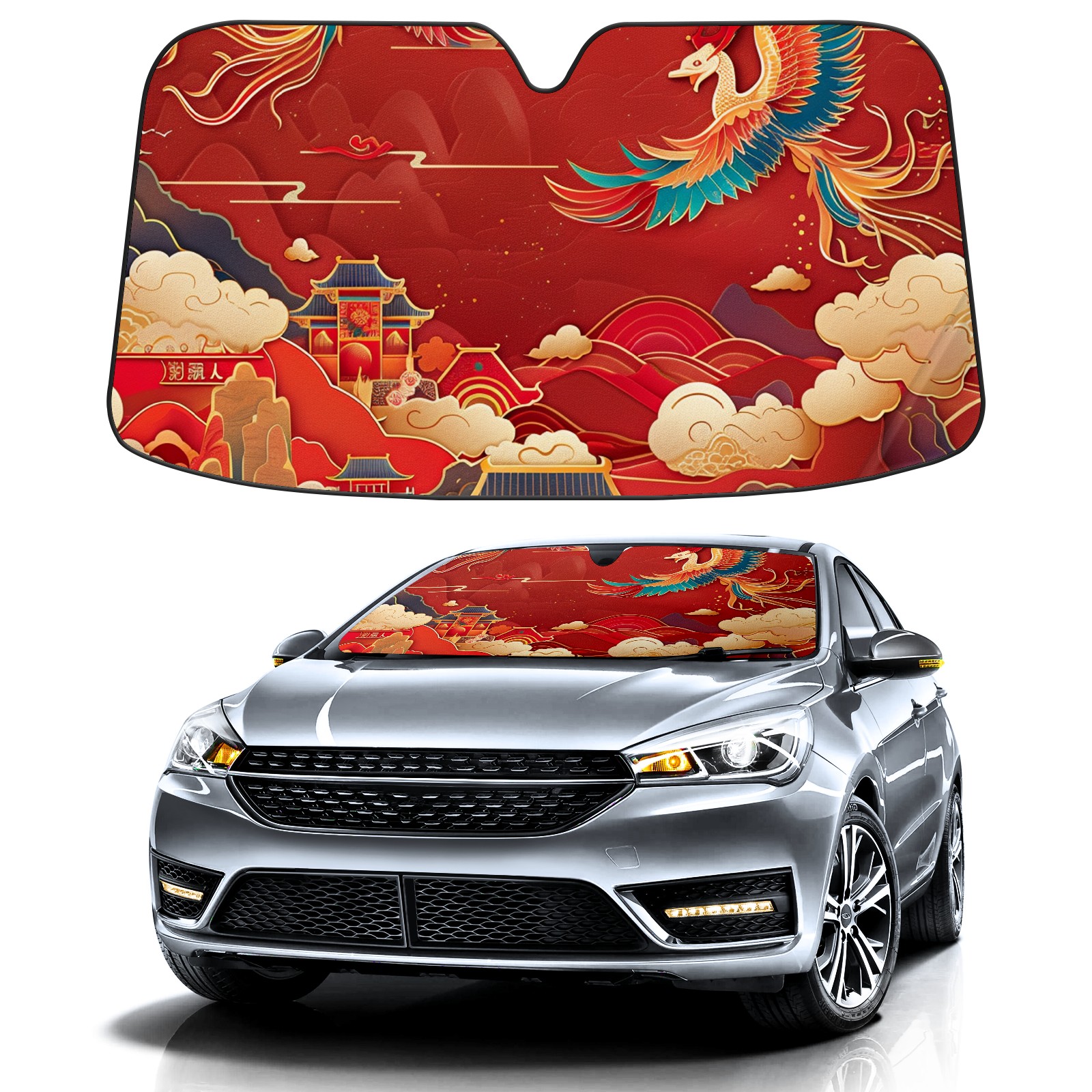Car Windshield Sun Shade For Front Window Colorful Chinese Architecture(4) Foldable Vehicle Windshield Car Sun Visor Covers Automotive Window Protector Car Camping Privacy Sun Blocker
