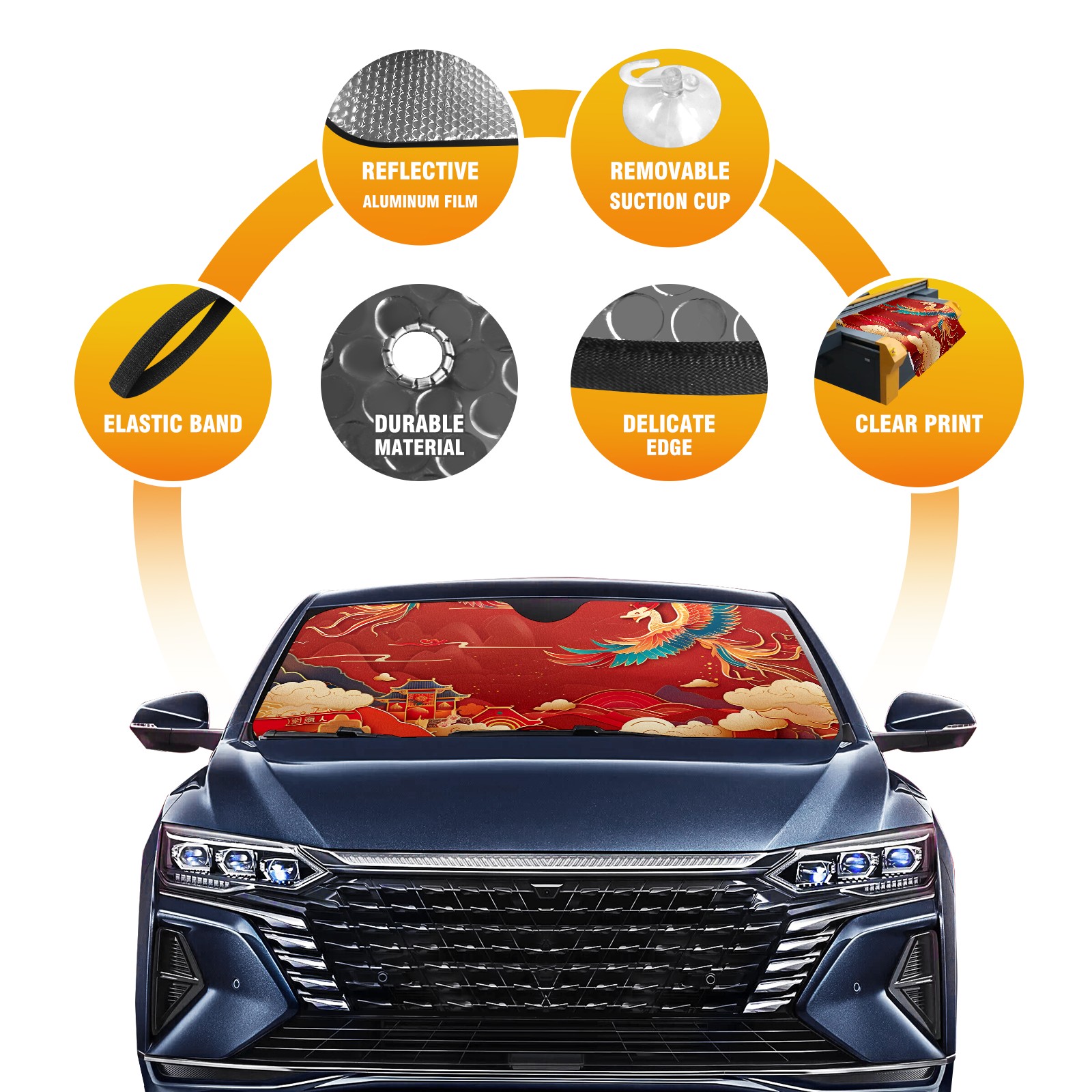 • Diameter /Size 63"L x 33.5"W Made from excellent materials which makes it sturdy and protects the car from the sun. Easy to use and pack. Makes the interior of the car cooler.You can easily stash the sunshade in the storage bag or store long term.It open and closes easy. Also the leather storage bag is durable and easy to put the umbrella back into.This windshield sunshade provides complete coverage and keeps your car interior cool under direct sun. It is easy to open and position under the windshield and around the rear-view mirror. Makes Your Car Easy To Identify, Perfect For Finding Your Car In Crowded Parking Lots And Garages.Great Choice: It Is A Great Gift For Dad, Boyfriend, Brother, Brother And Uncle, Friends, Classmates, Family And So On. Notice: Due To Difference Computer Monitors, The Color Maybe Slightly Different From Picture. As Different Measurement Methods, Measurement Data Will Float Within 2%.I Hope You Understand. If You Have Any Question About The Item Please Do Not Hesitate To Contact Us Immediately And We Will Give You A Satisfactory Reply Within 24 Hours.