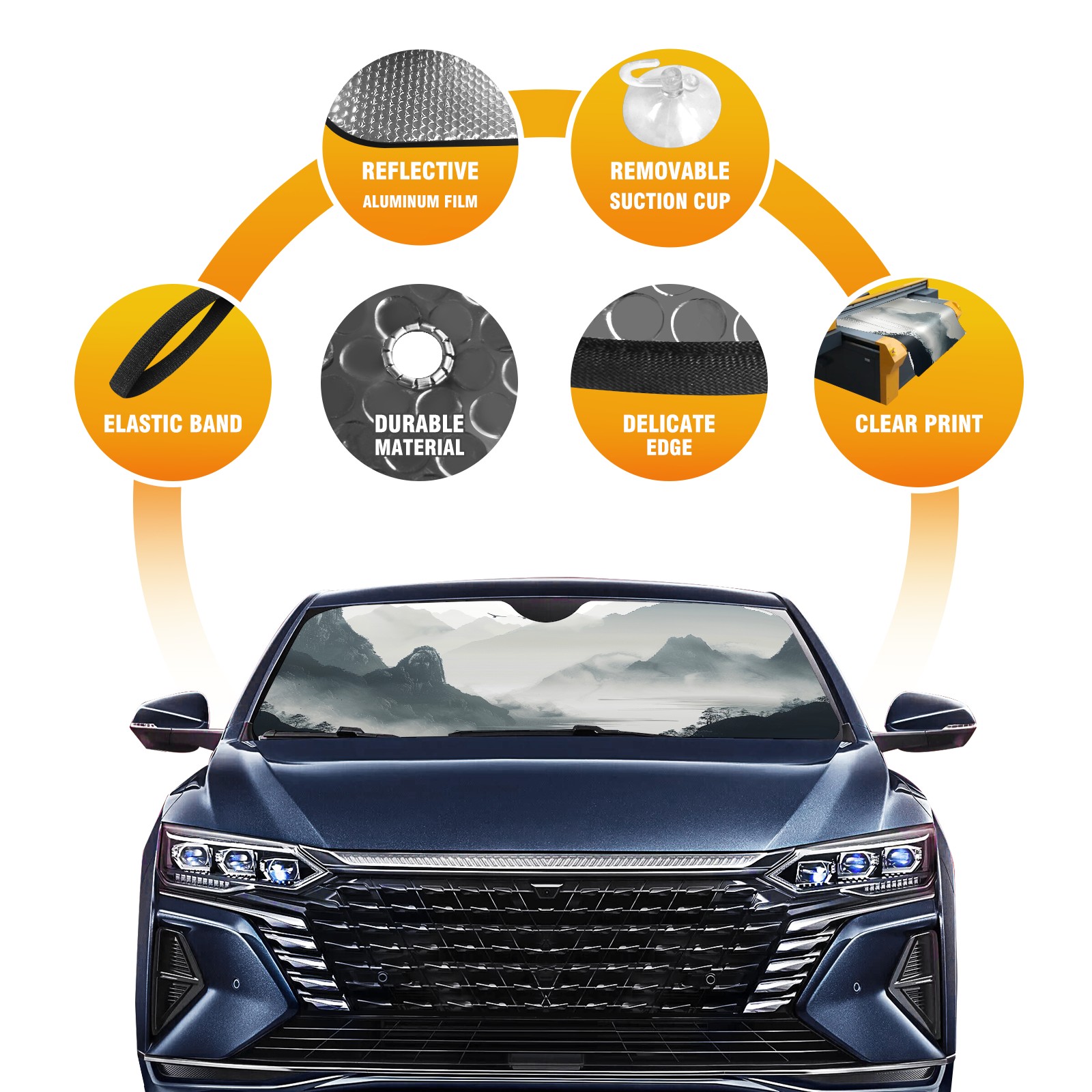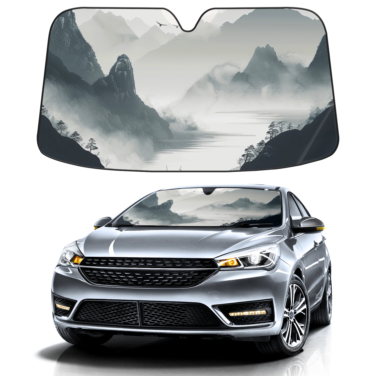 Car Windshield Sun Shade For Front Window Chinese Style Painting (2) Foldable Vehicle Windshield Car Sun Visor Covers Automotive Window Protector Car Camping Privacy Sun Blocker