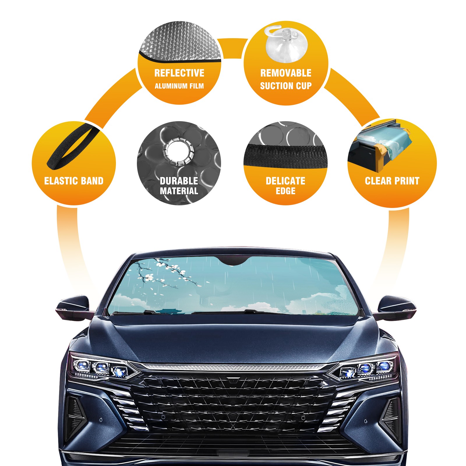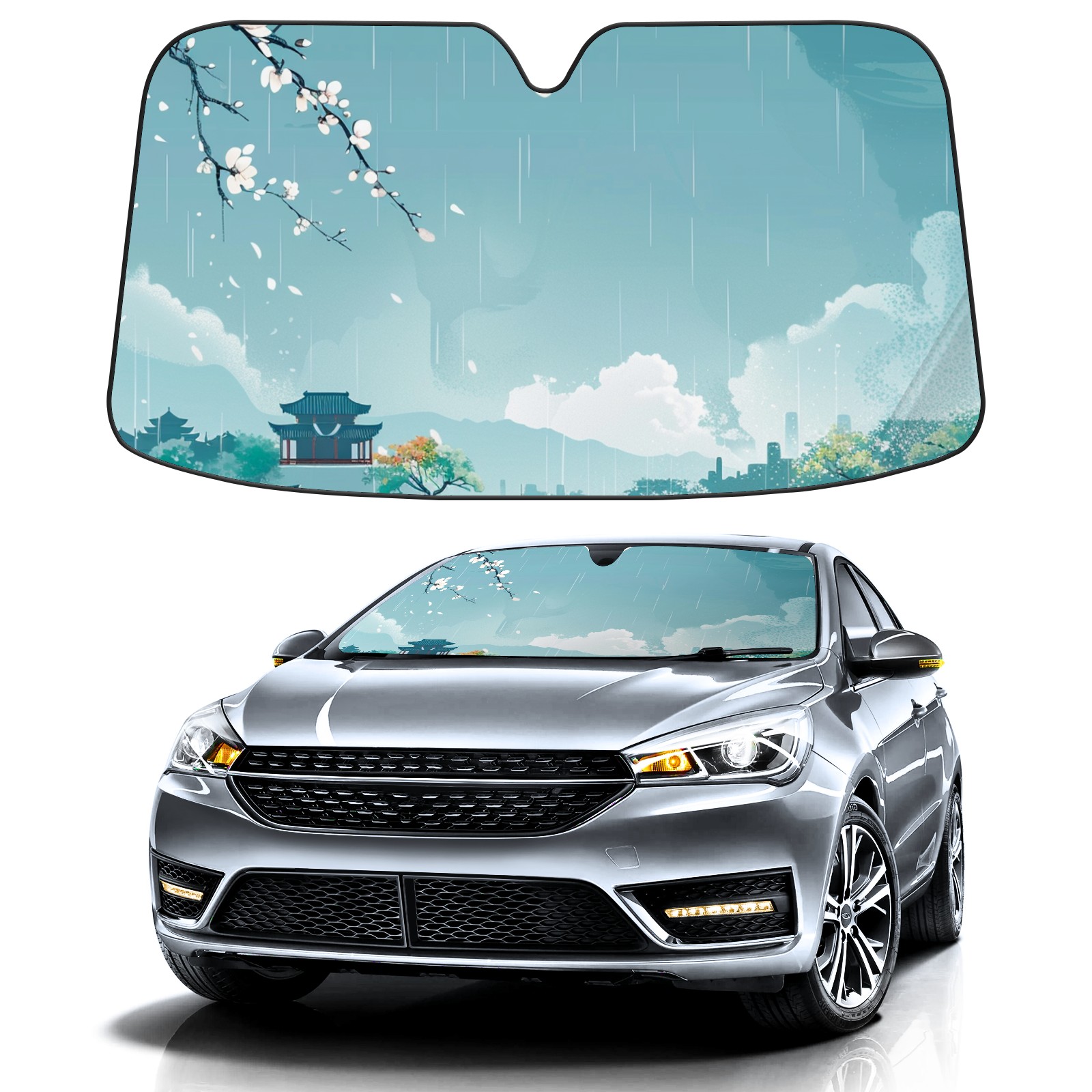 Car Windshield Sun Shade For Front Window Chinese Style Lake (3) Foldable Vehicle Windshield Car Sun Visor Covers Automotive Window Protector Car Camping Privacy Sun Blocker