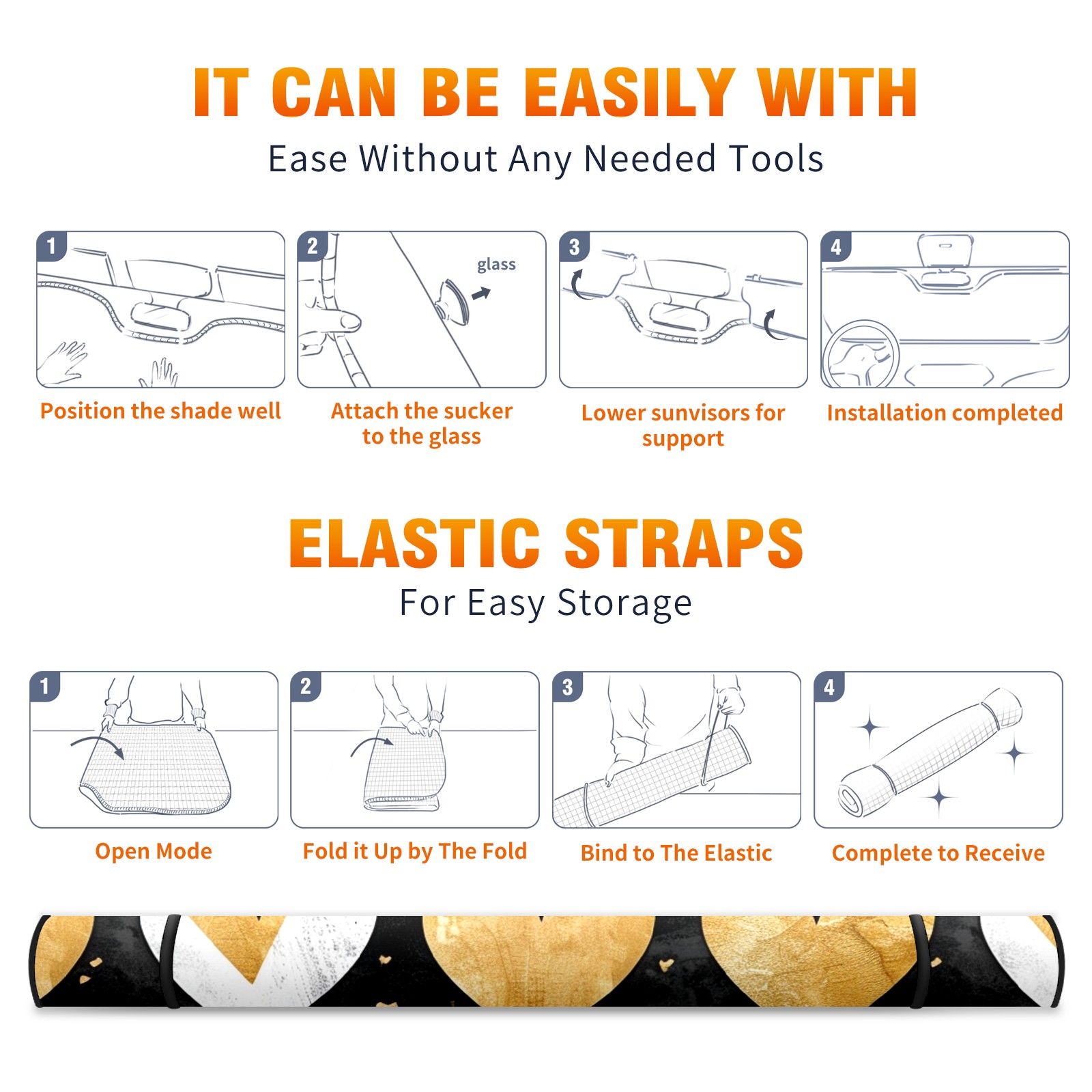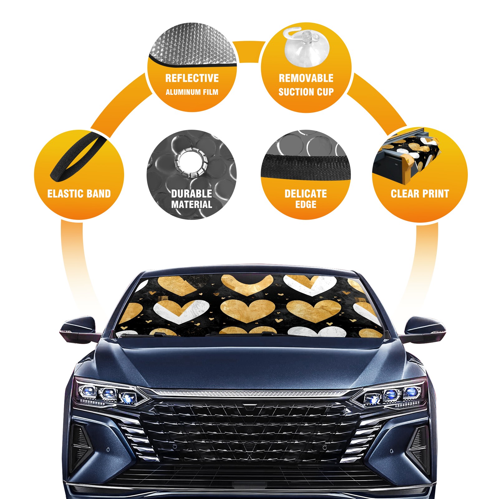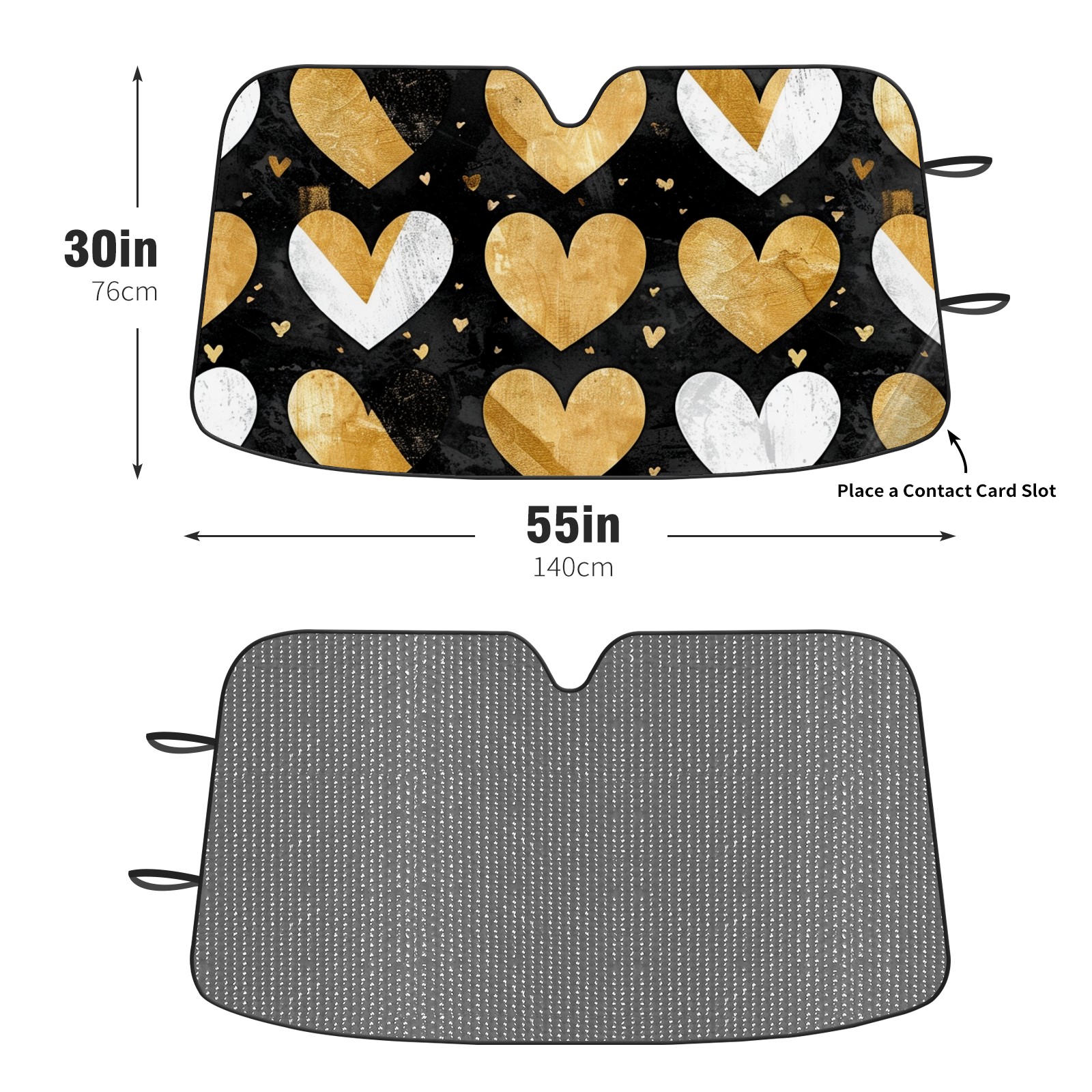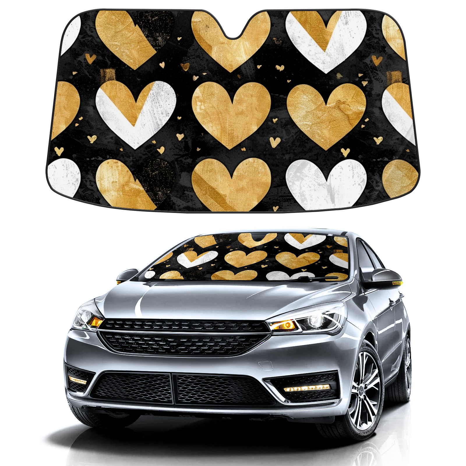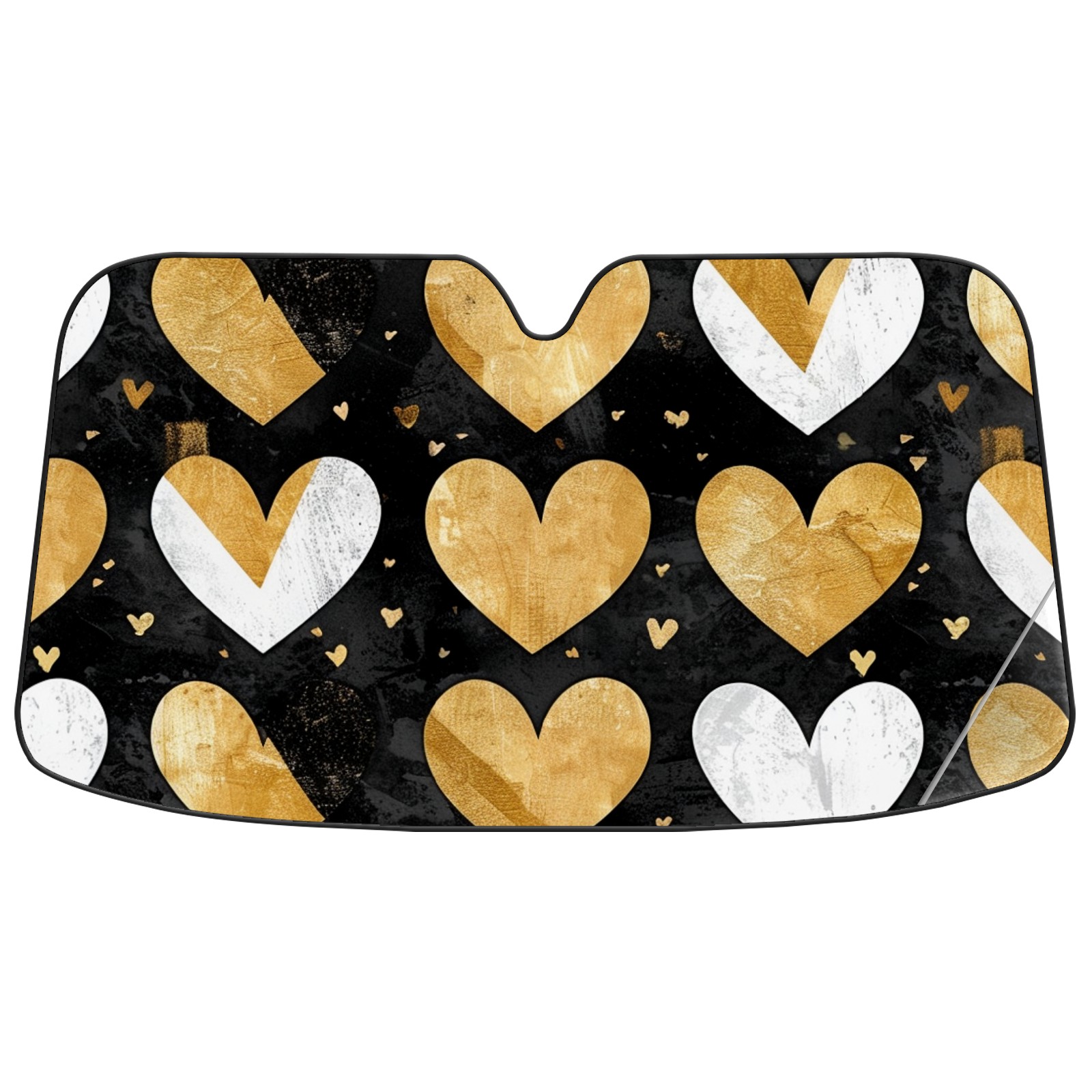 Car Windshield Sun Shade For Front Window White Gold Hearts (2) Foldable Vehicle Windshield Car Sun Visor Covers Automotive Window Protector Car Camping Privacy Sun Blocker