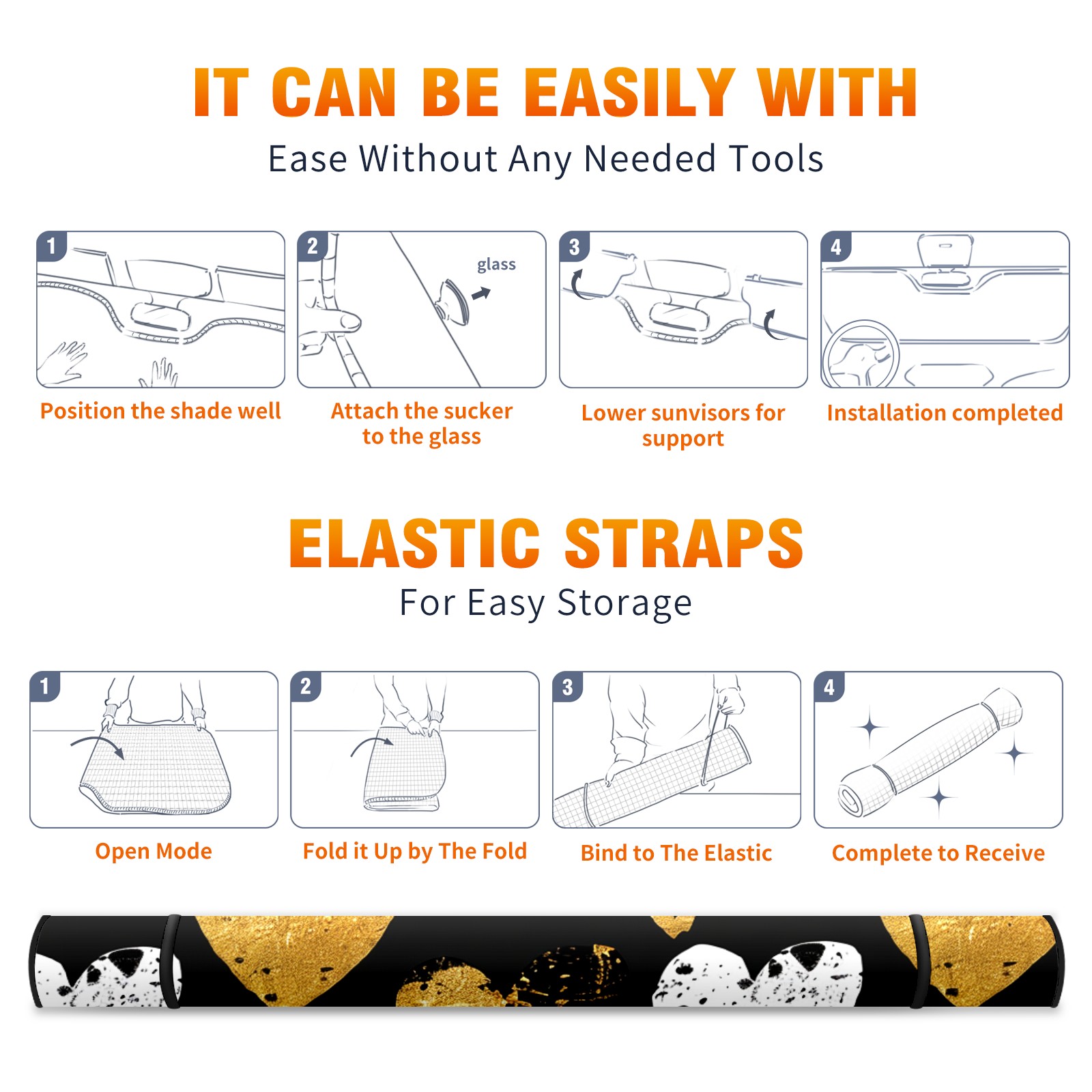• Diameter /Size 63"L x 33.5"W Made from excellent materials which makes it sturdy and protects the car from the sun. Easy to use and pack. Makes the interior of the car cooler.You can easily stash the sunshade in the storage bag or store long term.It open and closes easy. Also the leather storage bag is durable and easy to put the umbrella back into.This windshield sunshade provides complete coverage and keeps your car interior cool under direct sun. It is easy to open and position under the windshield and around the rear-view mirror. Makes Your Car Easy To Identify, Perfect For Finding Your Car In Crowded Parking Lots And Garages.Great Choice: It Is A Great Gift For Dad, Boyfriend, Brother, Brother And Uncle, Friends, Classmates, Family And So On. Notice: Due To Difference Computer Monitors, The Color Maybe Slightly Different From Picture. As Different Measurement Methods, Measurement Data Will Float Within 2%.I Hope You Understand. If You Have Any Question About The Item Please Do Not Hesitate To Contact Us Immediately And We Will Give You A Satisfactory Reply Within 24 Hours.